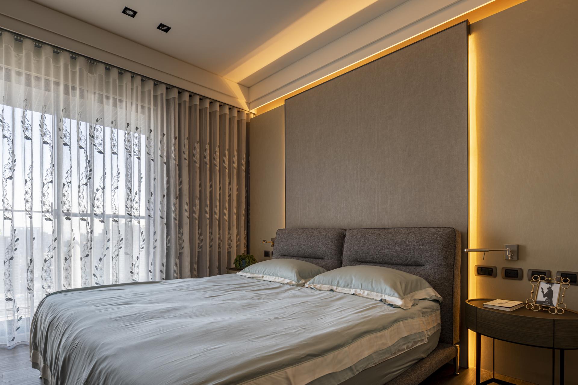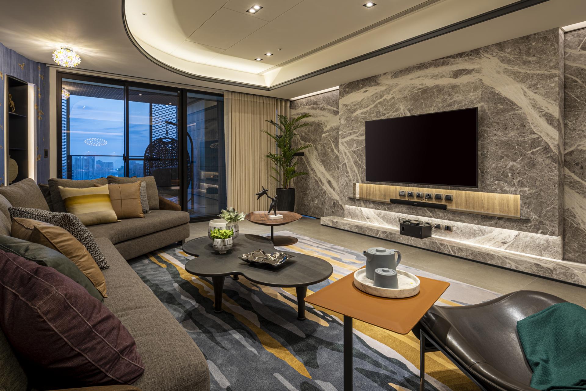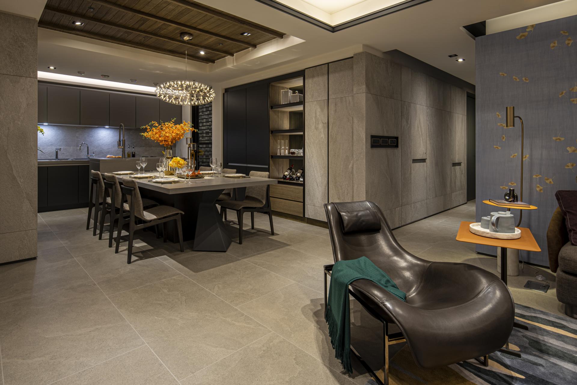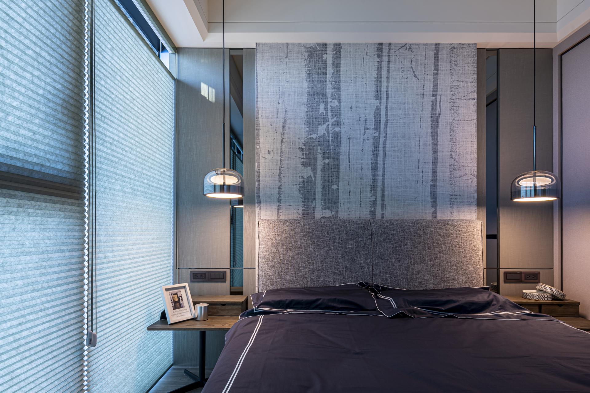 Ceiling treatments transform bulky beams and columns into visual anchors through mixed forms. The design enhances openness and fluidity, especially between the dining room and kitchen. A chrysanthemum-adorned chandelier serves as a visual centerpiece, enriching dining experiences and highlighting the value of family gatherings. Minimalistic elegance reigns in the master bedroom, where floor-to-ceiling windows not only amplify spatial dimensions but also extend the horizon. The secondary bedroom, with its sloping wooden ceiling, fulfills a youthful dream by evoking a Western attic, all within a high-rise context.