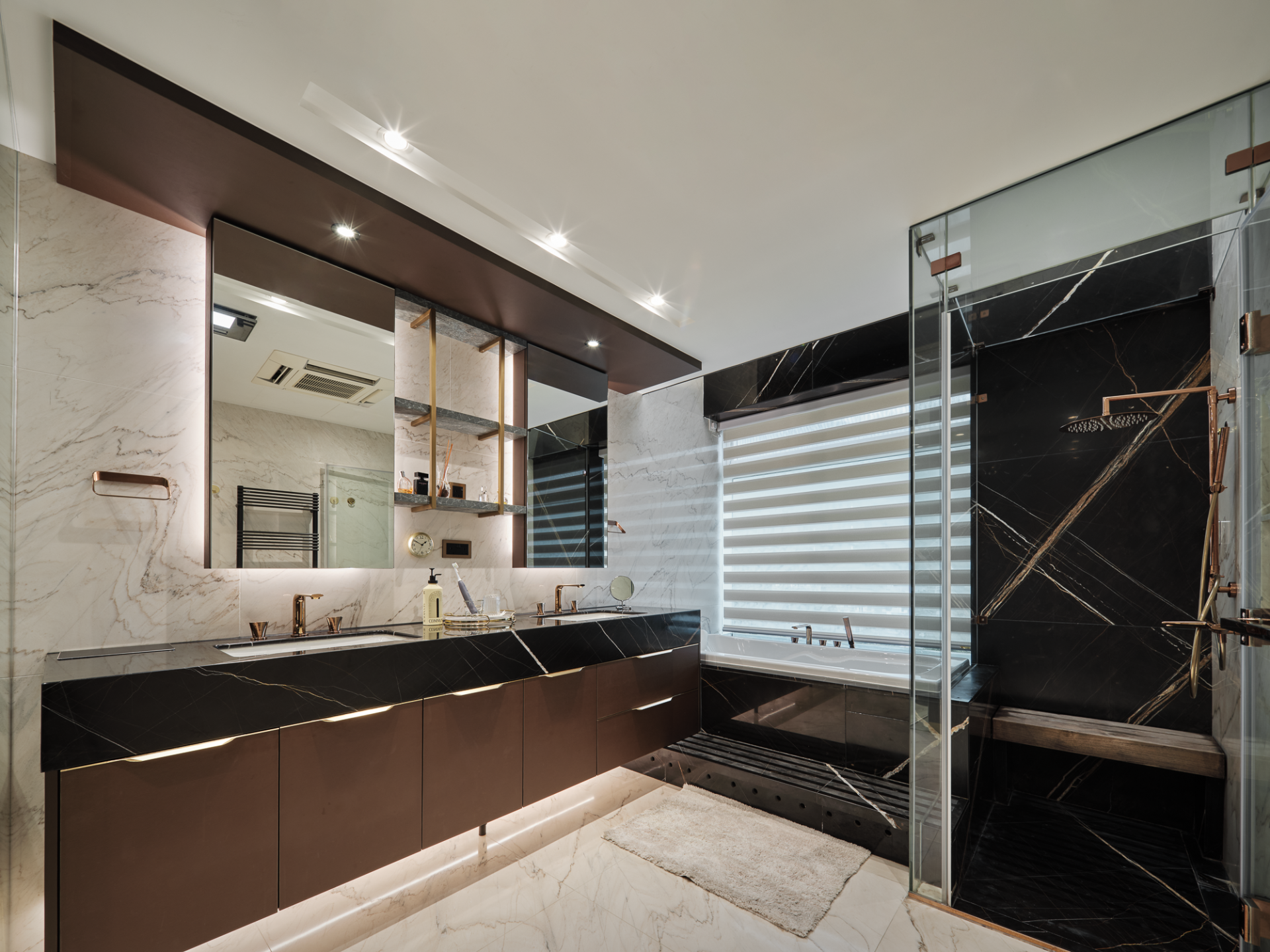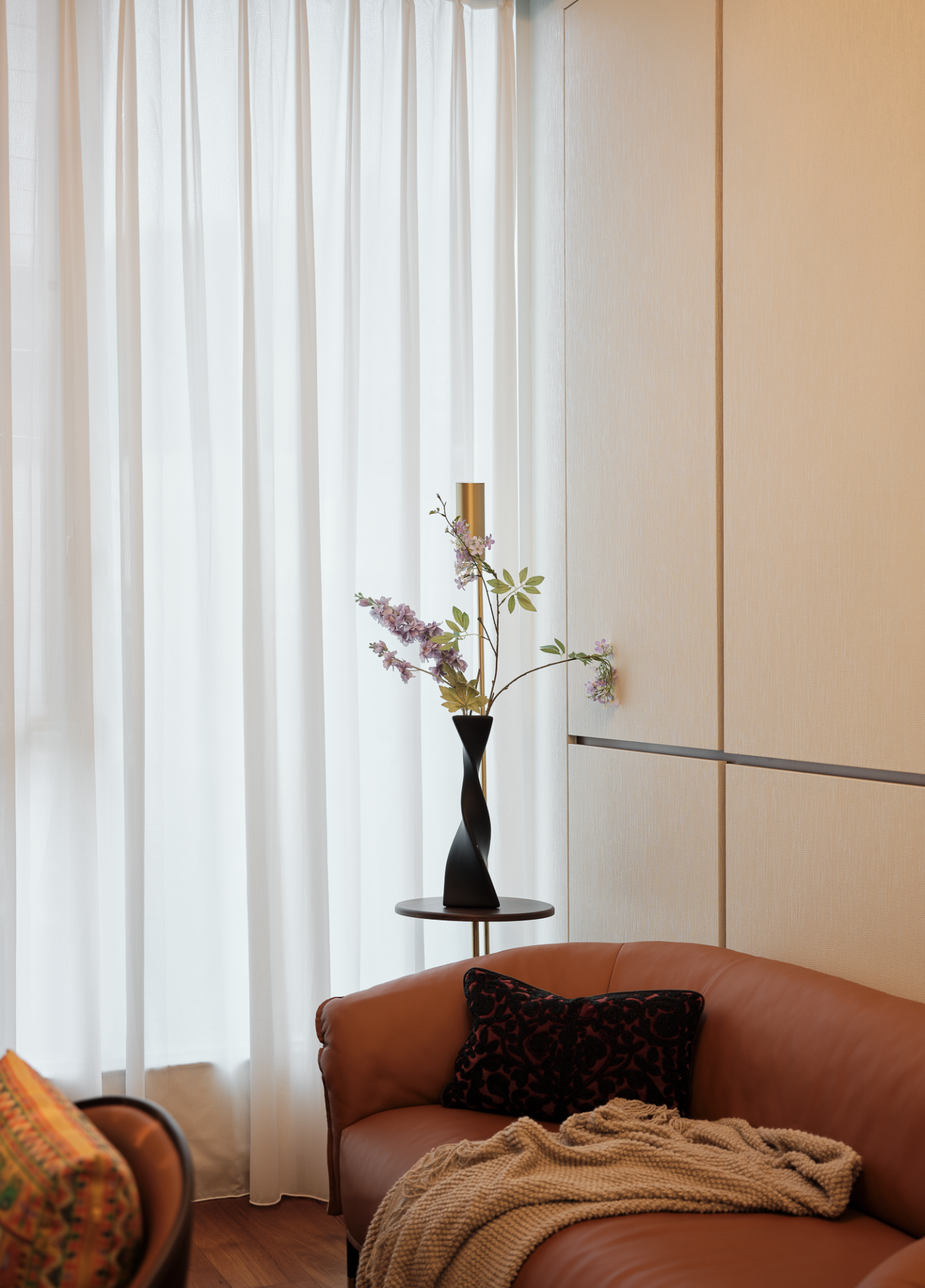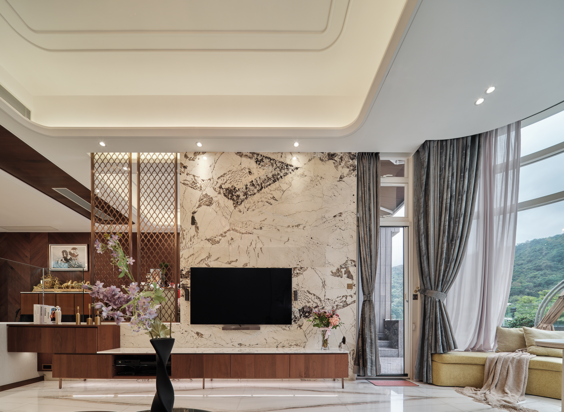 Lighting is the first problem to be solved in the design. The designer makes full use of the natural lighting advantages of the first floor, with large-area floor-to-ceiling windows and hollow staircase reconstruction, introducing vivid and vigorous nature into the interior. In the resonance of the connected fields, the smoothness of internal and external views is strengthened. The outdoor swimming pool echoes with it, creating a relaxing and romantic atmosphere like a holiday. In the natural density, the sense of relaxation of the space is gradually released.