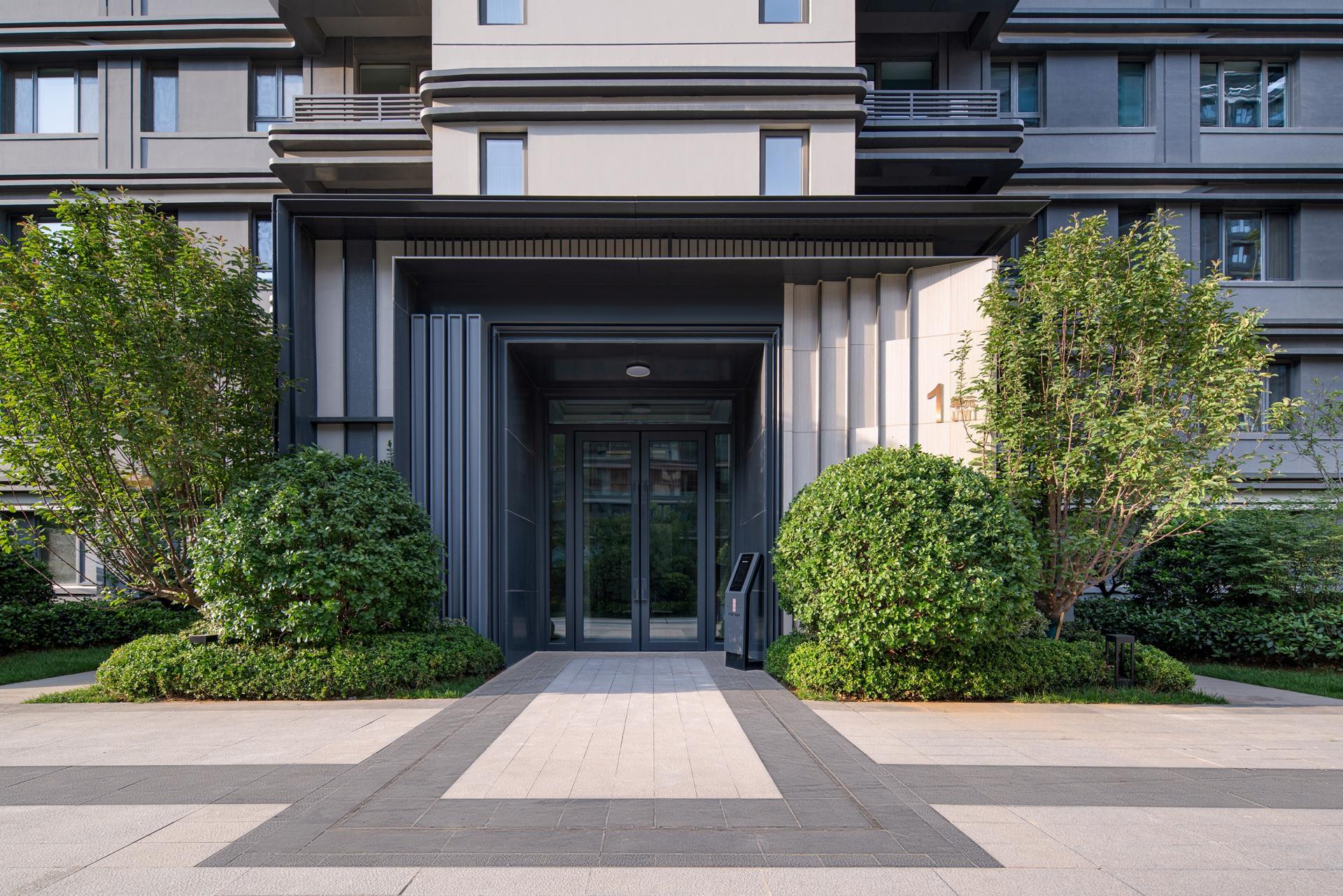For the urban interface, the community entrance features a geometric sculpture crafted from folded glass curtain walls and cantilevered aluminum panels. The interplay of solid and void, light and shadow, creates a futuristic urban landmark. The combination of champagne-gold aluminum panels and full-height glass curtain walls balances the solemnity of royal estates with the lightness and transparency of modern architecture. The grand entrance canopy, with its metal grille ceiling, water features, and art installations, evokes a luxurious hotel-like arrival experience.