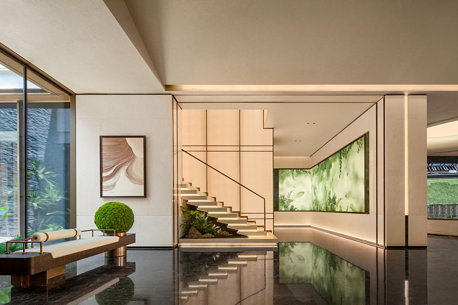 Located in the heart of Wanning, a coastal town enriched by tropical light and rich coffee aromas, this 1,666㎡ cultural space serves as a tribute to the city’s “Kopi O” heritage—a symbol of local identity and daily ritual. Guided by the concept of “fusing traditional spirit with contemporary sensibilities,” the design team crafted a landmark experiential venue that bridges urban vibrancy and natural tranquility. Drawing inspiration from Wanning’s cultural symbols—such as bamboo weaving, rainforest ecosystems, surfing lifestyle, and ancient architectural forms—the space tells a multisensory story that activates sight, sound, smell, taste, and touch. Upon entering, visitors are welcomed by bamboo-woven ceilings that echo local craftsmanship and create a relaxed resort-like ambiance. A symmetrical spatial axis and curated lighting installations add a sense of ceremony and refinement. The negotiation area borrows the form of Wanning’s historic “Ten-Pillar House”, translated into a modern framework. The coffee-themed bar, inspired by the eaves of Wen Clan Ancestral Hall, features a dramatic bronze and Bulgari Green marble light sculpture that resembles flowing coffee. A wall of coffee cups and artisanal objects narrates local stories and brewing traditions. Nearby, an open display area blends fresh-ground coffee with cultural merchandise, reinforcing the identity of coffee as both a cultural medium and sensory experience. Luxury stones, patina metal frames, and handcrafted finishes are employed throughout to elevate spatial value. Locally sourced materials such as bamboo and recycled coffee grounds connect the space to its environment while reducing ecological impact. A carefully integrated shading system using breathable bamboo façades allows natural light to diffuse softly into each zone. Sustainability and craftsmanship go hand in hand: from seamless bamboo-stone transitions to precise metal detailing, the project reflects an obsessive attention to quality. Despite a tight construction timeline, the team achieved harmony between artistry, functionality, and ecological responsibility. This is not merely a commercial venue—it is a cultural anchor and lifestyle destination that reimagines the urban “third space.” Through the lens of coffee, it presents a vision of Wanning’s future that honors its roots, embraces innovation, and delivers a richly layered experience of place.