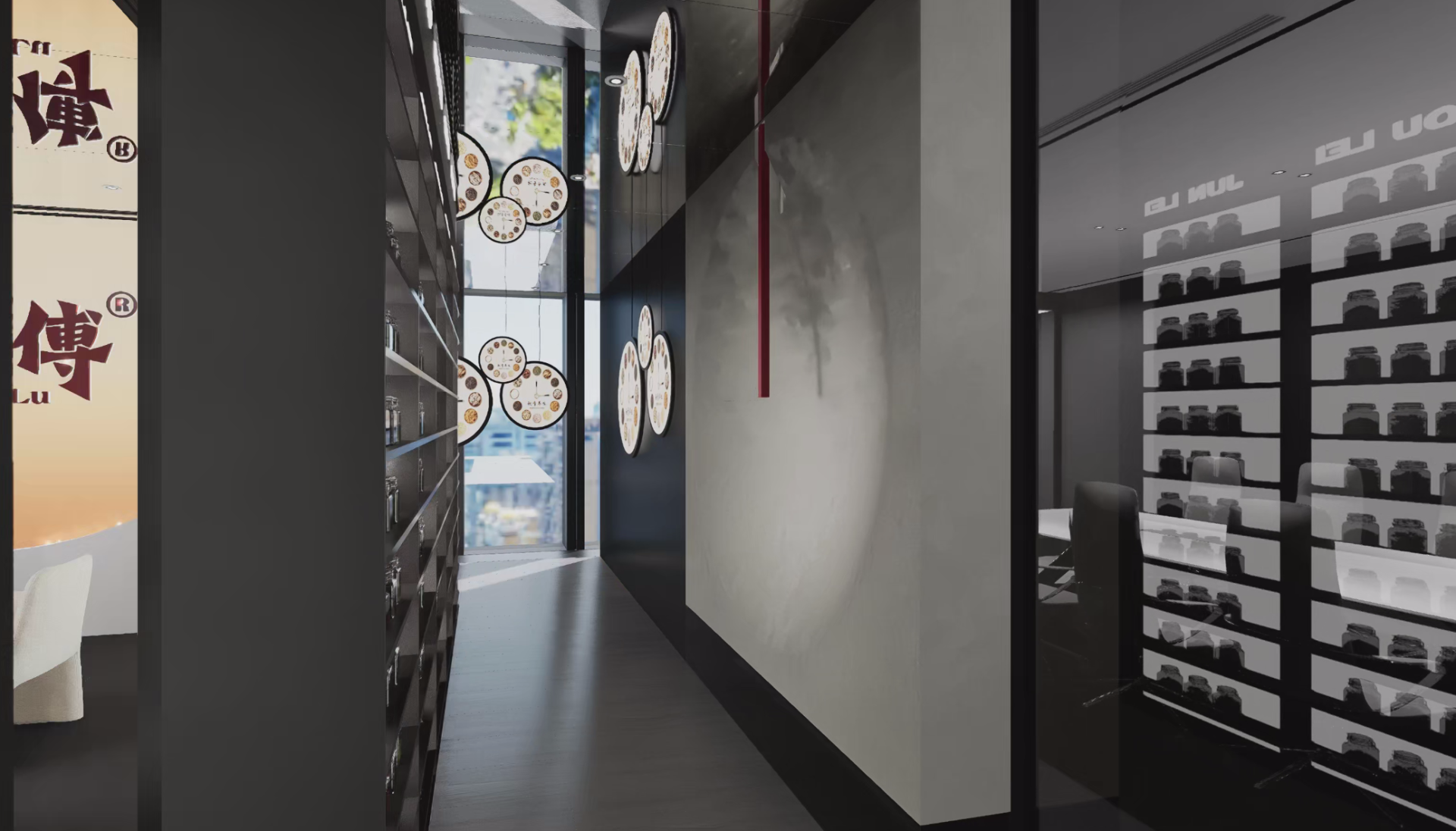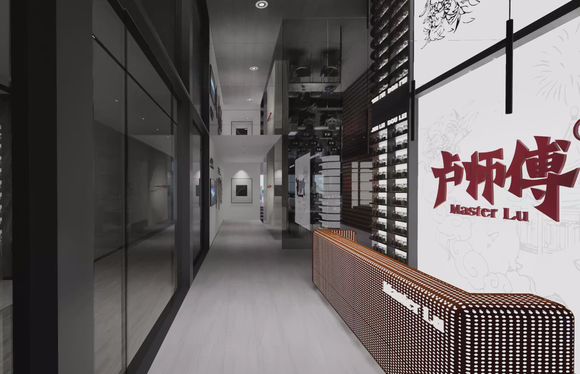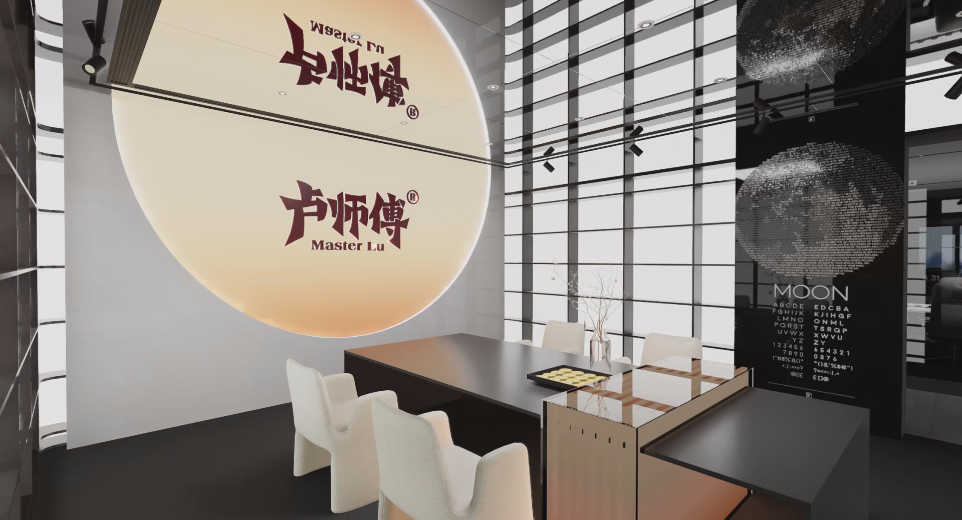Henan Master Lu Food Co., Ltd, a modern food company that encompasses R&D, manufacturing, sales, and logistics, envisioned its new headquarters and showroom as a space where tradition meets innovation. Drawing from its legacy in traditional food craftsmanship, the design distills cultural symbols and reinterprets them through a minimalist lens. The concept centers on the poetic rhythm of lunar phases, offering a spatial experience that resonates with both cultural depth and contemporary sensibilities. The space is inspired by the moon, the most symbolic element of the Mid-Autumn Festival, and the four phases it undergoes throughout a lunar month: crescent, first quarter, last quarter, and full moon. These natural transitions are reimagined using a modern minimalist aesthetic - defined by clean lines, pure tones, and translucent textures. A balance of deep black and airy glass creates an atmosphere that feels both technologically forward and elegantly refined. By combining the showroom and office into one cohesive space, the design allows the company to present its brand identity and product strengths to the outside world, while also creating a comfortable, productive workspace for employees. This integrated approach strengthens both brand image and operational growth.