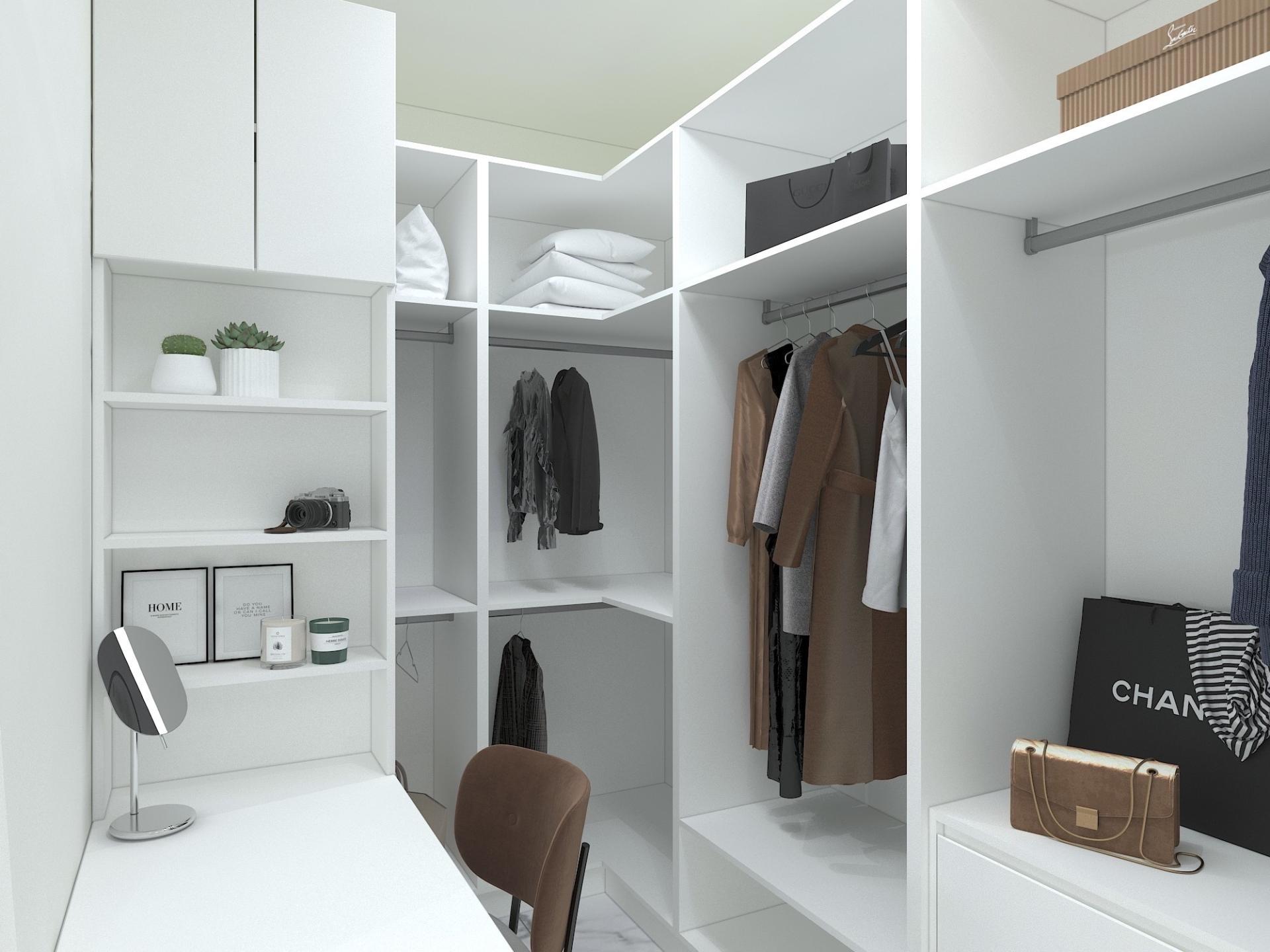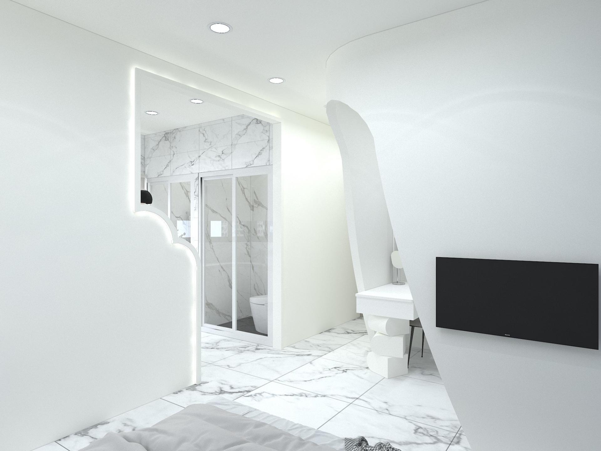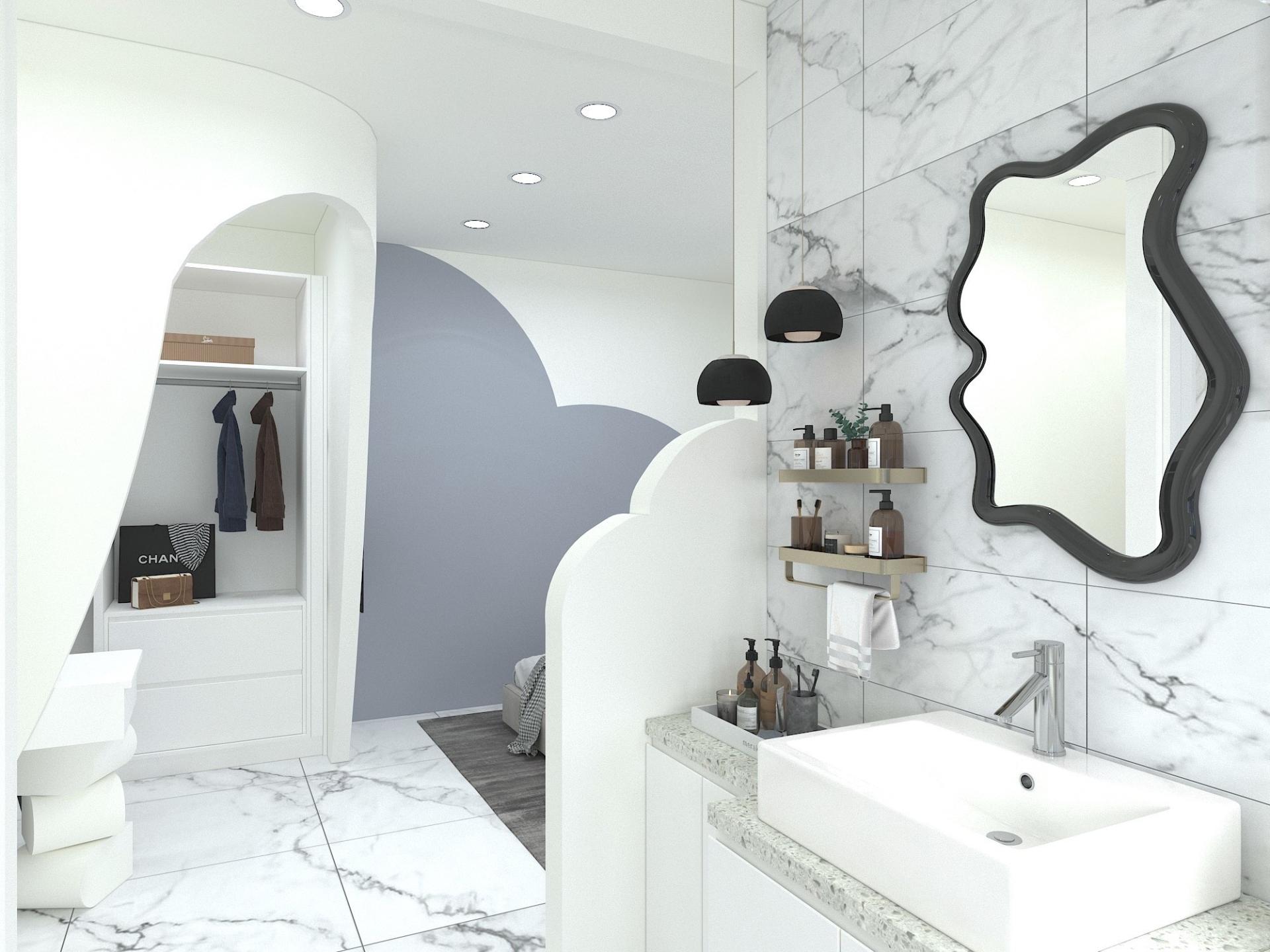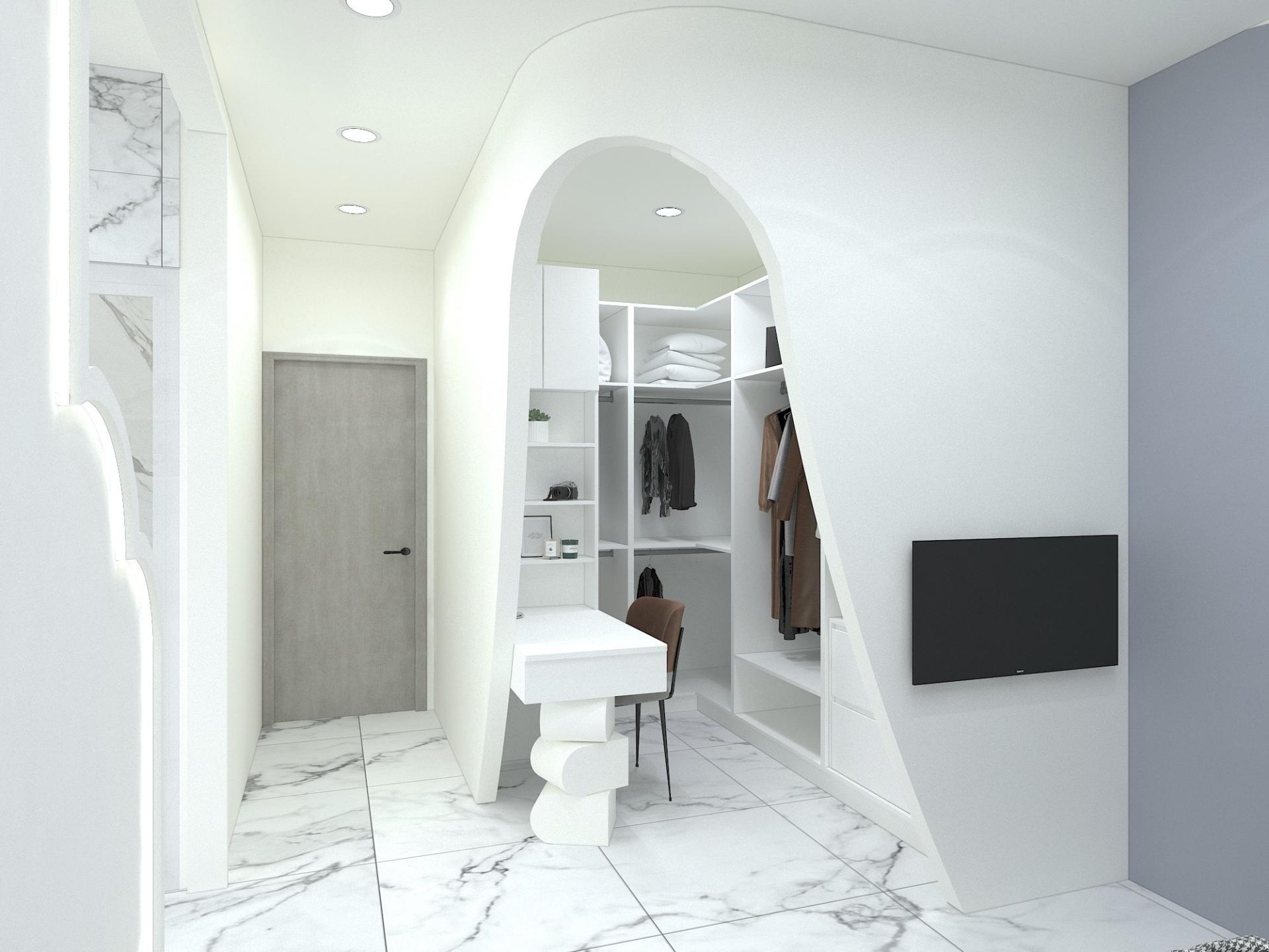 The entrance to the walk-in wardrobe in the master suite is framed by a curved opening. Here, light is not a harsh presence but seeps into daily life like the tide—gentle and fluid. The custom white doors resemble naturally weathered tide-carved stones. This area integrates storage and vanity functionality, offering a hotel-like sense of comfort. Such designs not only enrich visual openness but also expand the emotional capacity of the space.