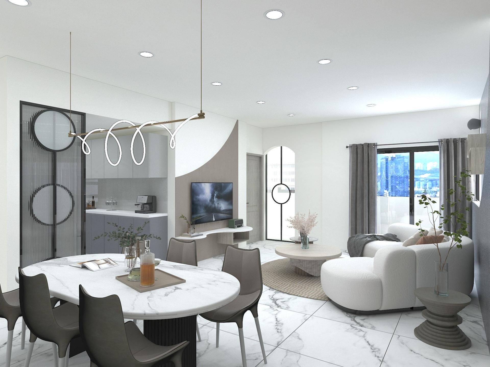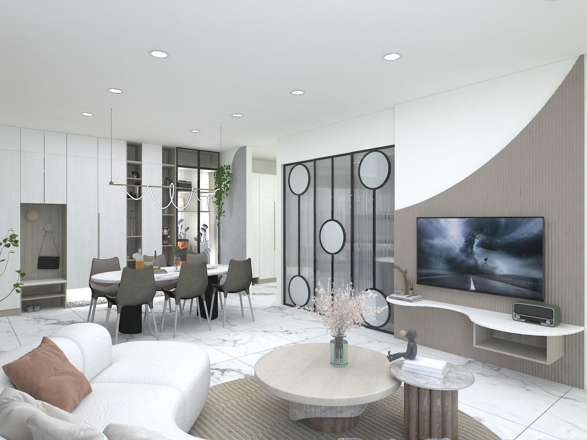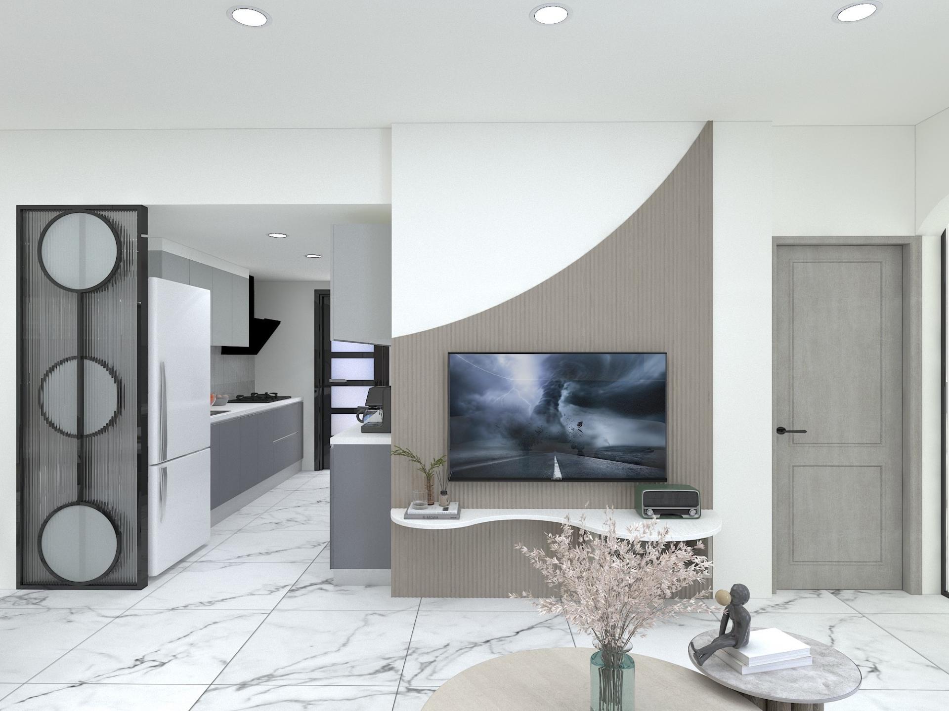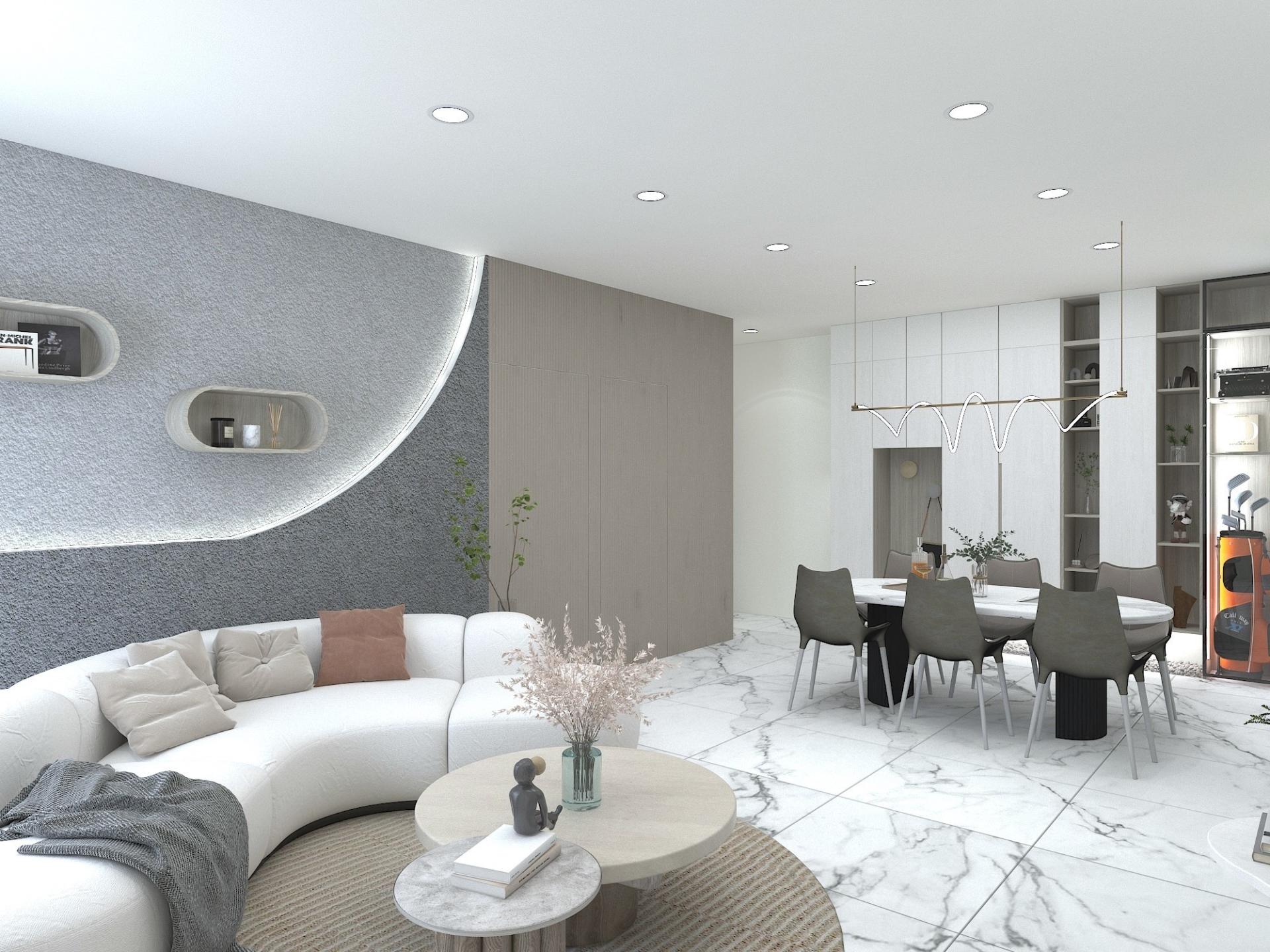 The 86 square meters, three-bedroom retirement residence in Tamsui is designed for a couple returning to Taiwan after years of living abroad. They wished for a home that carried both the familiarity of American living and the relaxed air of a seaside retreat. The designer focused on two core principles: modernity and stress relief. Bold colors and ornate details were intentionally avoided, replaced with cool tones and soft curves. The spatial design harmonizes original architectural dimensions with lifestyle needs, resulting in a tranquil, orderly, and deeply personal home.