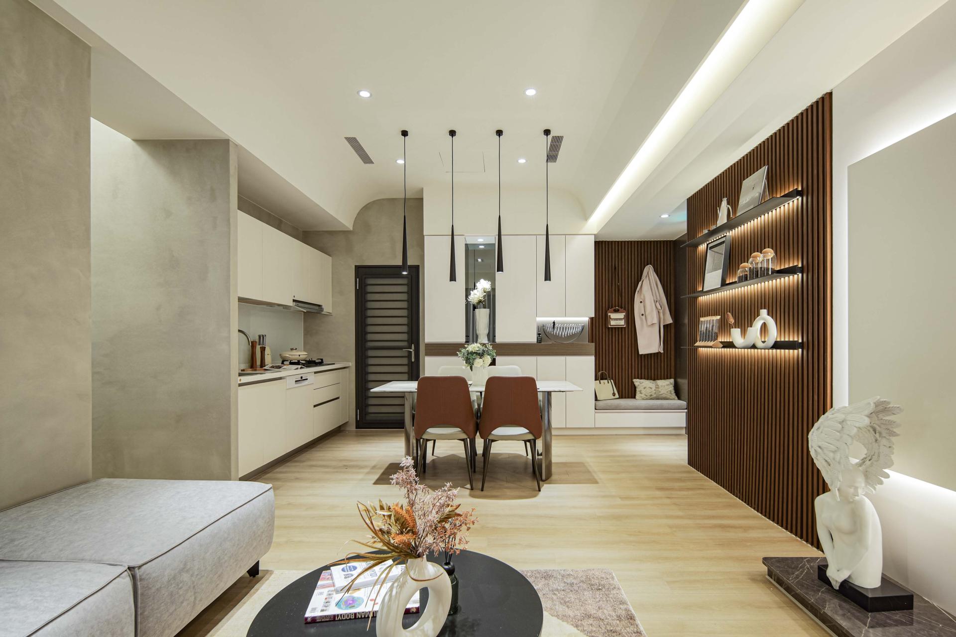 Located in Zhubei, this project was designed with the theme of “the home of a barista.” The concept extends into a narrative-driven residential imagination. The father, a barista who travels the world and collects coffee beans, represents craftsmanship and expertise; the mother enjoys baking and pastries, symbolizing warmth and creativity; while the child dreams of becoming an astronaut, embodying curiosity and exploration.