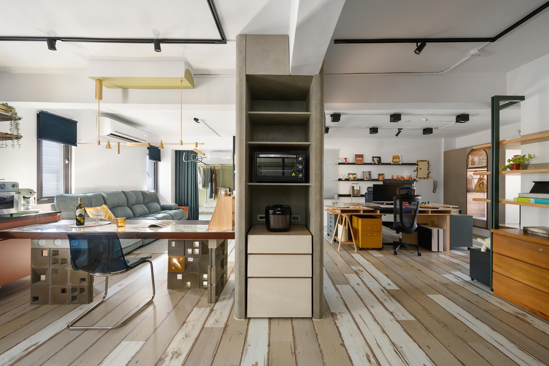 This renovation project breathes new life into an old house, redefining the conventional image of traditional residences. Emphasizing an open-plan layout, the design eliminates partitions to create a spacious and airy atmosphere that invites the essence of the ocean and lush greenery indoors. Moreover, the space has been thoughtfully designed for versatility, allowing various functions to coexist harmoniously rather than confining areas to a single purpose. In this approach, structural columns play a pivotal role, elegantly demarcating the living room, study, kitchen, and display/storage areas, thus crafting an open yet layered living environment. Furthermore, the overall design achieves a sophisticated balance between color and order, ensuring that daily routines transition seamlessly throughout the home. This renovation not only enhances the aesthetic appeal but also enriches the living experience, making it both functional and inviting.