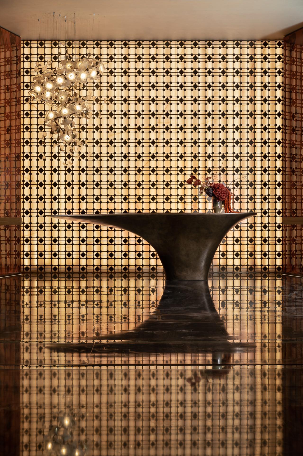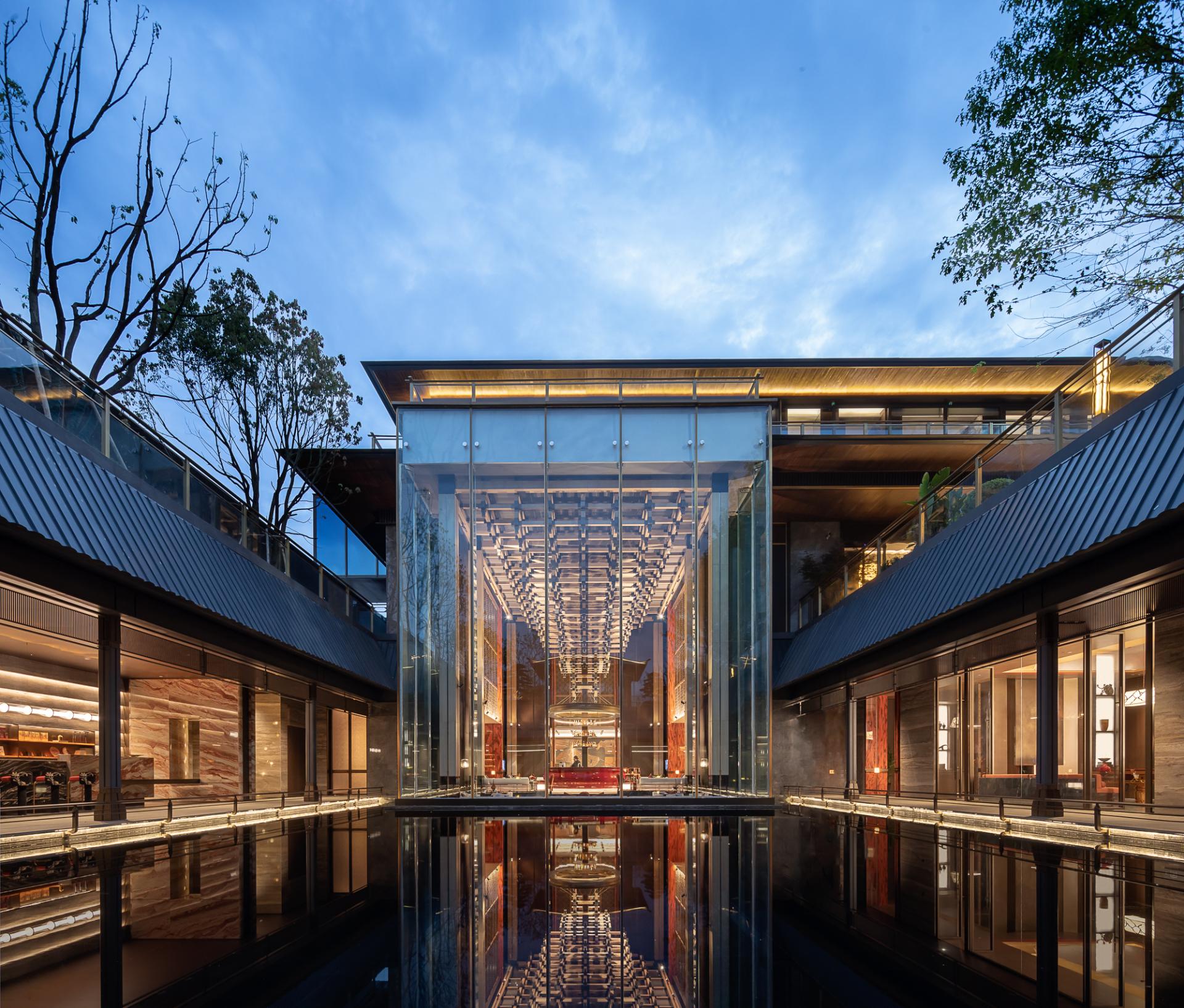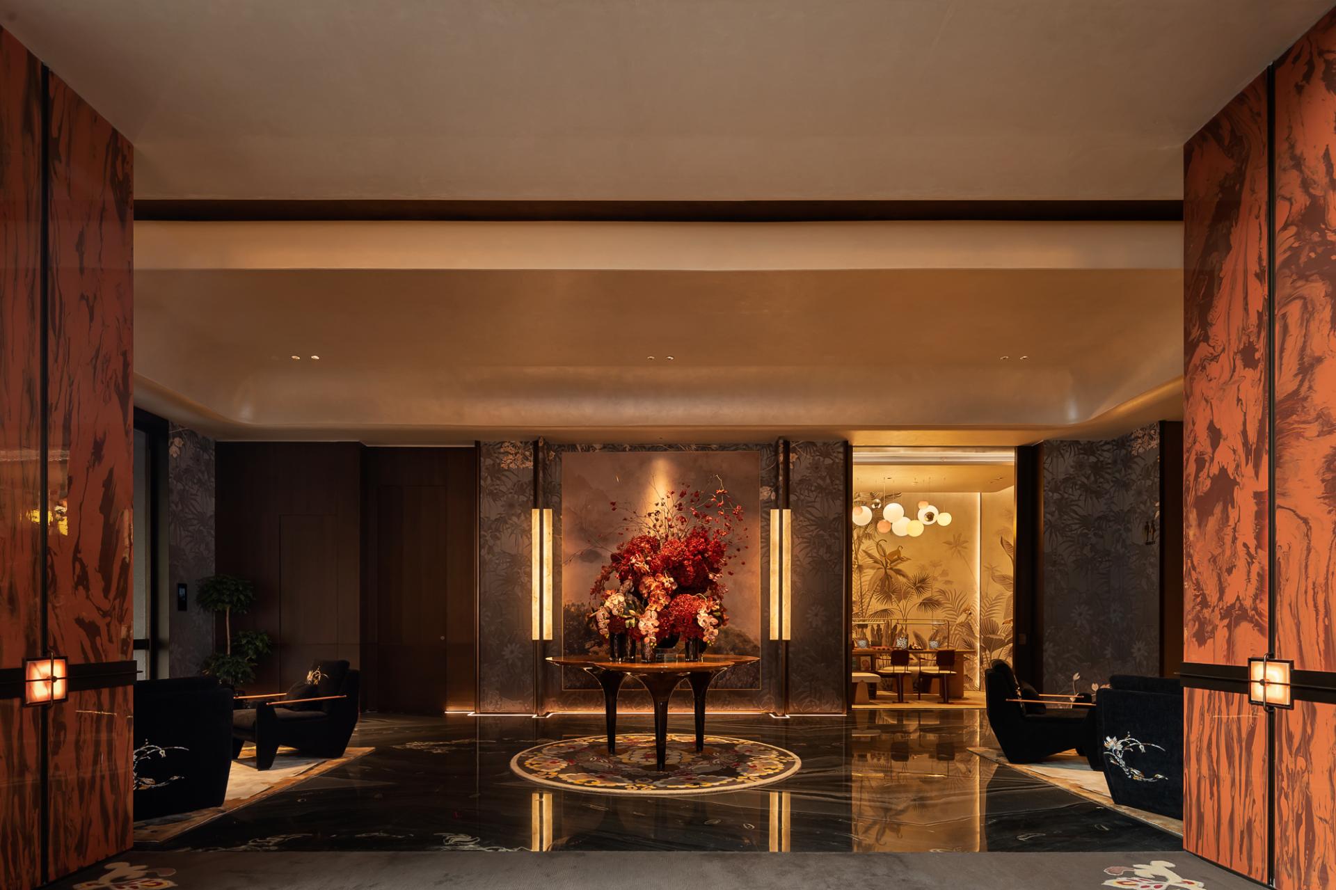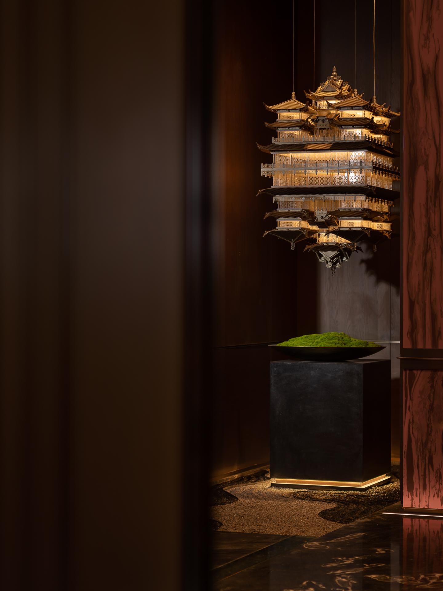 Unlike the traditional literati Song Yun of green mountains and waters, Qian Geng and He Xi drew on a more luxurious and prominent royal culture, creating products with richer colors and more respected regulations. About 12 meters of glass curtain wall, compared to the facade of Apple Park in San Francisco, its cost far exceeds that of ordinary clubs. The transparent texture is like a painting frame, framing the sunken courtyard "Sishui Guitang" into a scenery. Sitting here and looking at each other, one's mood will suddenly become clear. The spiritual totem located in the center of the sunken courtyard - Song Zhi Xuan Gong, was personally customized by Master Xiao Jinliang, the second generation disciple of Liang Sicheng, and can be regarded as a treasure level Chinese collection. In the clubhouse, the arch of wooden architecture art installation with a weight of more than 2 tons is suspended at a height of about 12 meters. It is extremely rare for it to be super heavyweight and super scale. It is worth mentioning that the private banquet hall of Qian Geng and He Xi was built according to banquet level standards, with a retractable design that can accommodate banquets of different levels, making it very suitable for high-level banquets such as business leaders and business elites.