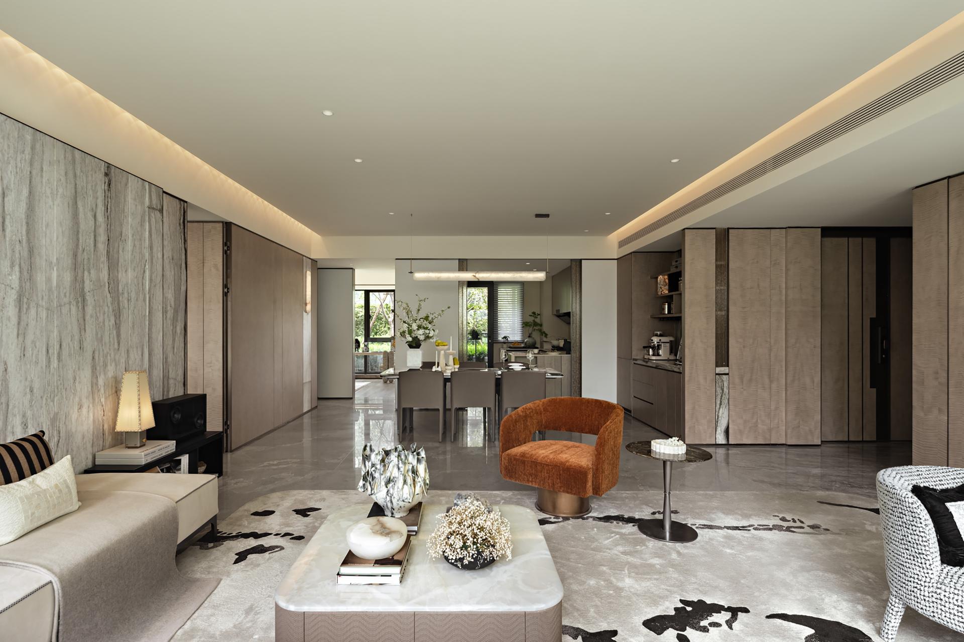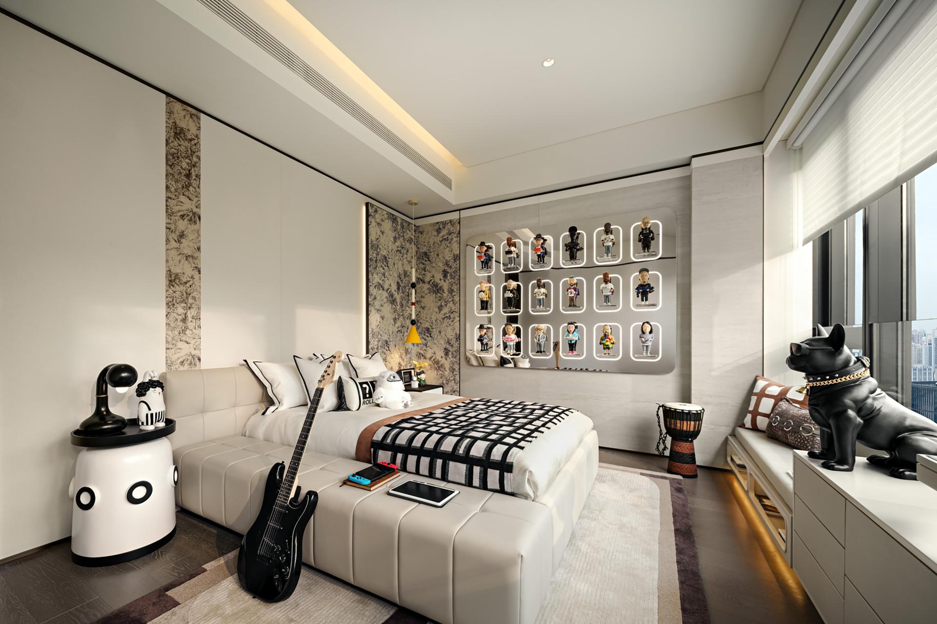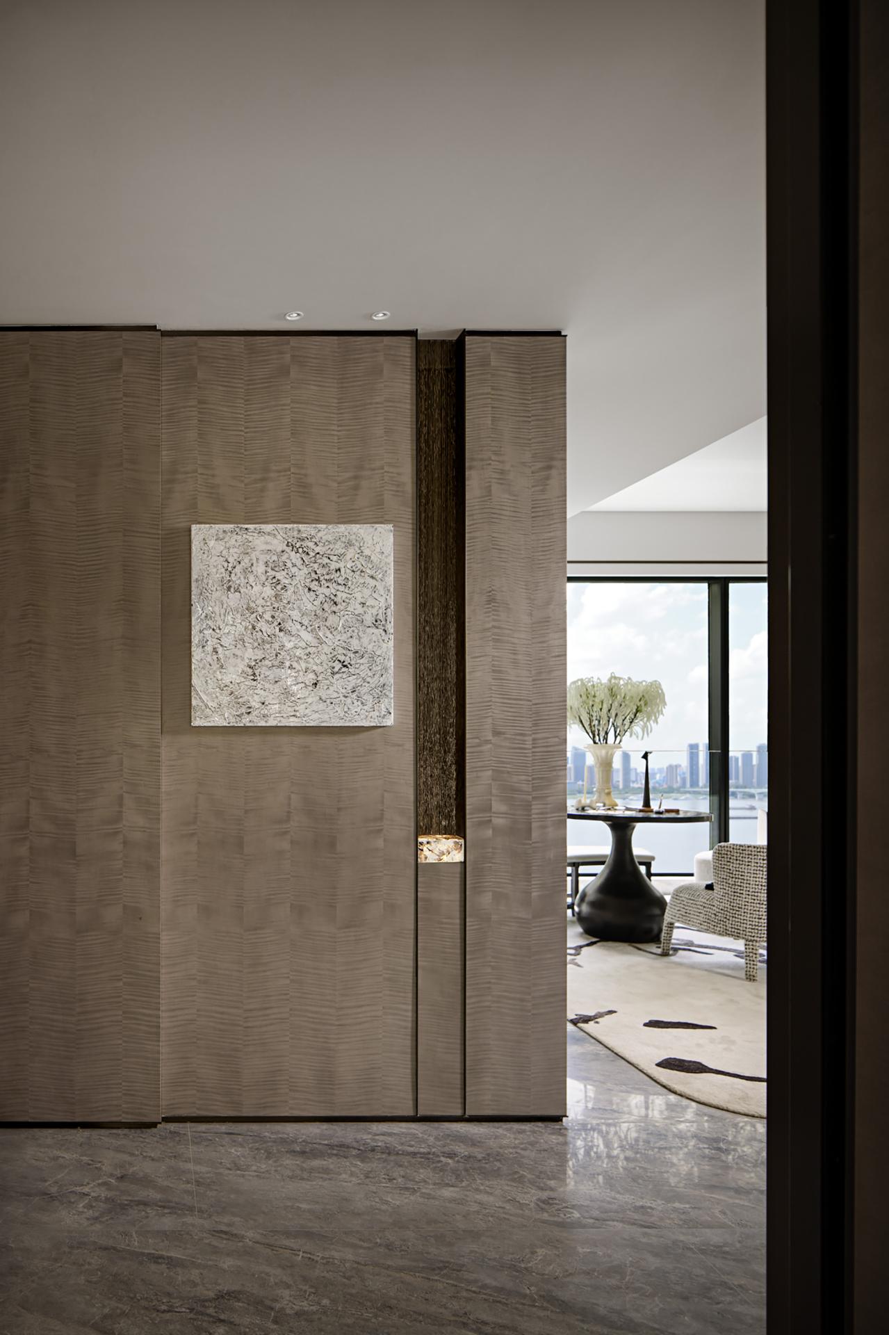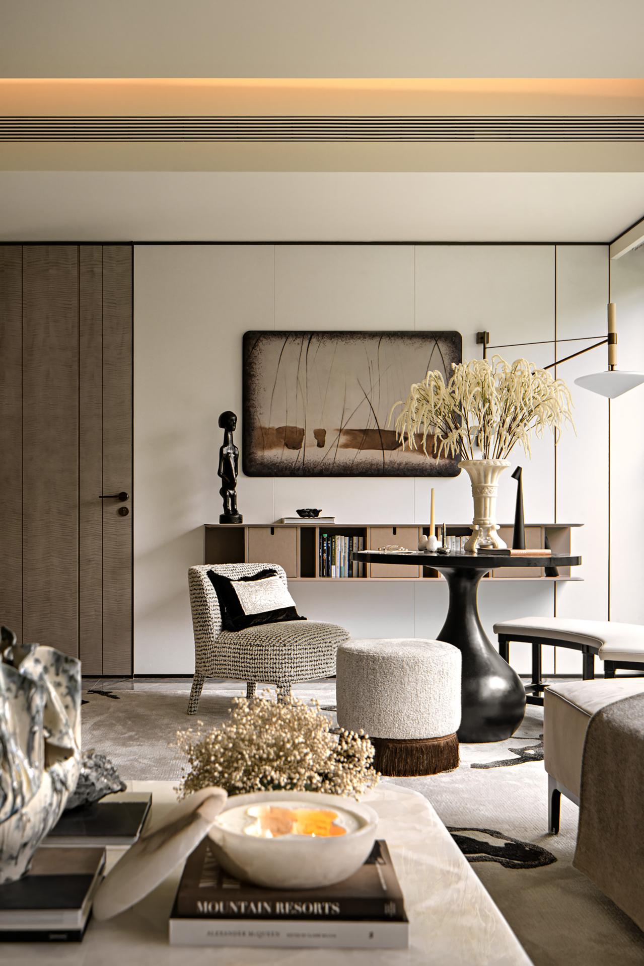 The inspiration for the spatial design comes from the spatiotemporal dialogue between Wuhan's "Jiangcheng Charm" and Shanghai's modern aesthetics, using deconstructivist techniques to reshape the spatial texture. The space is centered around "Boundless, Art, and Collection", and revolves around the interweaving of "International Oriental Aesthetics" and "Modern Art Spirit", creating a collection level mansion that combines cultural depth and contemporary lifestyle. The design uses a narrative technique that integrates Chinese and Western elements to transform the demands of Wuhan's elite class for art, socialization, and family inheritance into spatial language. With museum level curatorial thinking, the living scene is reconstructed, allowing for a deep dialogue between art collections and living scenes. At the same time, it strengthens the composite functions of family socialization, parent-child education, and display of circle culture, redefining the spiritual field of modern elite life. The color scheme of the space is black, white, and gray, with powerful colors that make the entire space tough and distinct. The collision of high intelligence rationality and art is more attractive.