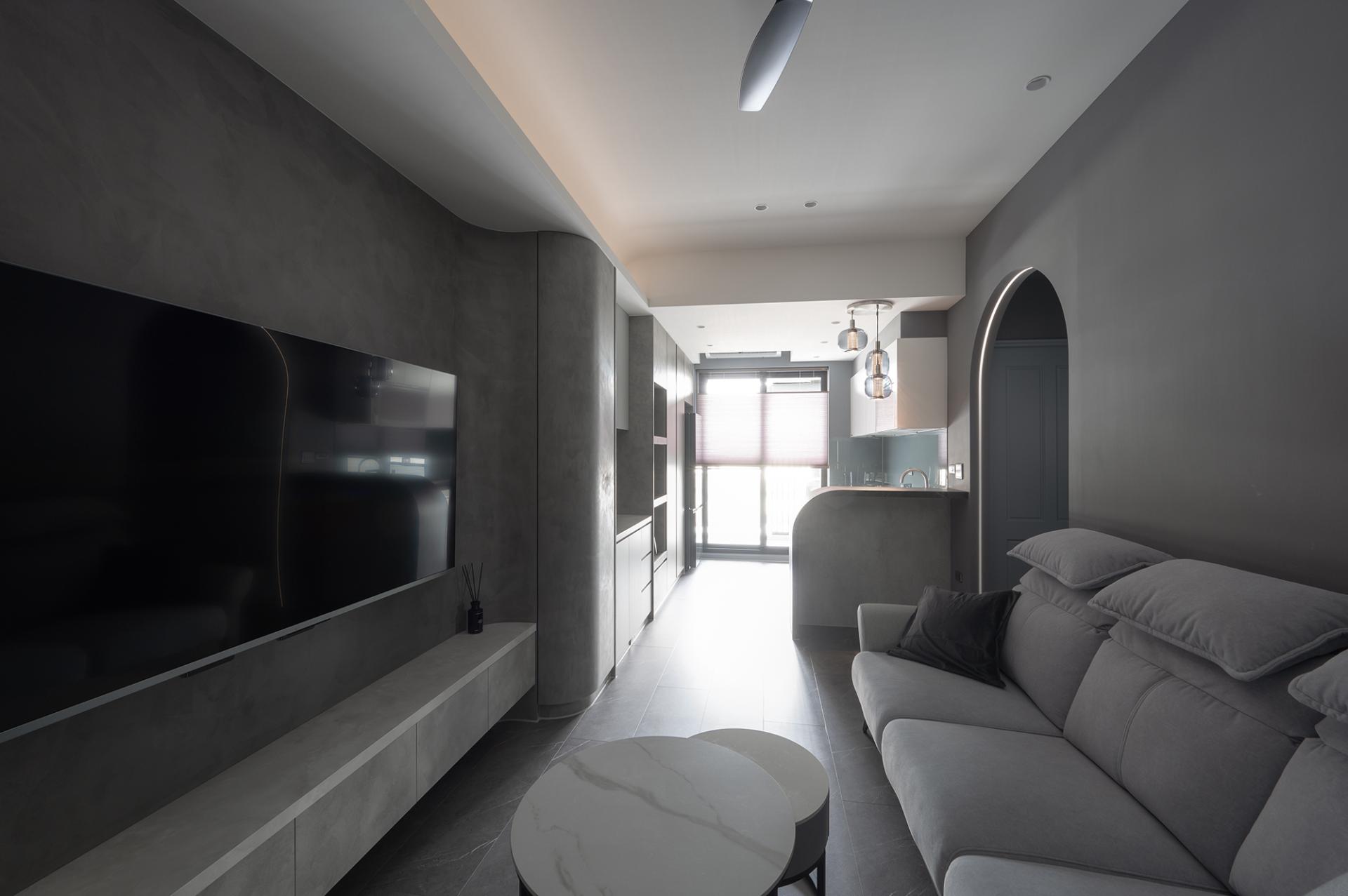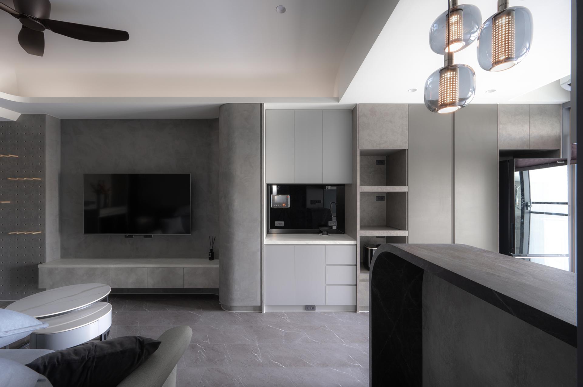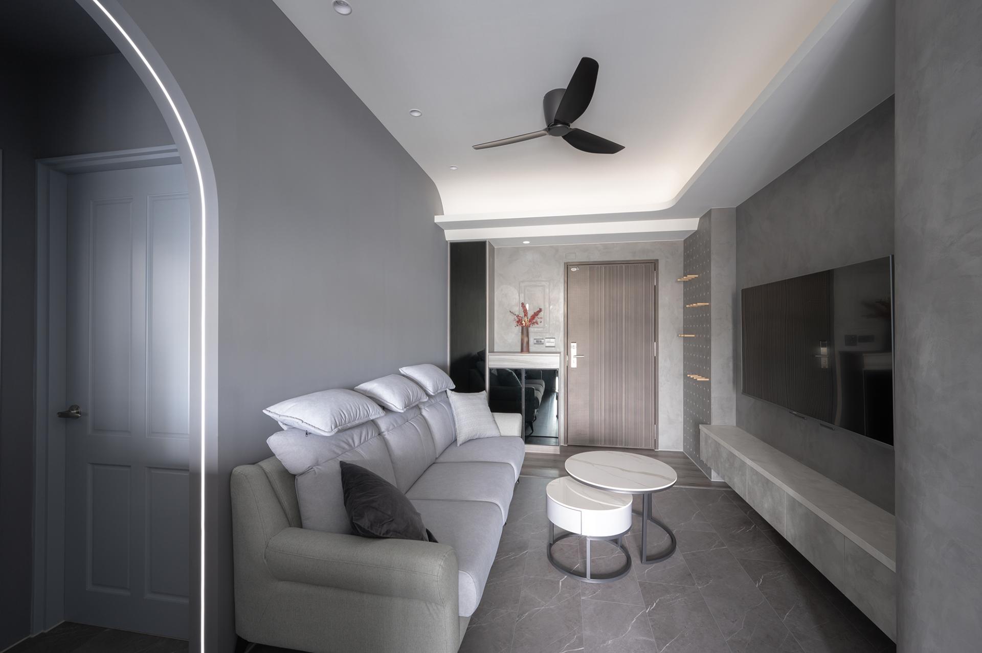 This project presents a meticulous renovation design for a newly constructed residence, which elegantly employs a sophisticated gray color palette as its foundation. Complemented by accents of pure white, the design creates an atmosphere that is not only serene but also bright and airy. Furthermore, the focal points of this design emphasize the dynamic interplay between horizontal and vertical lines, seamlessly integrated with gracefully curved elements. This combination infuses a soft rhythm into the clean, structured layout, effectively guiding the flow of both sight and movement throughout the space. In addition to its aesthetic appeal, the design incorporates numerous hidden storage cabinets, enhancing functionality while maintaining an open and spacious living environment. As a result, the overall tone of the space is characterized by purity and harmony, skillfully blending lightness with balance. Ultimately, this design creates a well-organized and inviting home that embodies comfort and elegance.