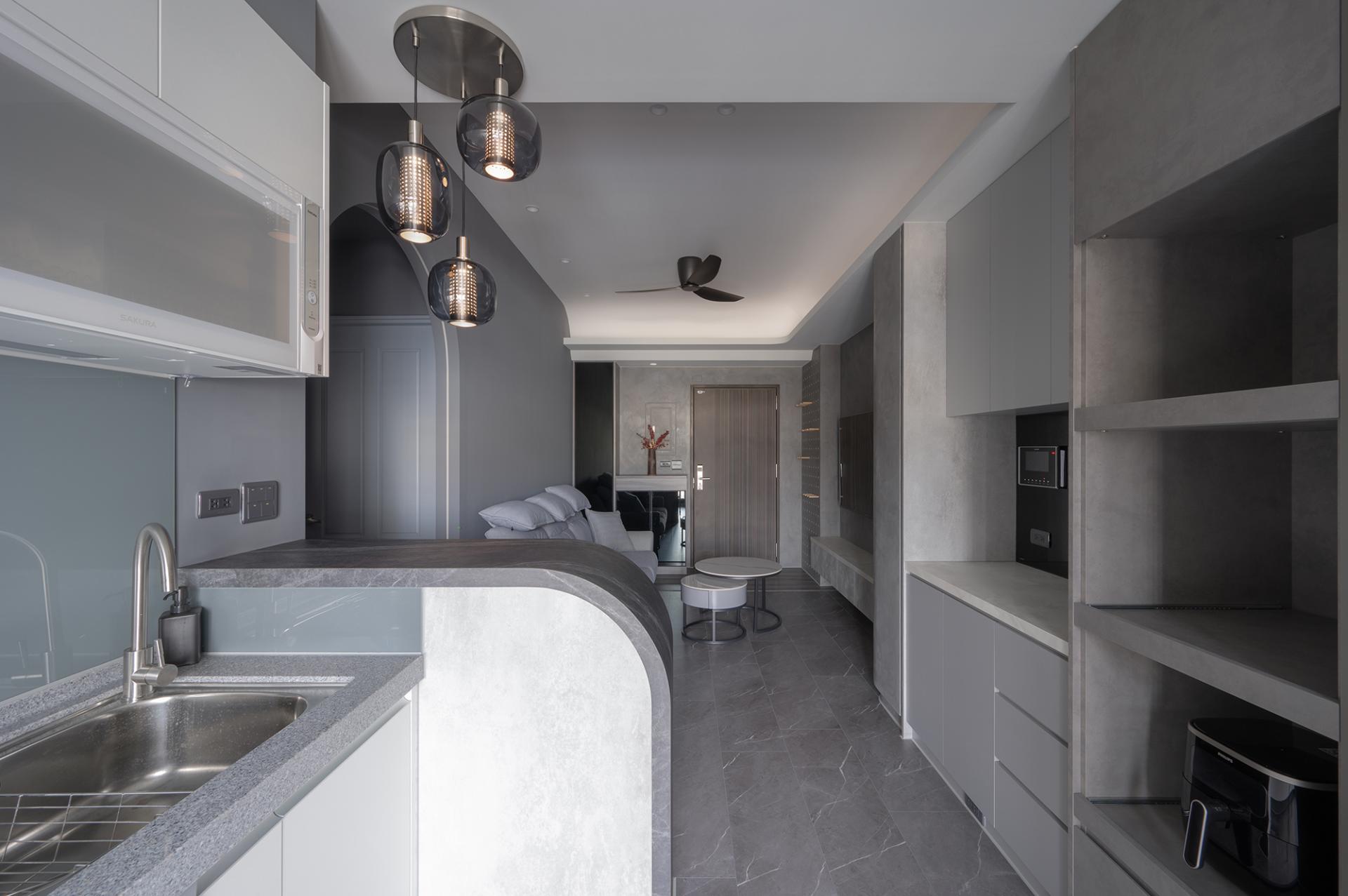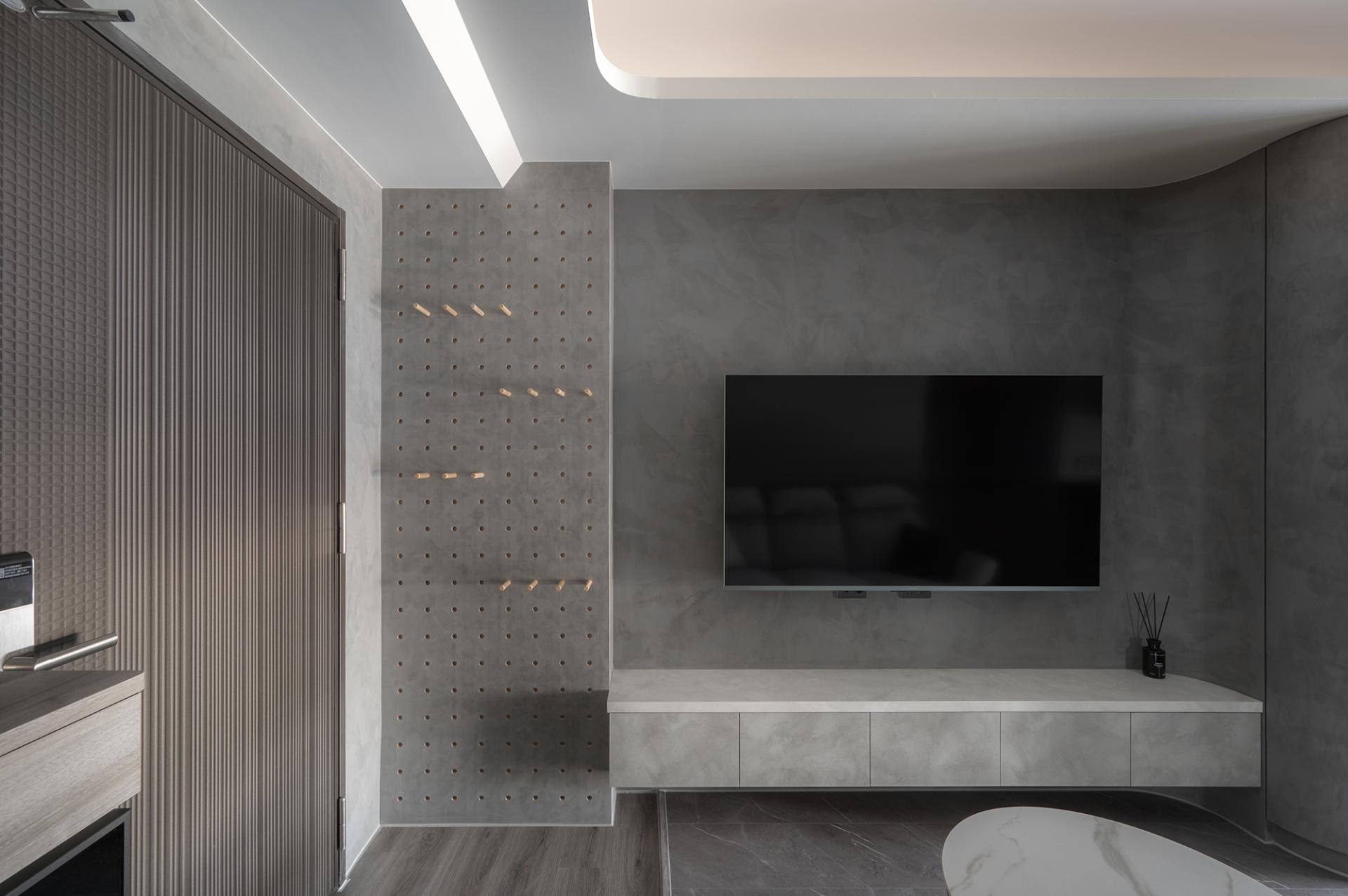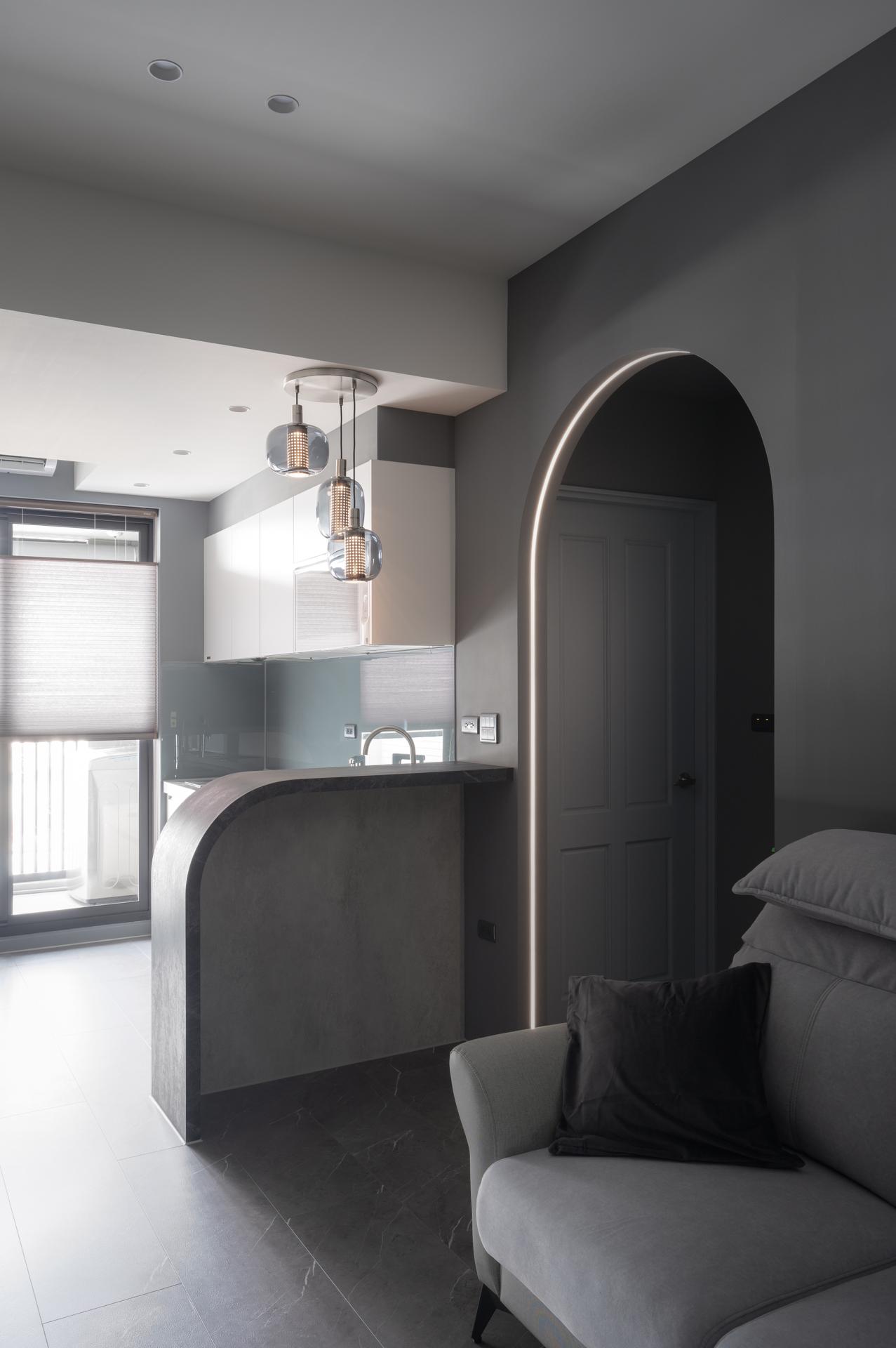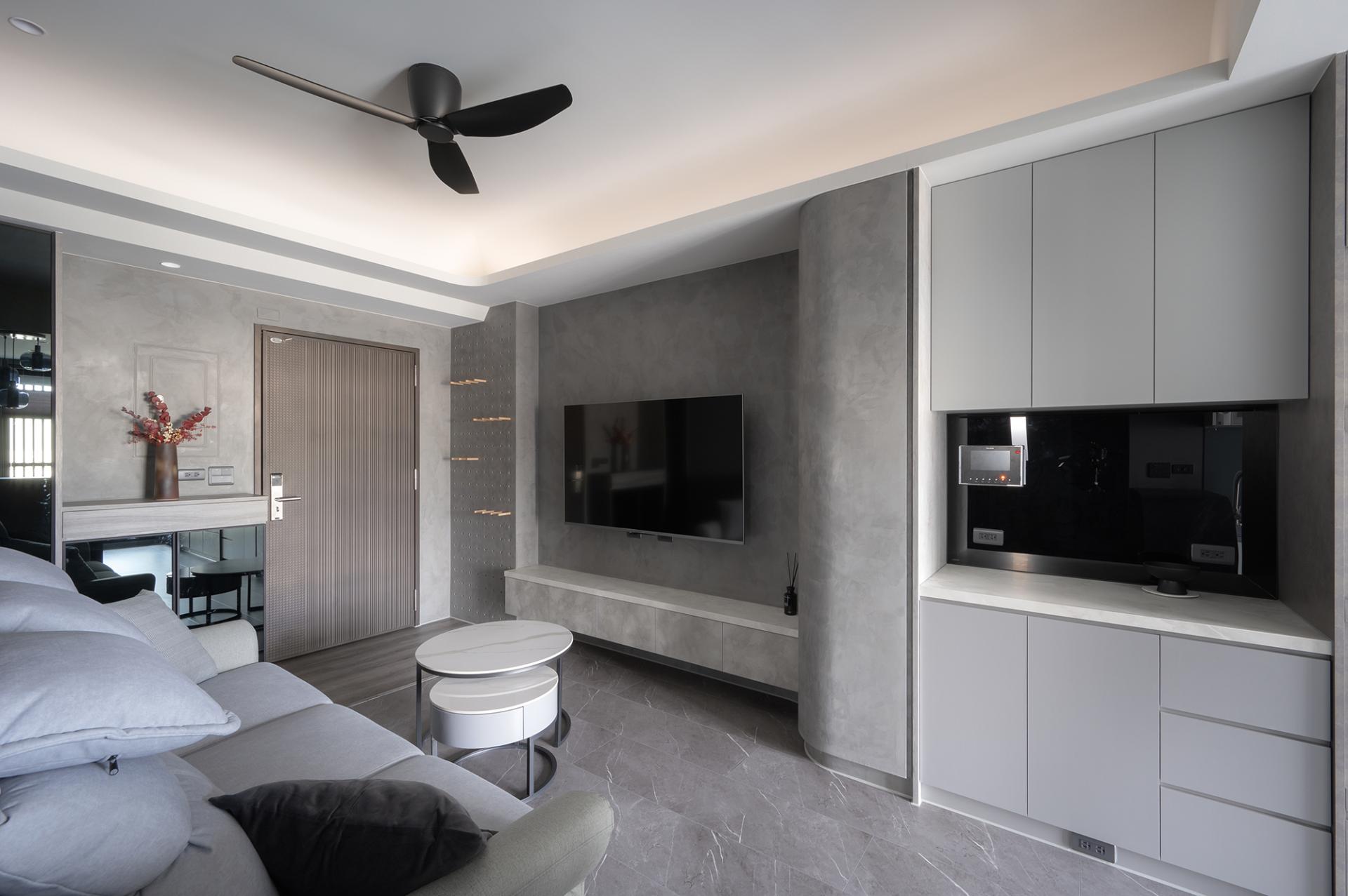This project presents a meticulous renovation design for a newly constructed residence, which elegantly employs a sophisticated gray color palette as its foundation. Complemented by accents of pure white, the design creates an atmosphere that is not only serene but also bright and airy. Furthermore, the focal points of this design emphasize the dynamic interplay between horizontal and vertical lines, seamlessly integrated with gracefully curved elements. This combination infuses a soft rhythm into the clean, structured layout, effectively guiding the flow of both sight and movement throughout the space. In addition to its aesthetic appeal, the design incorporates numerous hidden storage cabinets, enhancing functionality while maintaining an open and spacious living environment. As a result, the overall tone of the space is characterized by purity and harmony, skillfully blending lightness with balance. Ultimately, this design creates a well-organized and inviting home that embodies comfort and elegance.