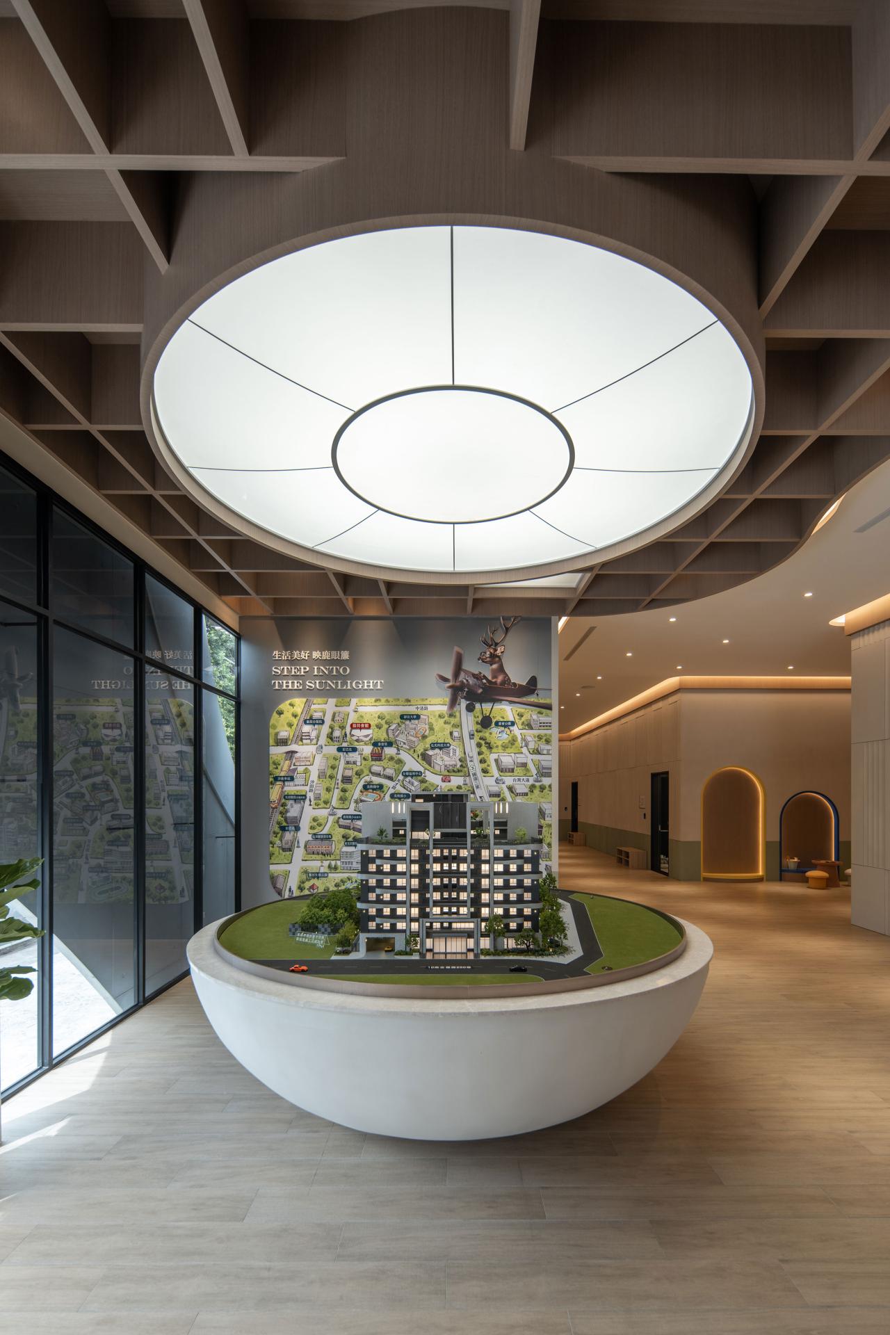 The Nexus Point in Shalu city, Taiwan, transcends the conventional sales center typology, embracing innovation and user experience within the constraints of an irregularly shaped site. Designed to reflect the forward-thinking vision of Kun Yue Construction, the project capitalizes on the site's unique challenges to create a dynamic and welcoming space that resonates with a younger demographic. This is achieved through a thoughtful interplay of linear and curvilinear forms, strategic use of light, and a carefully curated material palette that prioritizes sustainability and enduring appeal.