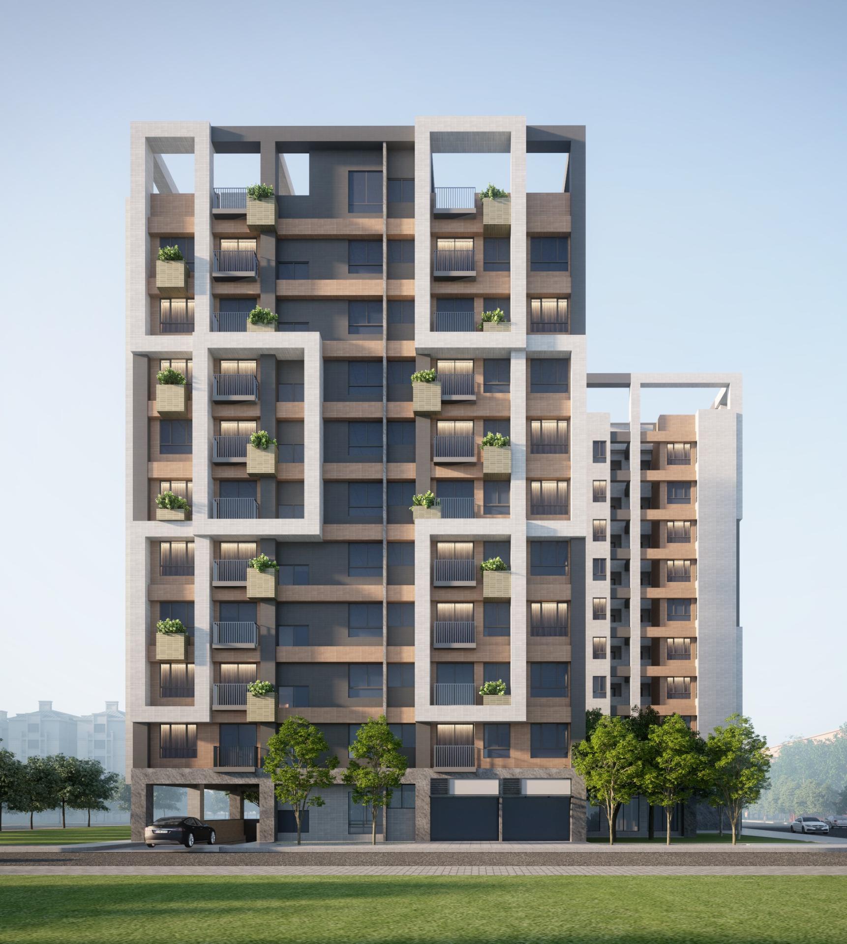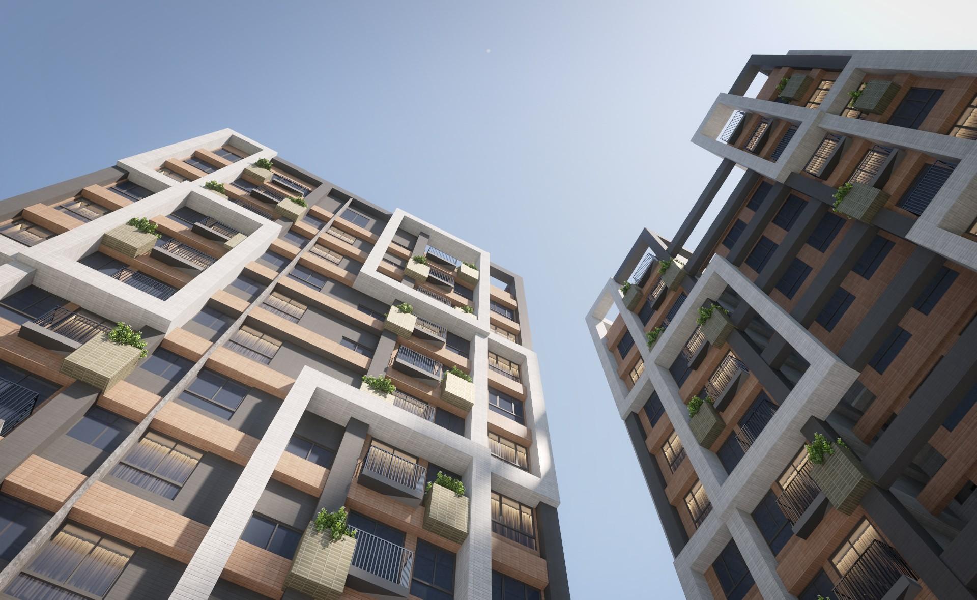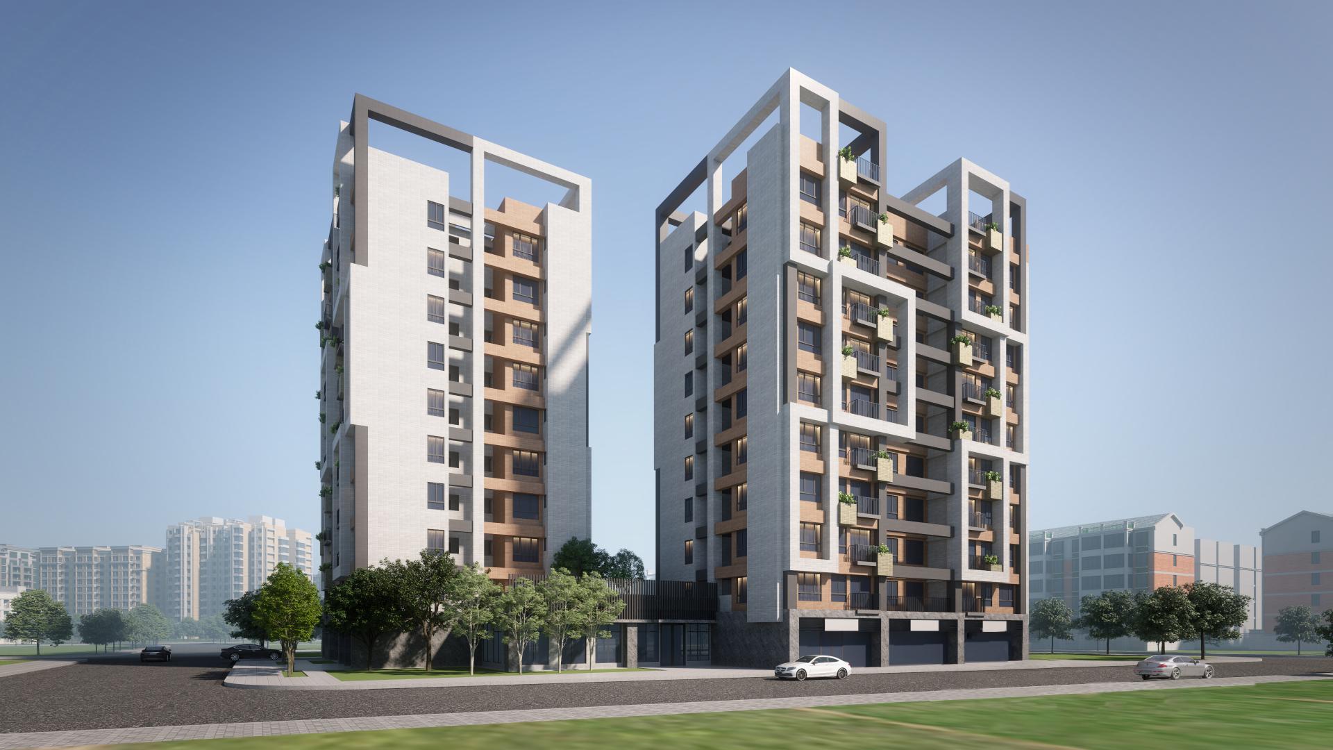 Another highlight lies in the project’s low building coverage ratio. Out of the 3074.38 square meters site, only 30% is occupied by buildings, leaving the other area as open lawn. This generous green space extends the visual field and becomes a stage for community interaction and children’s play. Two residential towers rise ten stories each, with five units per floor, reducing density while improving elevator efficiency. The façade employs grilles and recessed-relief layering to create a distinctive character, ensuring that each direction presents a unique expression. This approach allows residents to identify their homes at a glance, fostering a sense of belonging.