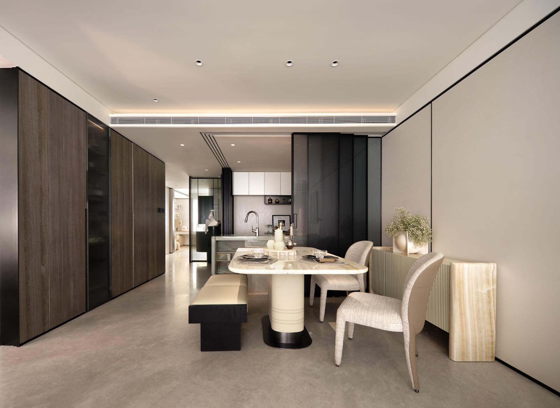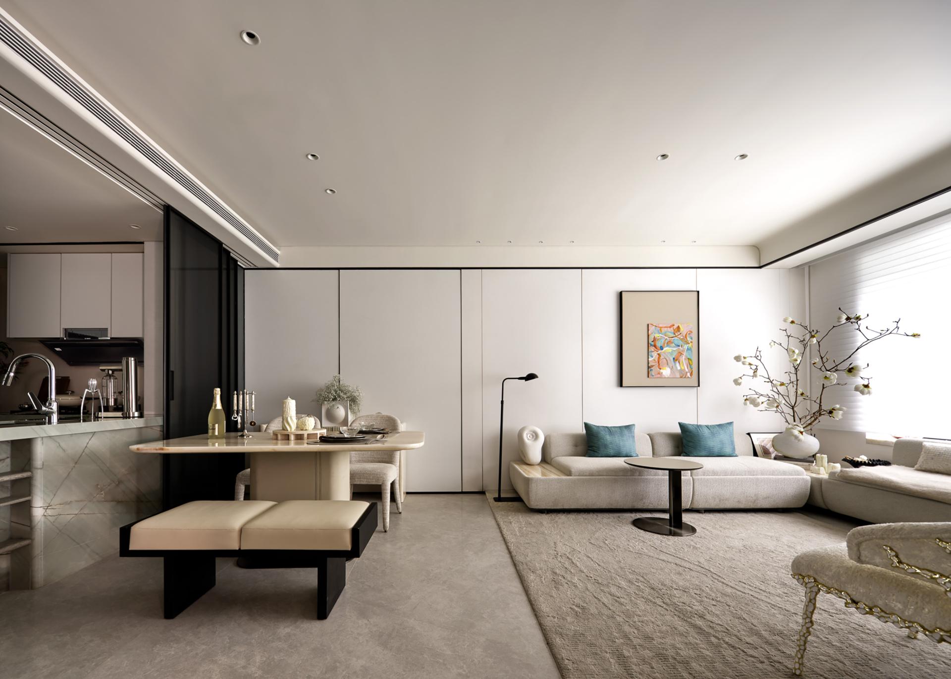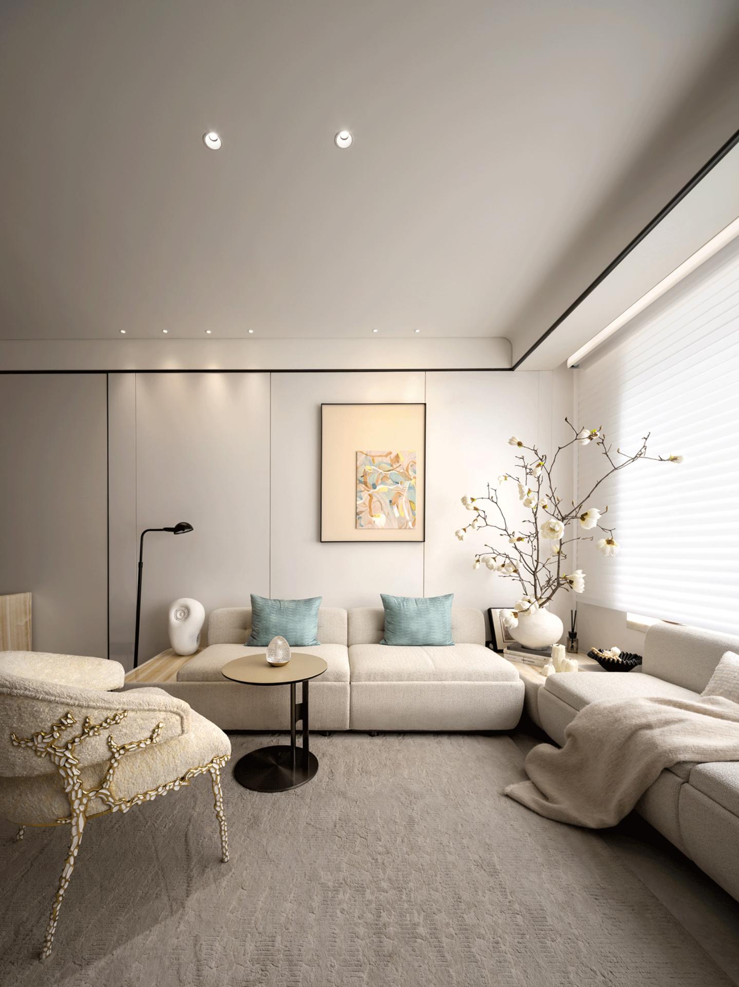 The design concept of this space is centered around modern simplicity, pursuing a simple yet warm living experience. The overall use of neutral tones as the main tone creates a peaceful and comfortable atmosphere, allowing people to feel inner peace and tranquility as soon as they enter the space. The extensive use of natural materials such as wood, stone, and fabric in the design not only enhances the texture of the space, but also adds a natural warmth and familiarity. The open layout breaks down the barriers of traditional spaces, seamlessly connecting the living room and dining room, enhancing the transparency of the space and the interaction between family members. At the same time, carefully selected art paintings and unique furniture designs inject a touch of artistic atmosphere into the space, reflecting the residents' pursuit of quality of life. The entire design pursues details in simplicity and embodies beauty in practicality, aiming to create an ideal residence that is both modern and warm.