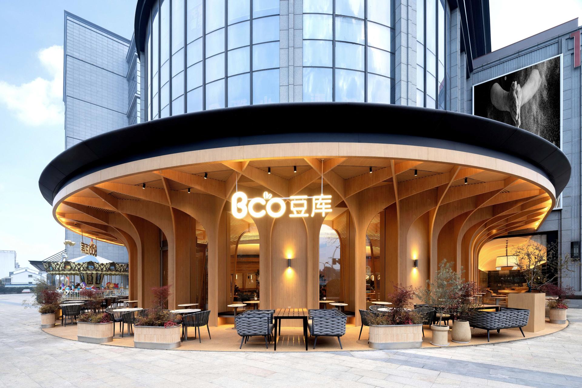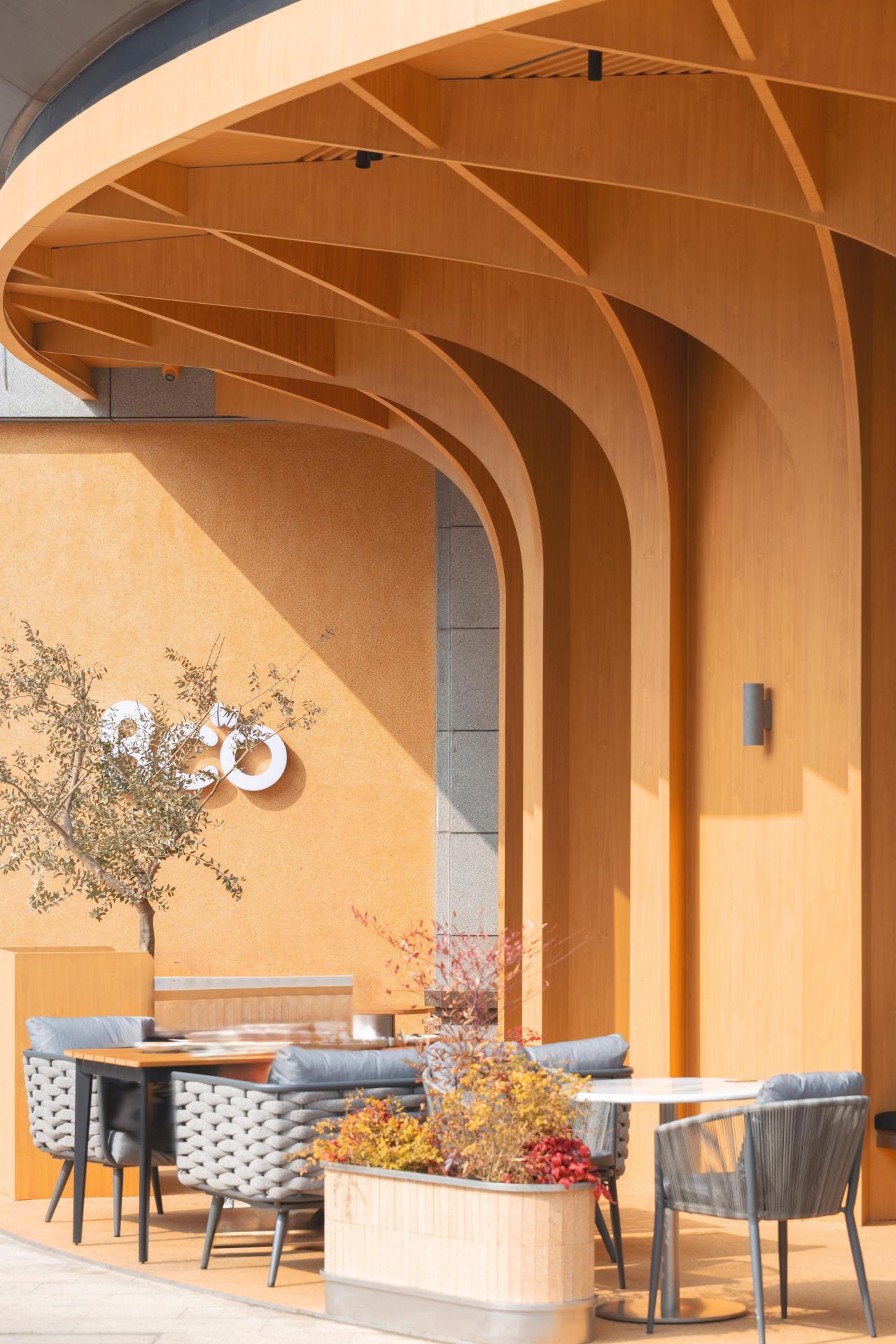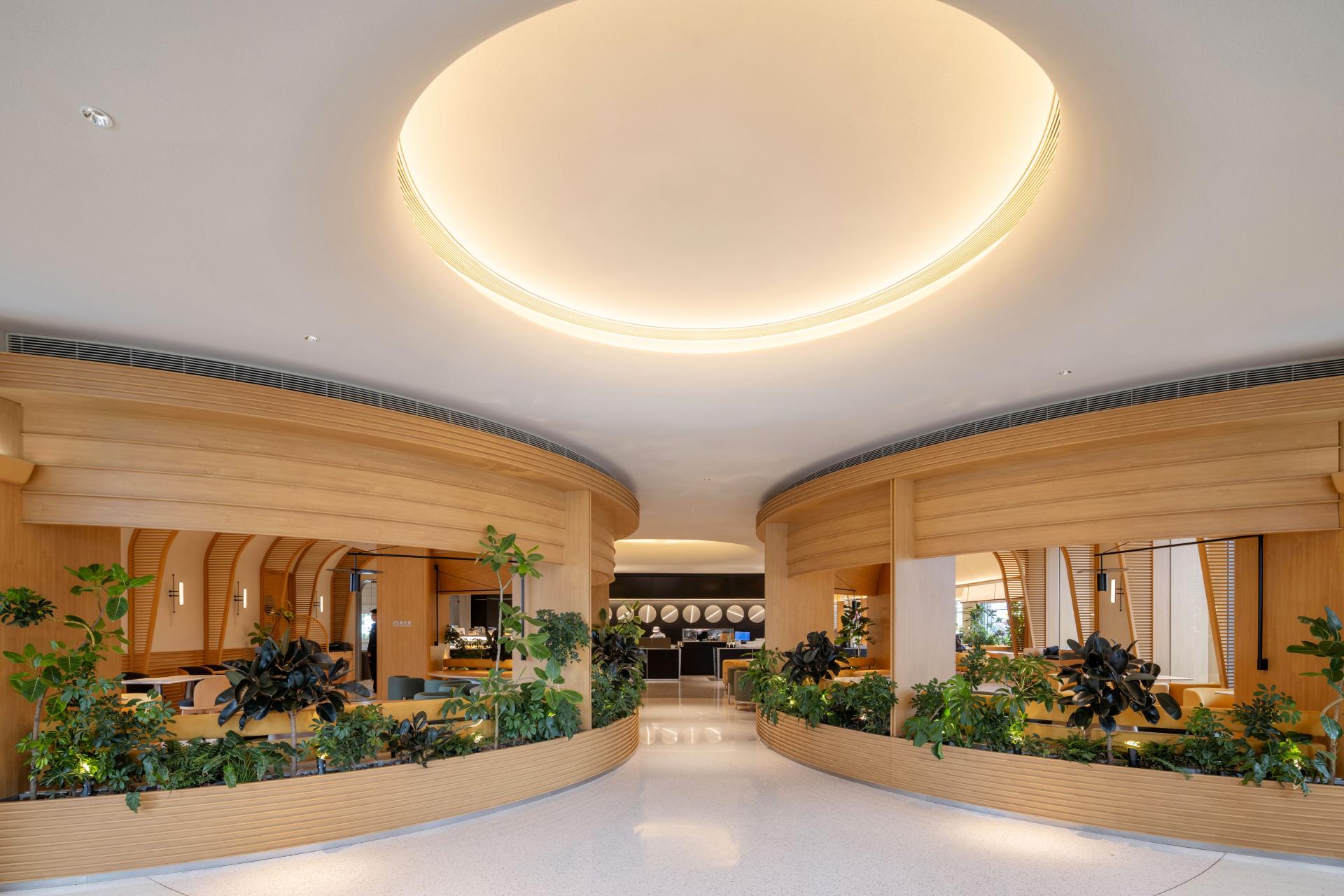 BCO Yangzhou Zhongji sits on the ground floor of Zhongji Wenchang Center at 618 Wenchang Middle Road—locals call it “the most Instagrammable brunch oasis on Wenchang.” Nearly 500 m² of double-height space is washed in daylight by full-height windows; inside, low-saturation concrete, pale oak and off-white set the tone, while cascading ferns, monsteras and an 1.8-metre living moss wall drop the perceived temperature by three degrees.