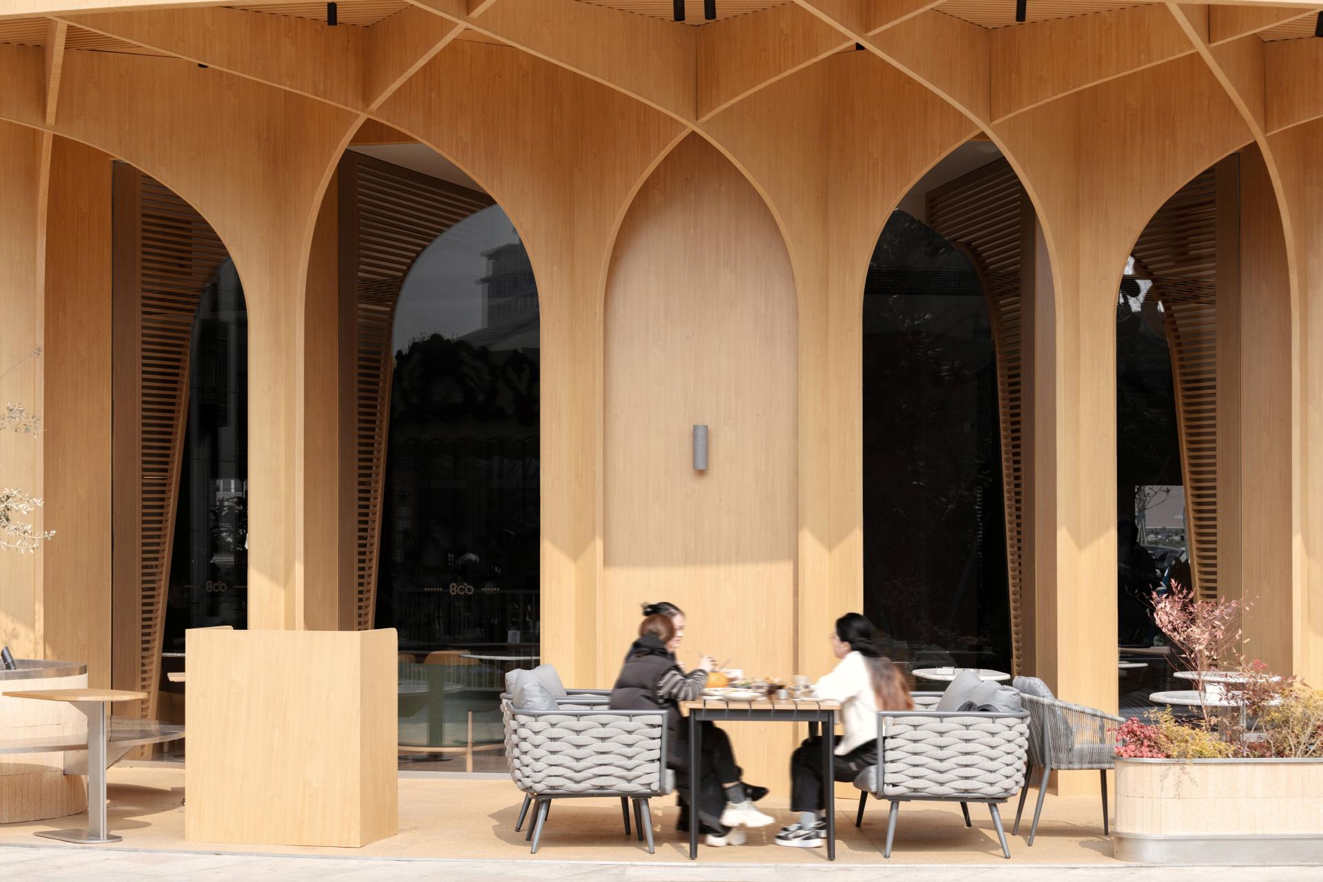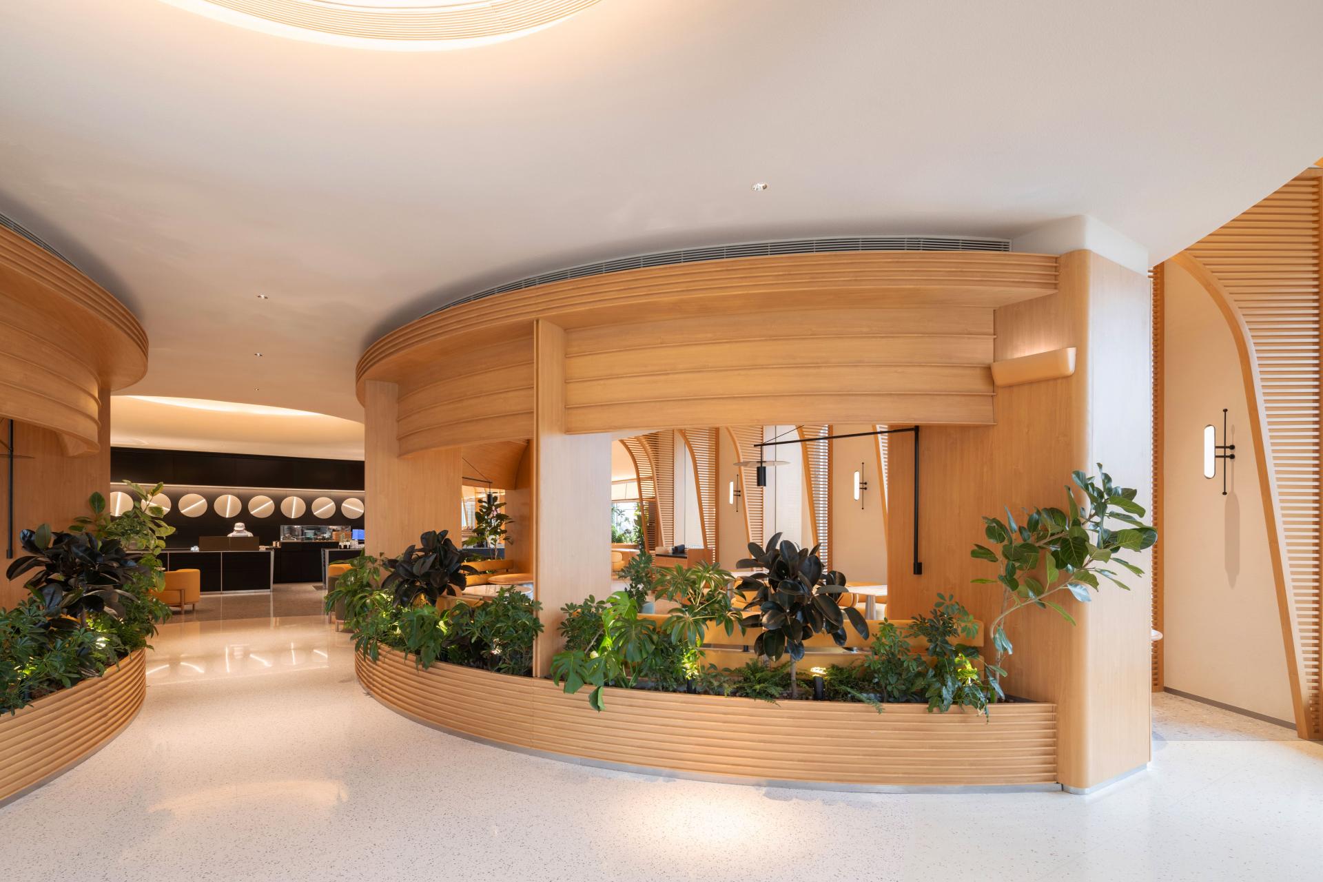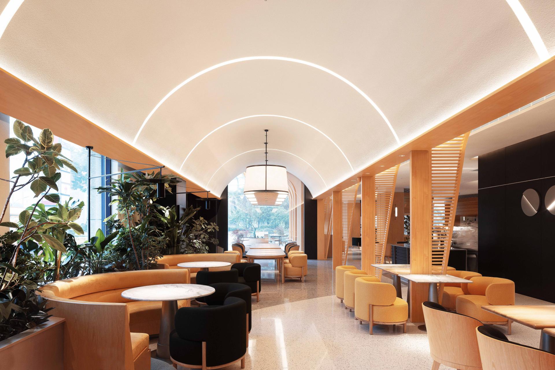 BCO Yangzhou Zhongji sits on the ground floor of Zhongji Wenchang Center at 618 Wenchang Middle Road—locals call it “the most Instagrammable brunch oasis on Wenchang.” Nearly 500 m² of double-height space is washed in daylight by full-height windows; inside, low-saturation concrete, pale oak and off-white set the tone, while cascading ferns, monsteras and an 1.8-metre living moss wall drop the perceived temperature by three degrees.
