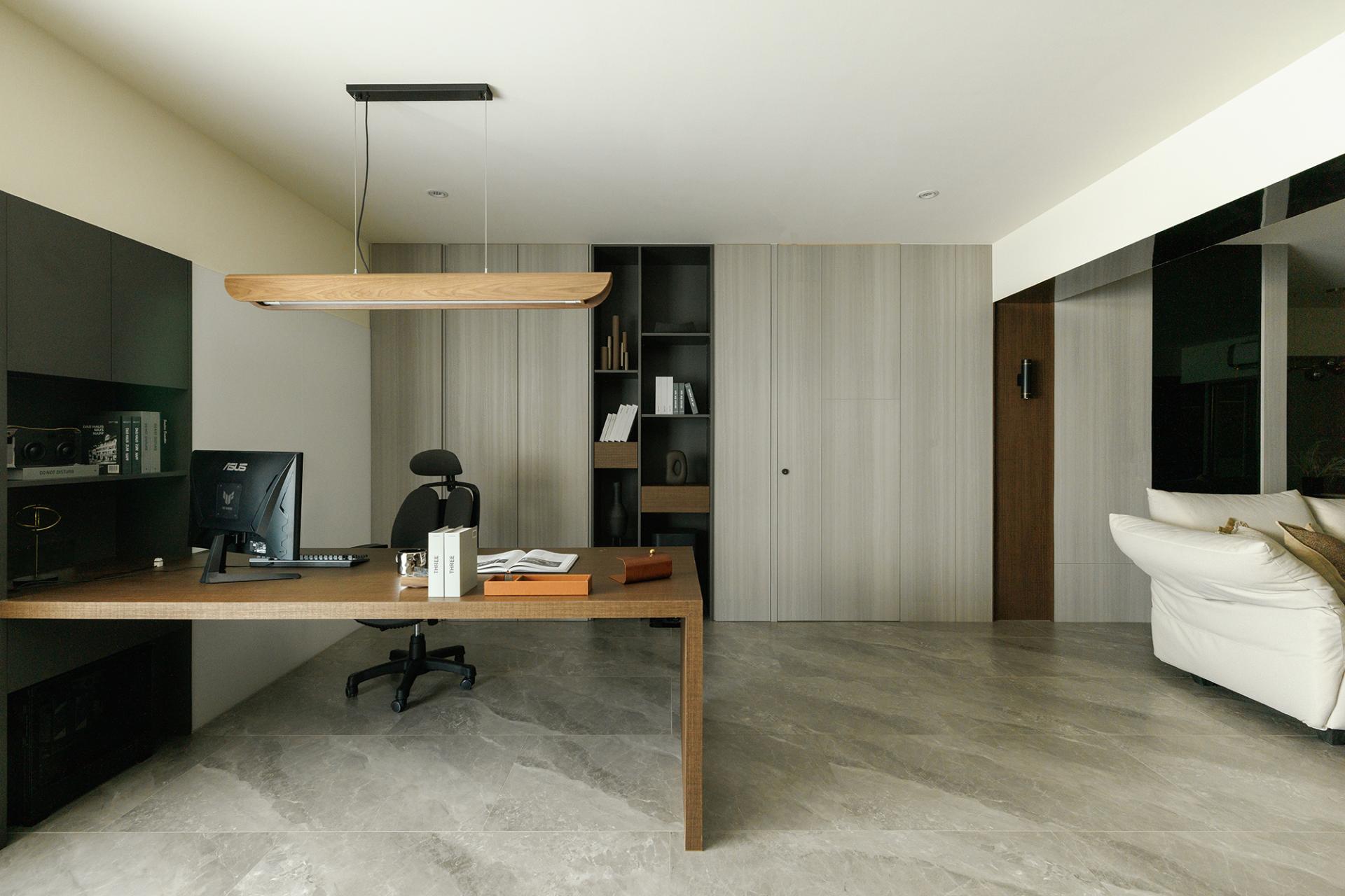 This renovation project beautifully transforms an old house in Taichung, aiming to encapsulate the homeowner's rational and minimalist personality in the design. At the heart of this endeavor is the creation of an open, inviting area that seamlessly integrates the living room, study, and dining space. By allowing natural light and air to flow freely throughout the area, the design enhances both interactivity and openness, fostering a warm and welcoming atmosphere.