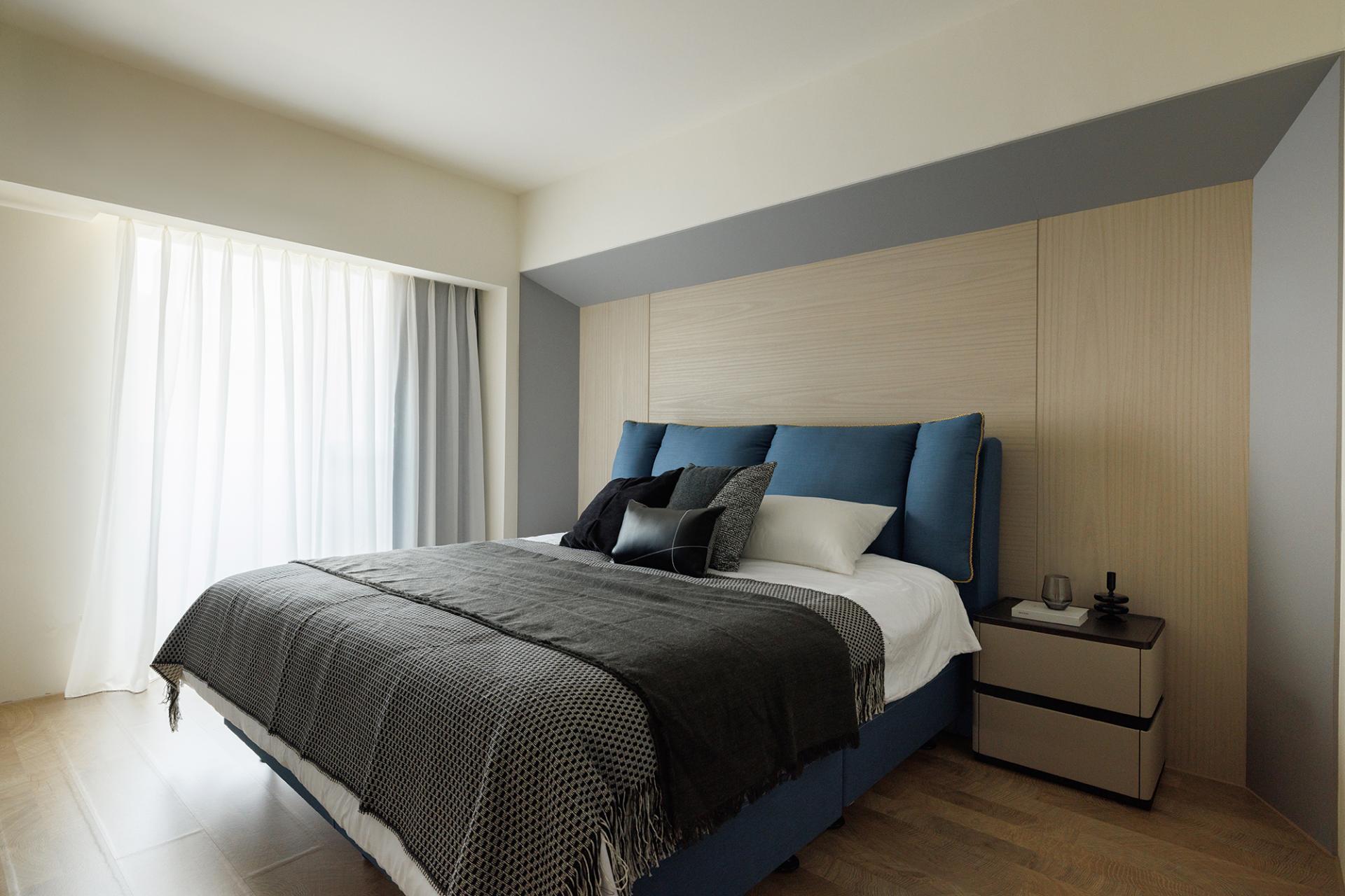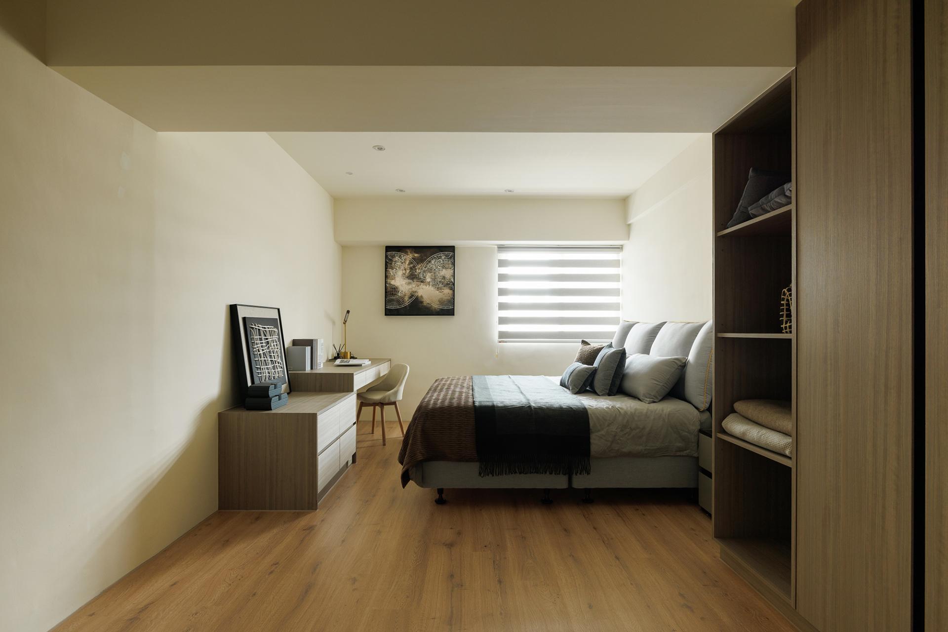 Furthermore, the “angled” design language contributes to a cohesive yet dynamic aesthetic throughout the home. The master bedroom embraces a minimalist approach, allowing the surrounding space to breathe. In contrast, the bathroom has been expanded, transforming the master bedroom into a serene retreat that nurtures both mind and body. To further enhance organization, a well-appointed walk-in closet efficiently addresses clothing and storage needs, promoting clear circulation and a sense of calm in daily routines.