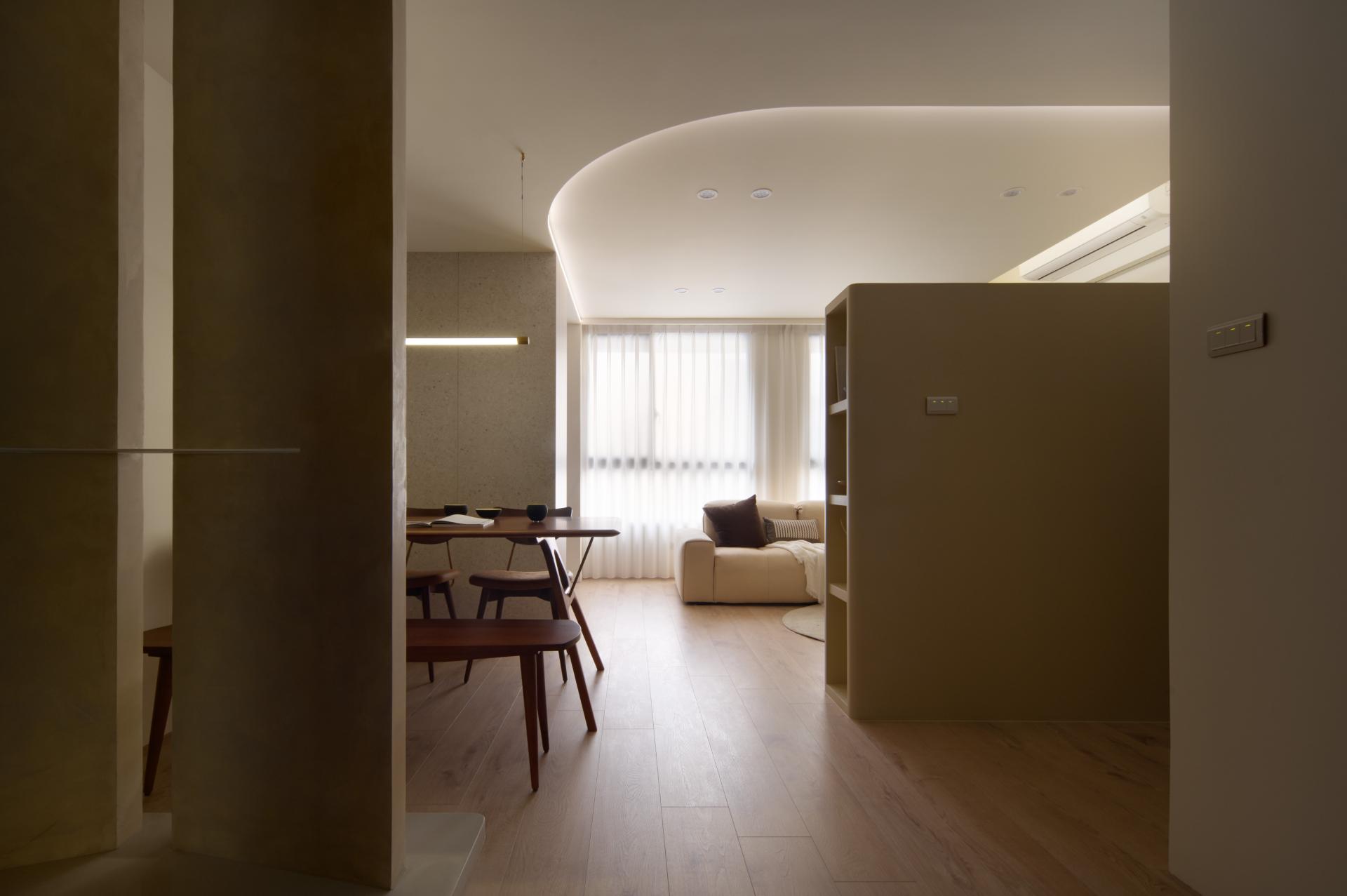 設計核心以「光」為起點,考量基地原有的採光優勢,我們嘗試將光線延伸至更深的空間角落,透過塊體的局部挖空與材質反射,引光入室,使日光得以自然流動於各場域之中,建立空間間的柔性連結。