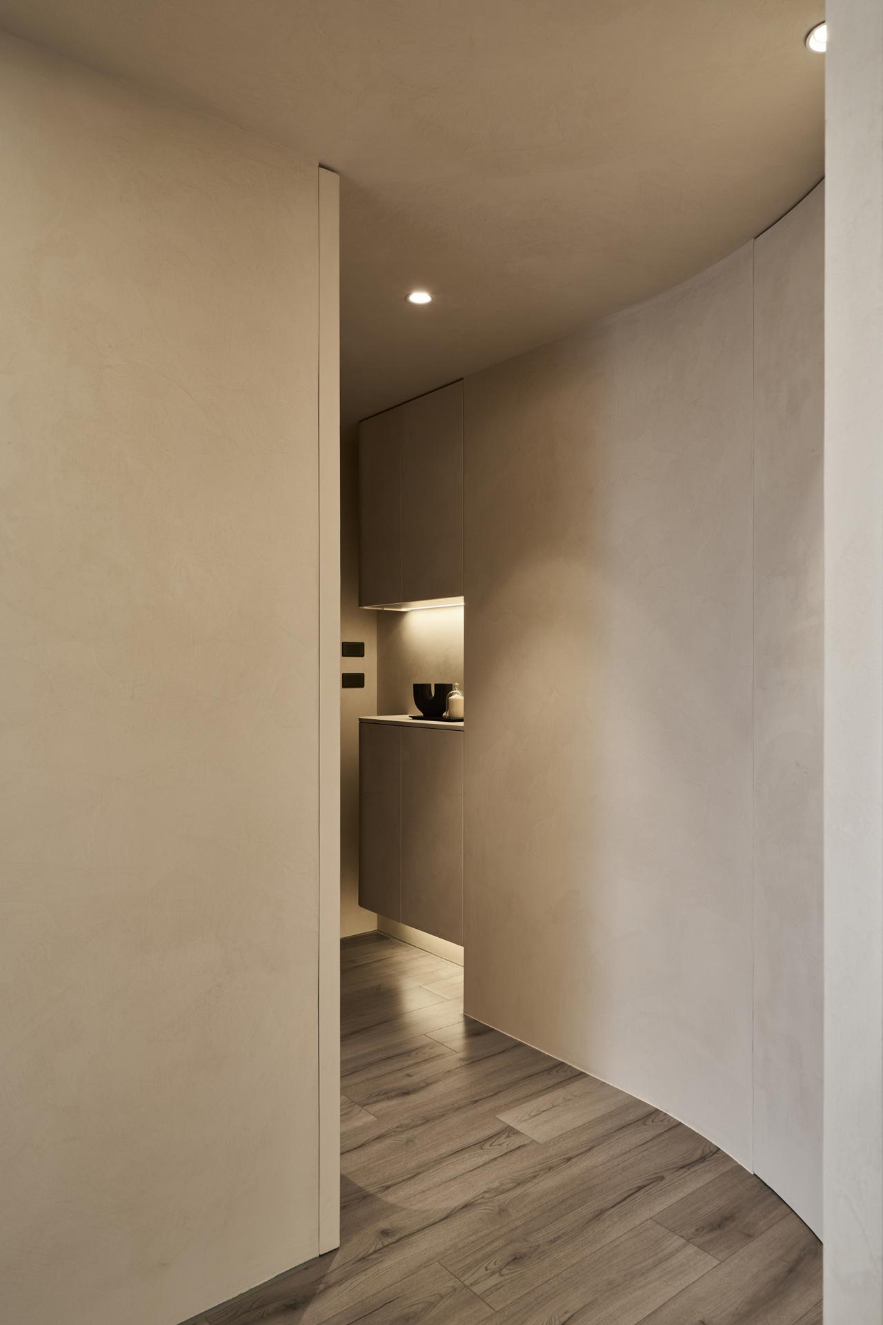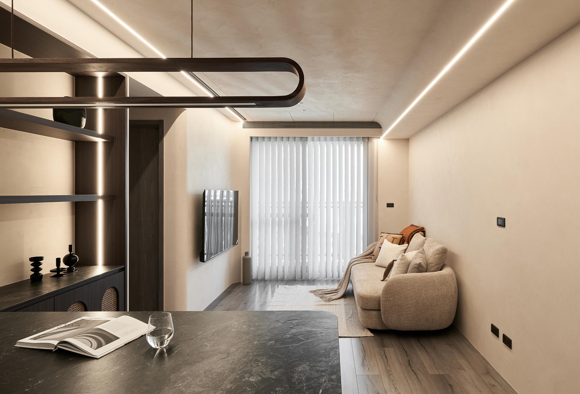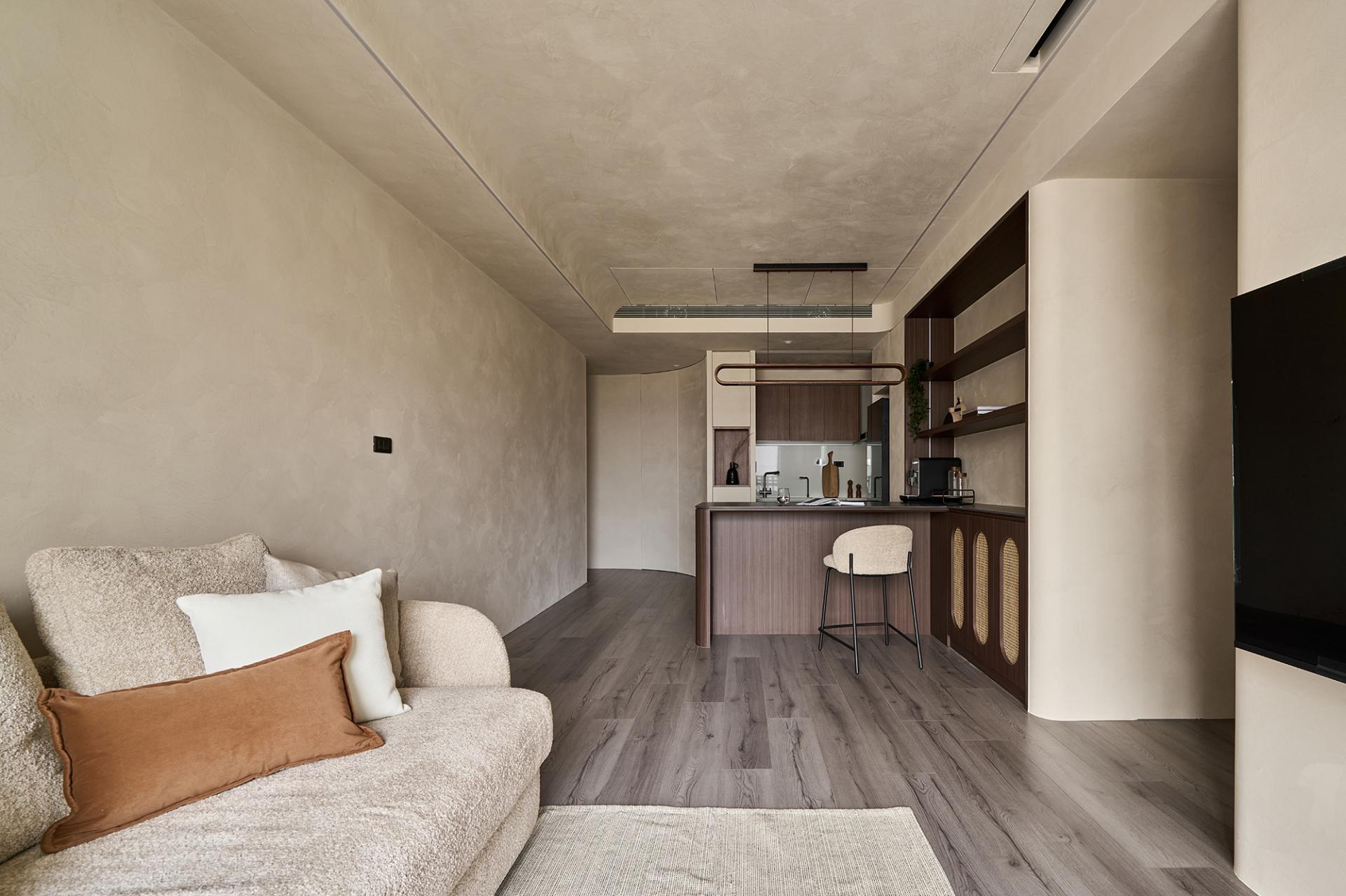 This thoughtfully designed 50-square-meter micro-residence serves as a tranquil retreat, offering both residents and visitors a place where body and mind can unwind. It provides a serene escape from the fast-paced demands of urban life. Within this compact space, every element is meticulously curated to seamlessly blend aesthetics with functionality, resulting in a harmonious and efficient living layout. The design features a soothing palette of off-white mineral paint, complemented by natural rattan and rich dark wood panels, effectively embodying the serene principles of Japanese wabi-sabi style. As one enters this micro-residence, one will be enveloped by an atmosphere of calmness and simplicity, inviting one to relax and rejuvenate.