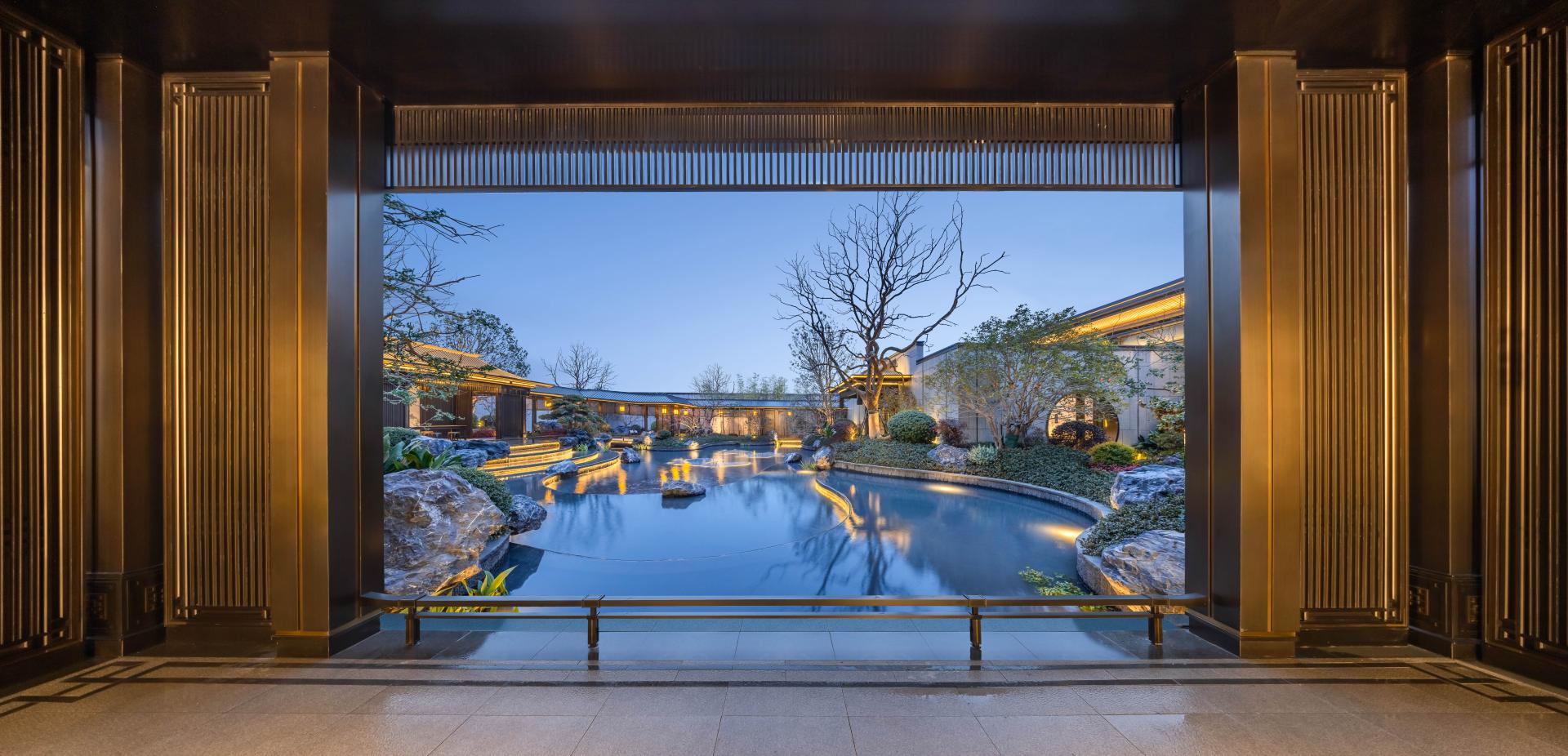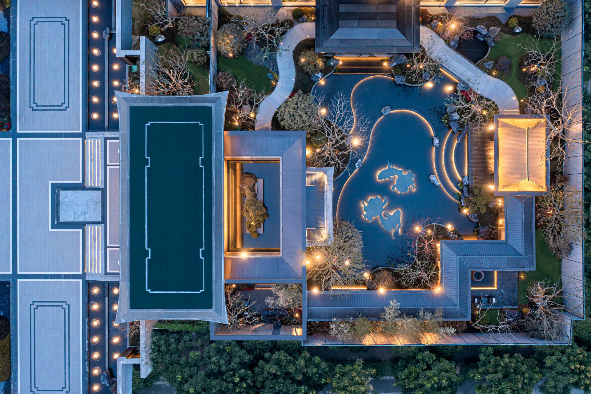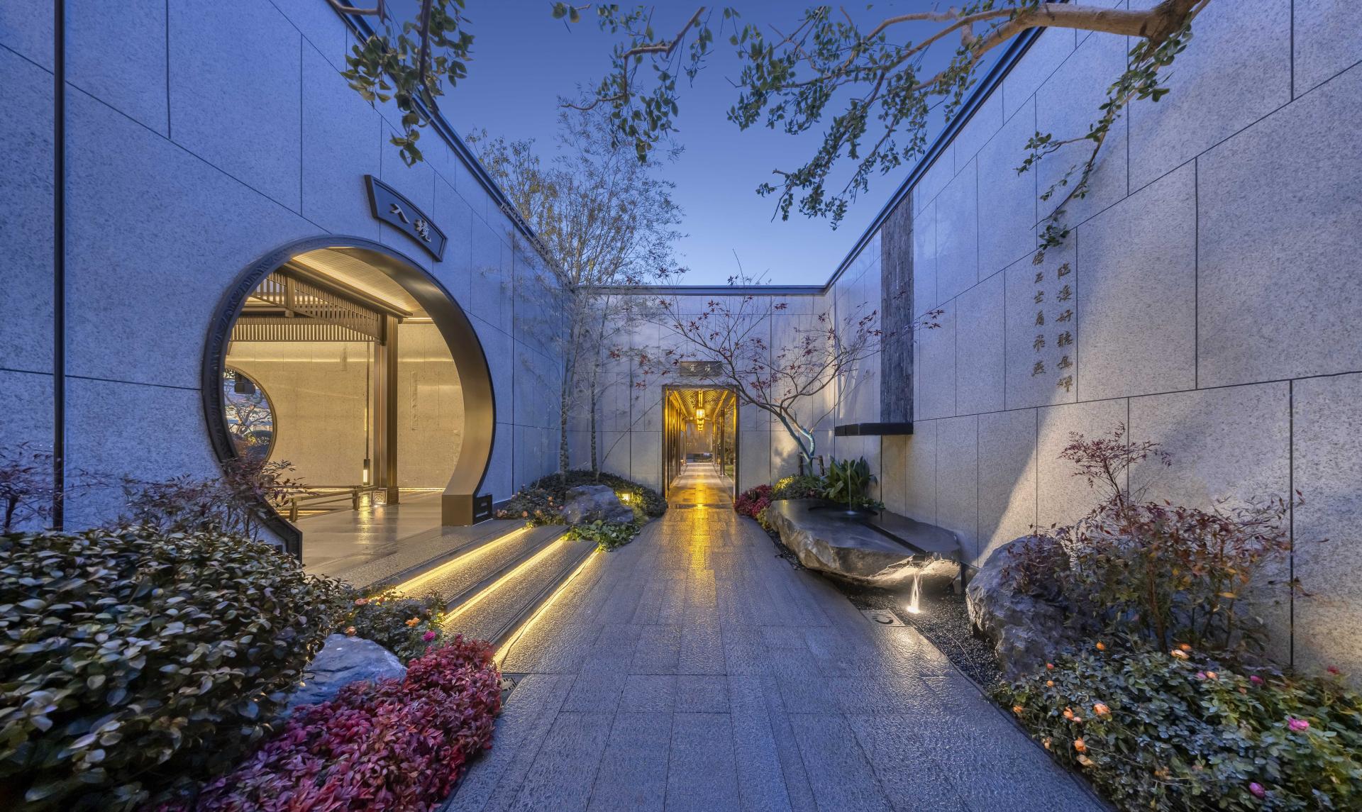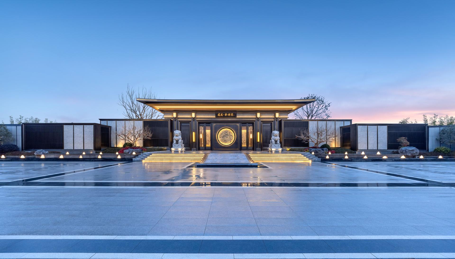 大门采用创新式中式立面风格,高低错落,尊贵大气,庄重典雅,仪式感强