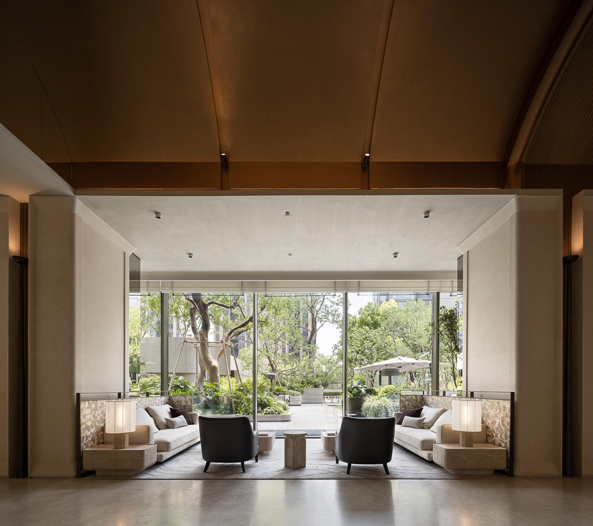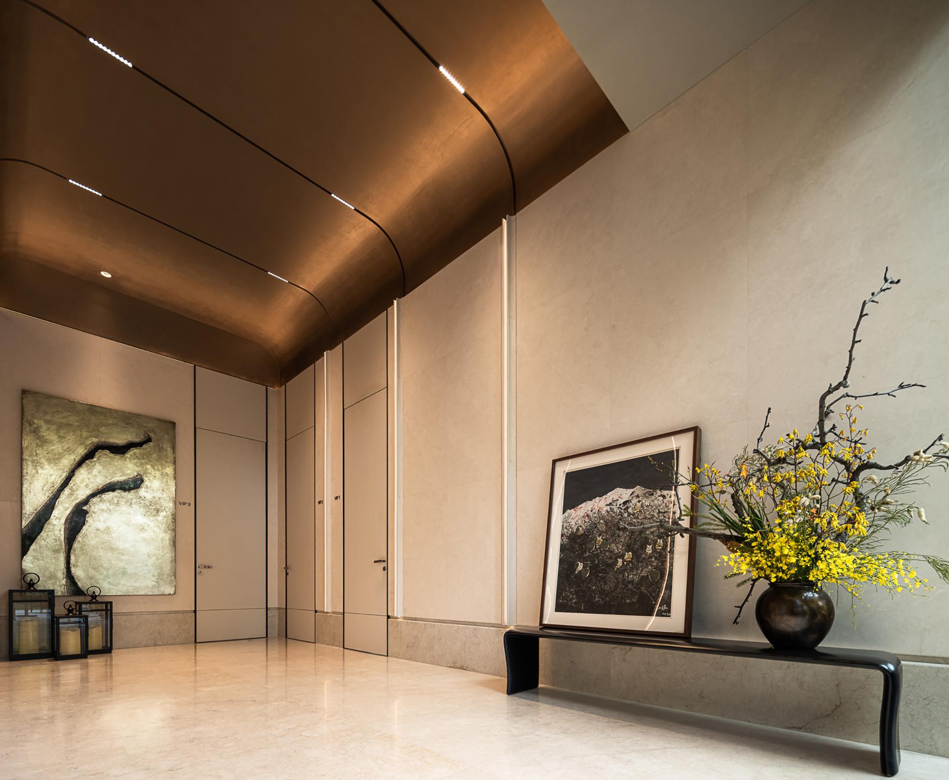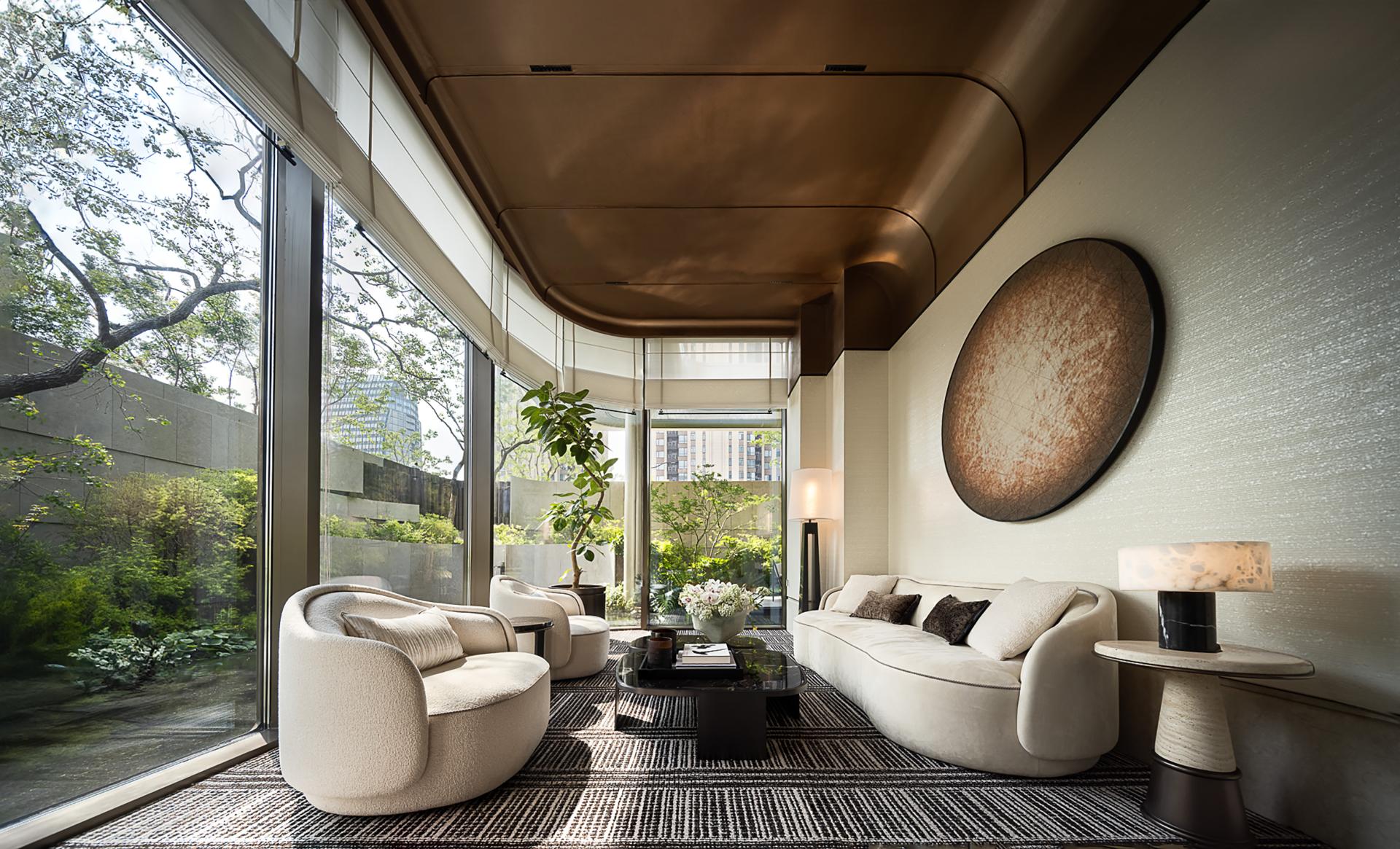 Deeply rooted in the historical gene of the "Three Rivers Intersection" in Xujiahui, the designer has extracted the philosophical conception of "aquatic all things, all things return". Based on this premise, combined with the core of life curatism, the four scenes of sowing - the tree of life, growth - boundaryless living, symbiosis - the splendor of plants and trees, and blooming - magnificent time are connected to the front hall, art gallery, exhibition area, and negotiation area, metaphorically symbolizing the natural cycle of seed breaking through the soil to the symbiosis of all things, echoing the urban temperament of Shanghai's "modern and traditional symbiosis".