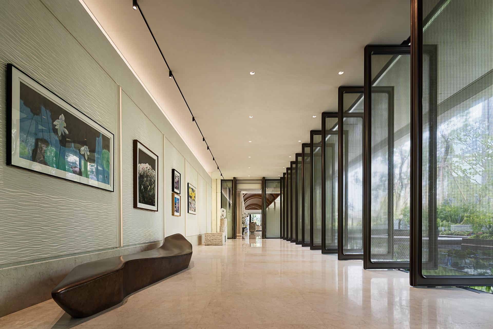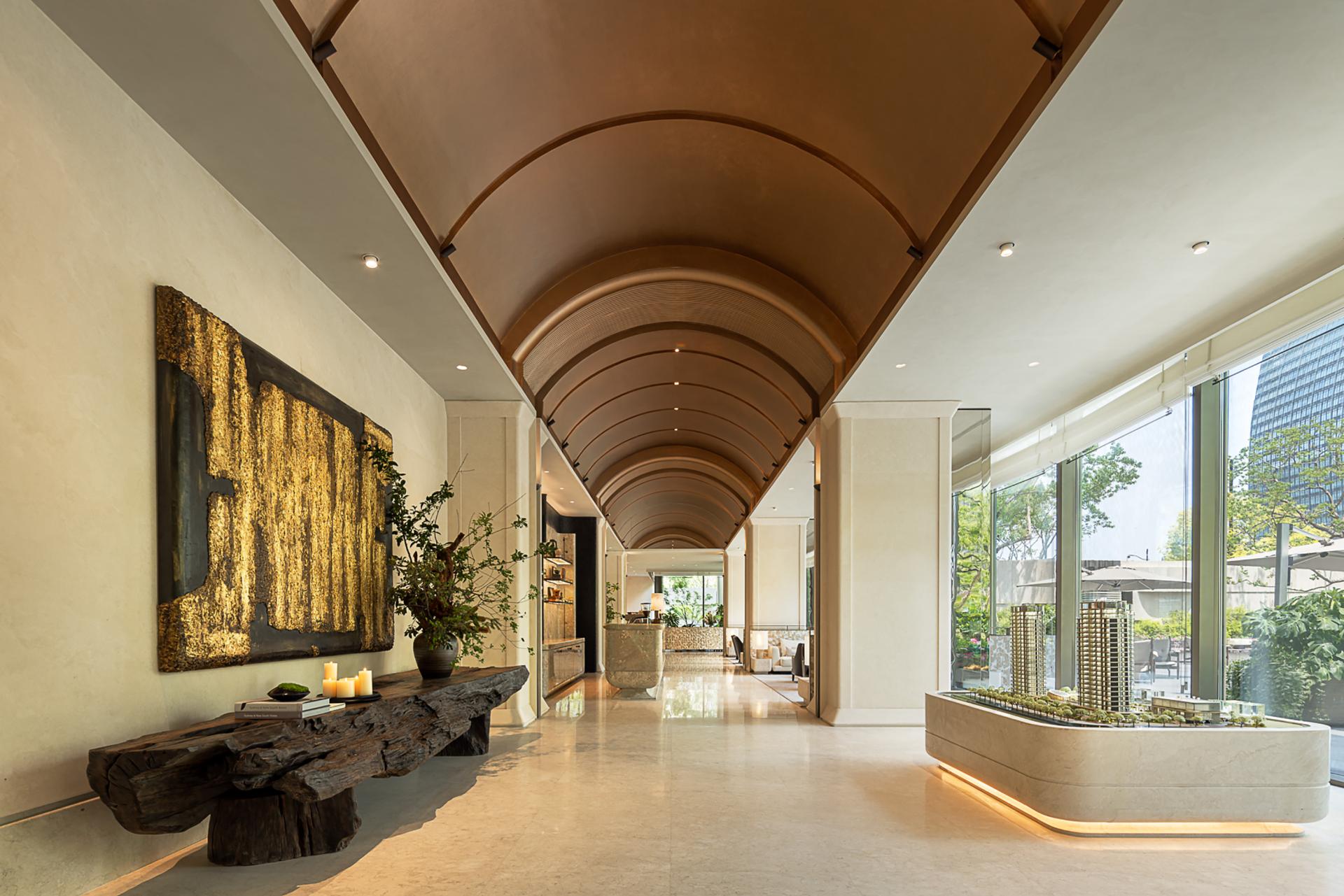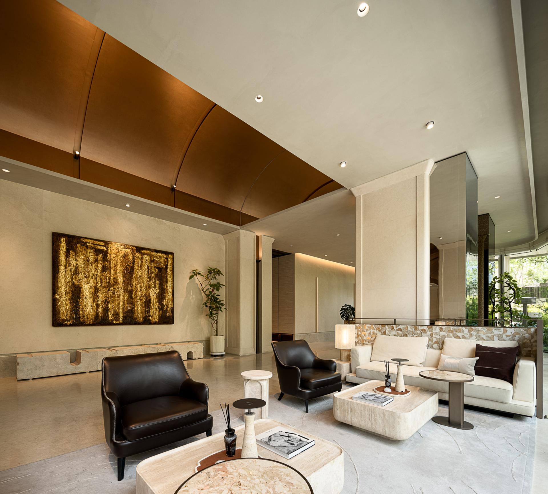 Deeply rooted in the historical gene of the "Three Rivers Intersection" in Xujiahui, the designer has extracted the philosophical conception of "aquatic all things, all things return". Based on this premise, combined with the core of life curatism, the four scenes of sowing - the tree of life, growth - boundaryless living, symbiosis - the splendor of plants and trees, and blooming - magnificent time are connected to the front hall, art gallery, exhibition area, and negotiation area, metaphorically symbolizing the natural cycle of seed breaking through the soil to the symbiosis of all things, echoing the urban temperament of Shanghai's "modern and traditional symbiosis".