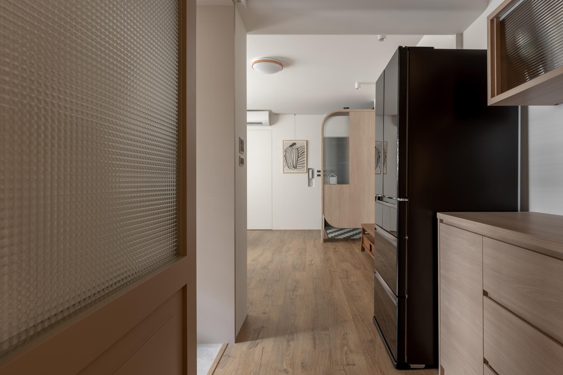 The designer believed that the most beautiful length is when a narrow space becomes a story in time. Accordingly, the design strategy centered on expanding depth, releasing daylight, and softening edges. By introducing a permeable entryway, a rotatable audiovisual core, and a semi-open kitchen, the elongated plan was transformed into a continuous scene of daily life.
