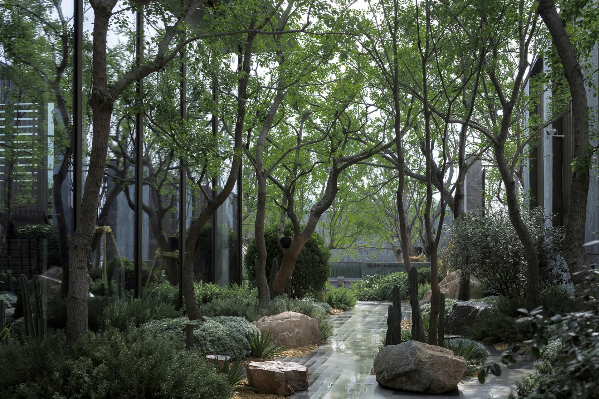 The West Courtyard prioritizes botanical excellence: an exhaustive cross-provincial selection and an uncompromising transplantation process secured a premium Xanthoceras sorbifolium whose silhouette meets the design’s compositional needs—using 'one tree per vehicle' logistics and dedicated in-transit care to preserve form.