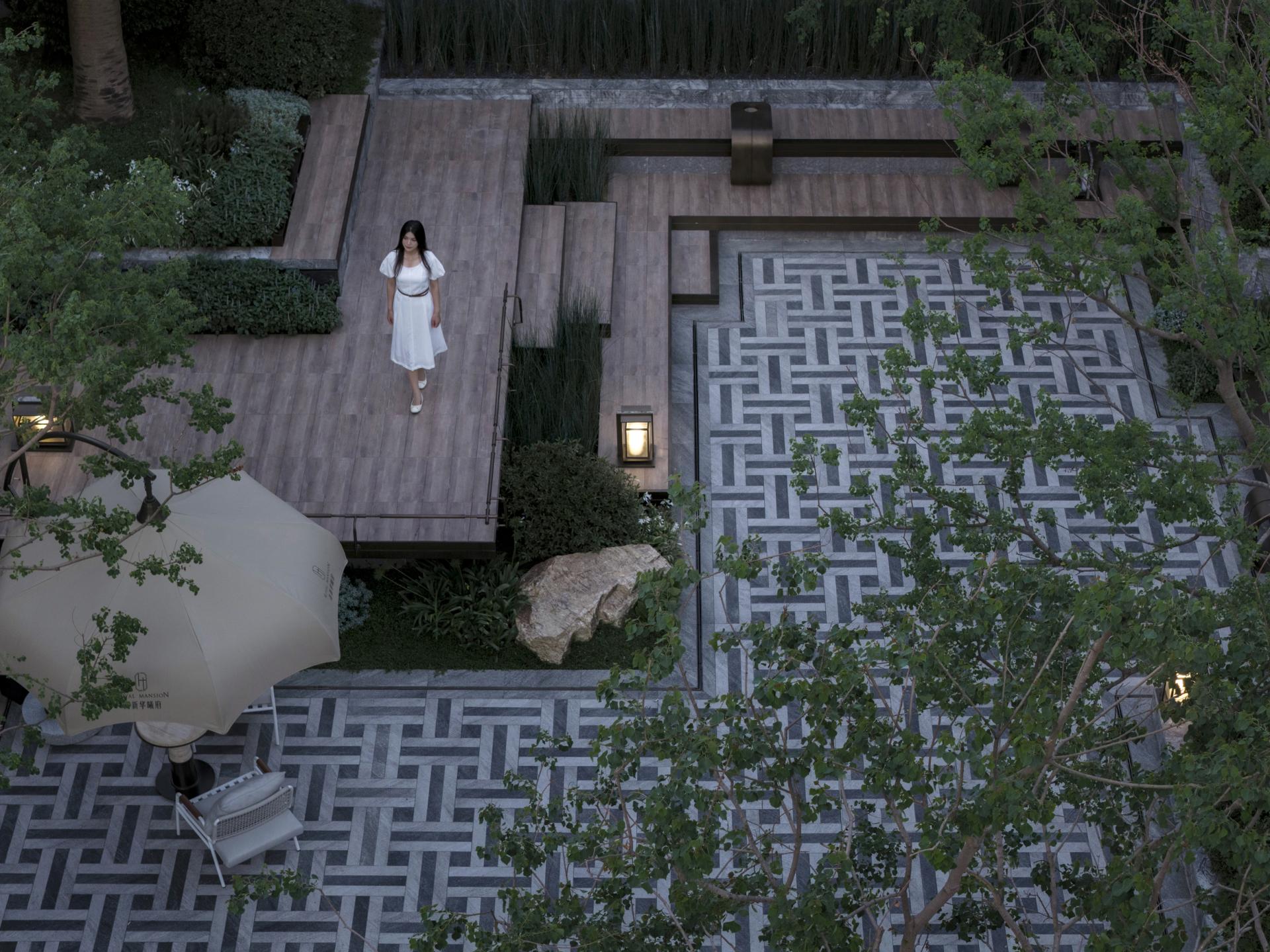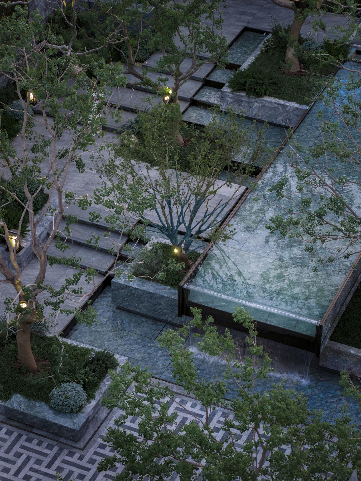Together, these strategies—symbolic geometry, artisanal reinterpretation, premium materials, precise horticulture, and layered spatial choreography—produce a refined, ceremonial yet inviting landscape that balances ritual, craft, and everyday social life.