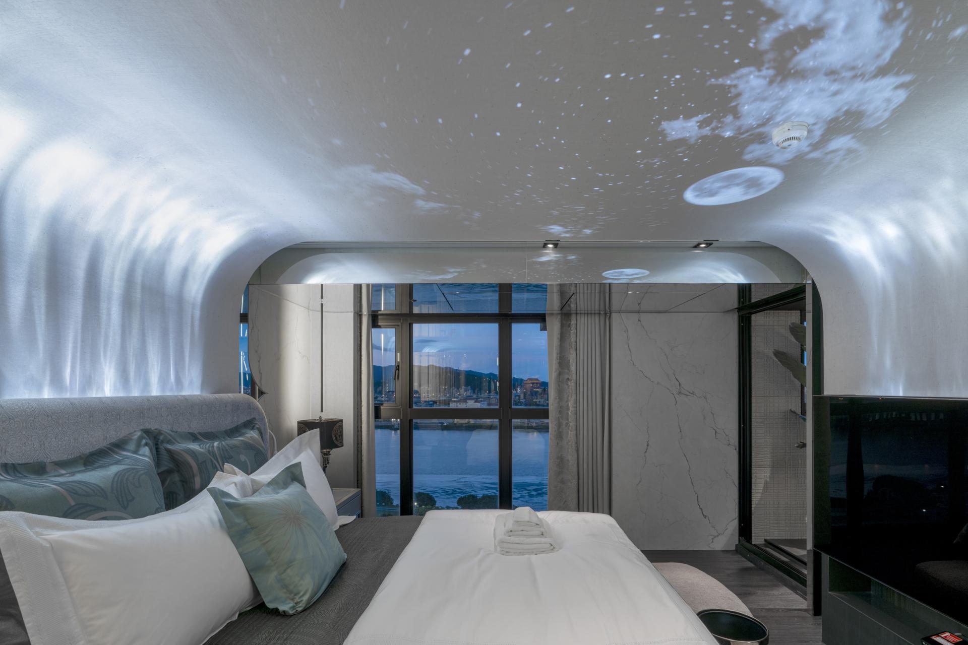 Upstairs, two bedrooms are positioned on opposite sides to ensure privacy for mother and child, incorporating modern amenities like overhead cinemas, smart lighting, and starry-sky ceilings. Complemented by the natural flow of the river, the design evokes Hemingway’s description of Paris as 'a moveable feast,' blending elegance with a sense of timeless grace.