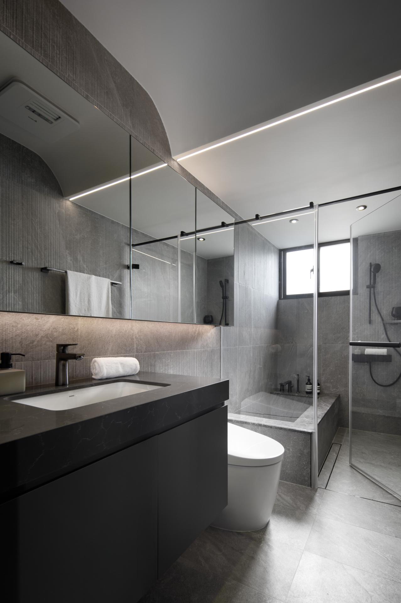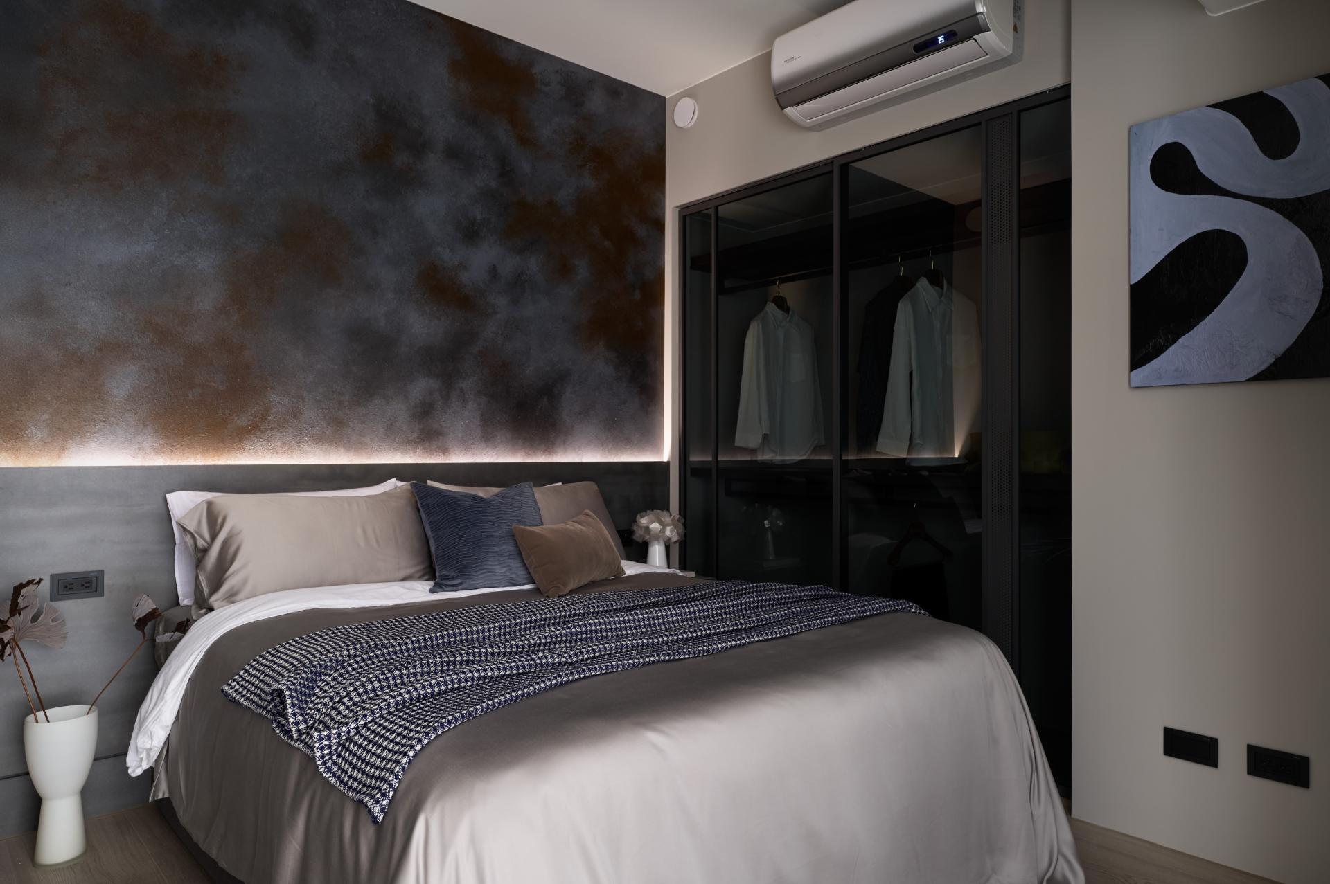 Craftsmanship is evident in bespoke finishes and subtle innovations: curved hidden doors, titanium accents, abstract plaster walls, and a slender glass display cabinet. Lighting layers, rather than traditional pendants, open the space with clarity and warmth. The child’s bedroom introduces brighter tones, echoing youthful vitality within the cohesive design.