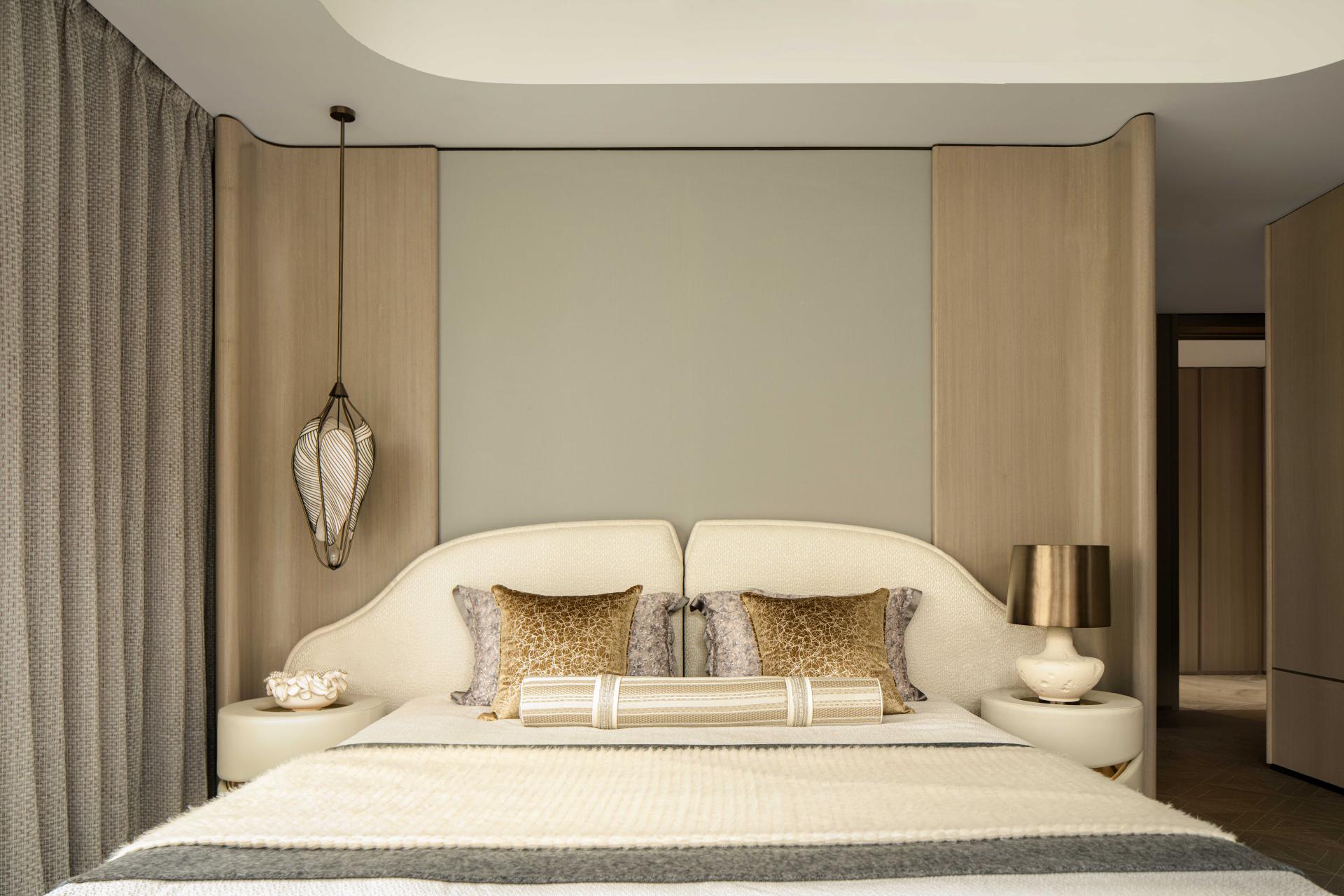 The master bedroom unfolds like an elegantly aged book scroll, steeped in the warmth and tranquility of time. The textures of fabrics compose a tactile poem on bedding, carpets, and curtains; the open layout lets outdoor greenery seep in quietly, while natural light, like a brush, outlines a bright and clear space. Without a single word, it fully captures the healing essence of dwelling.
