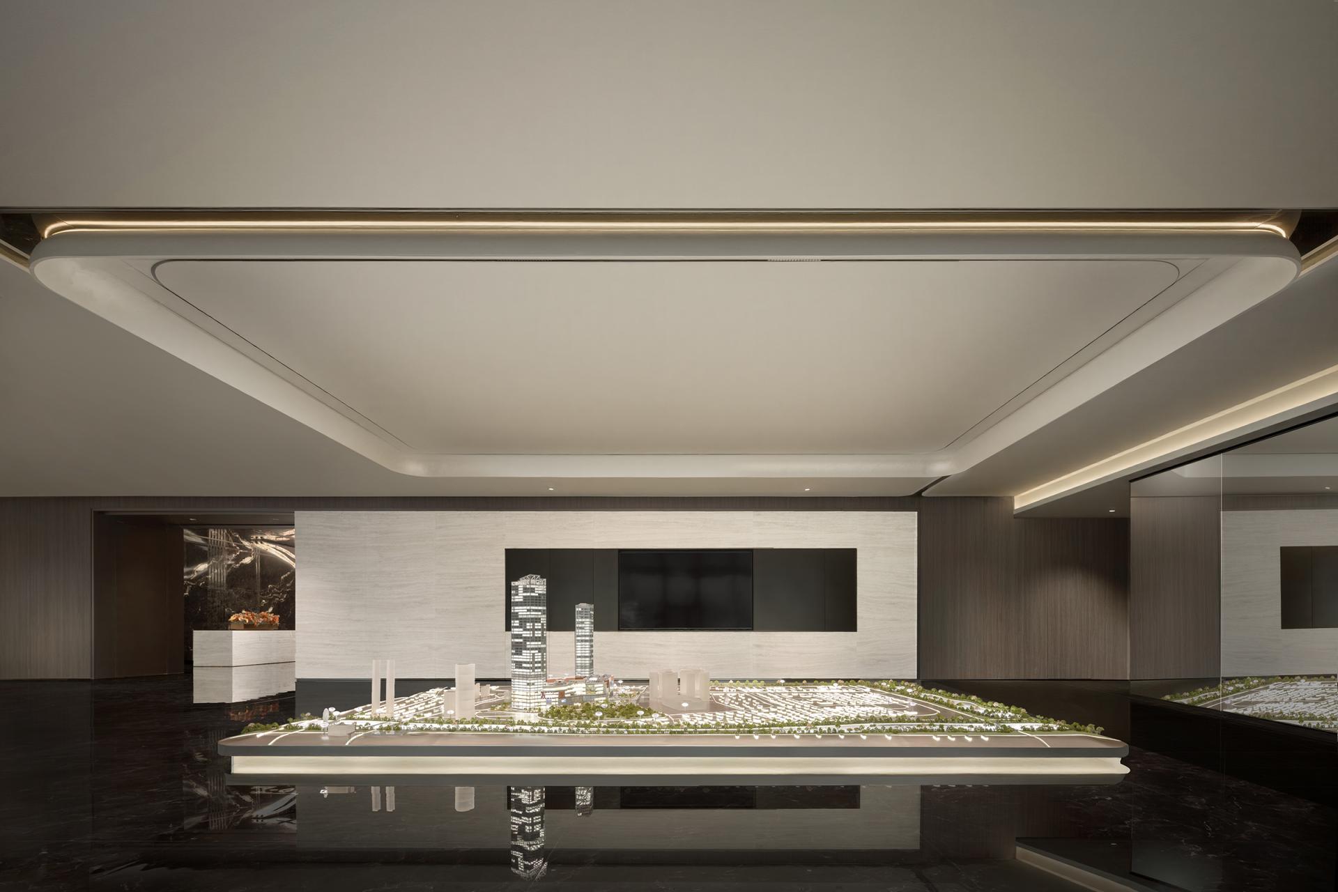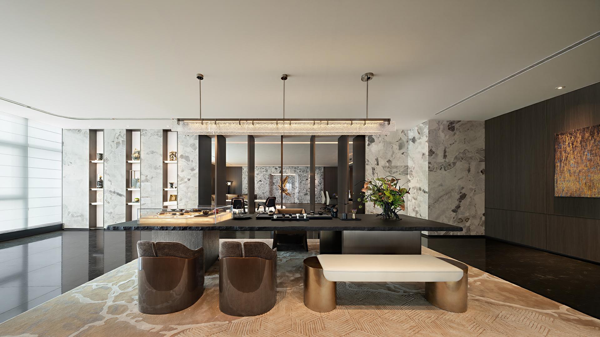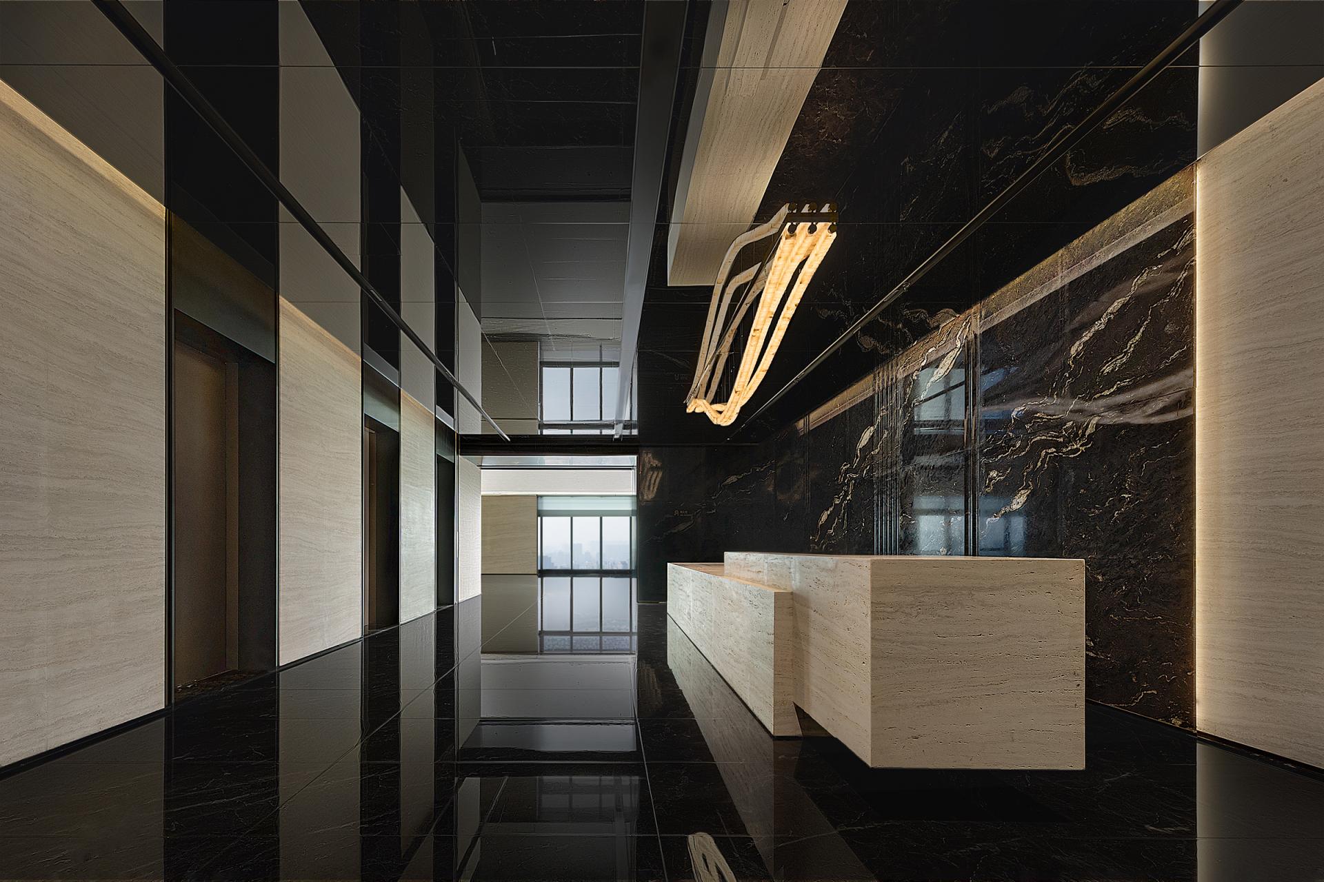 Rather than adopting a typical model of functional stacking or mono-style replication, the design draws inspiration from the Gan River’s “Twelve Hours,” transforming the sense of flow into a coherent spatial language. This approach creates distinct yet interconnected functional zones, supporting diverse office scenarios—from focused individual work to collaborative discussions and executive meetings. A sculptural chandelier in the reception area echoes the natural rhythms of the river, while the executive zone integrates Five Elements philosophy to shape a composed and strategic work environment.