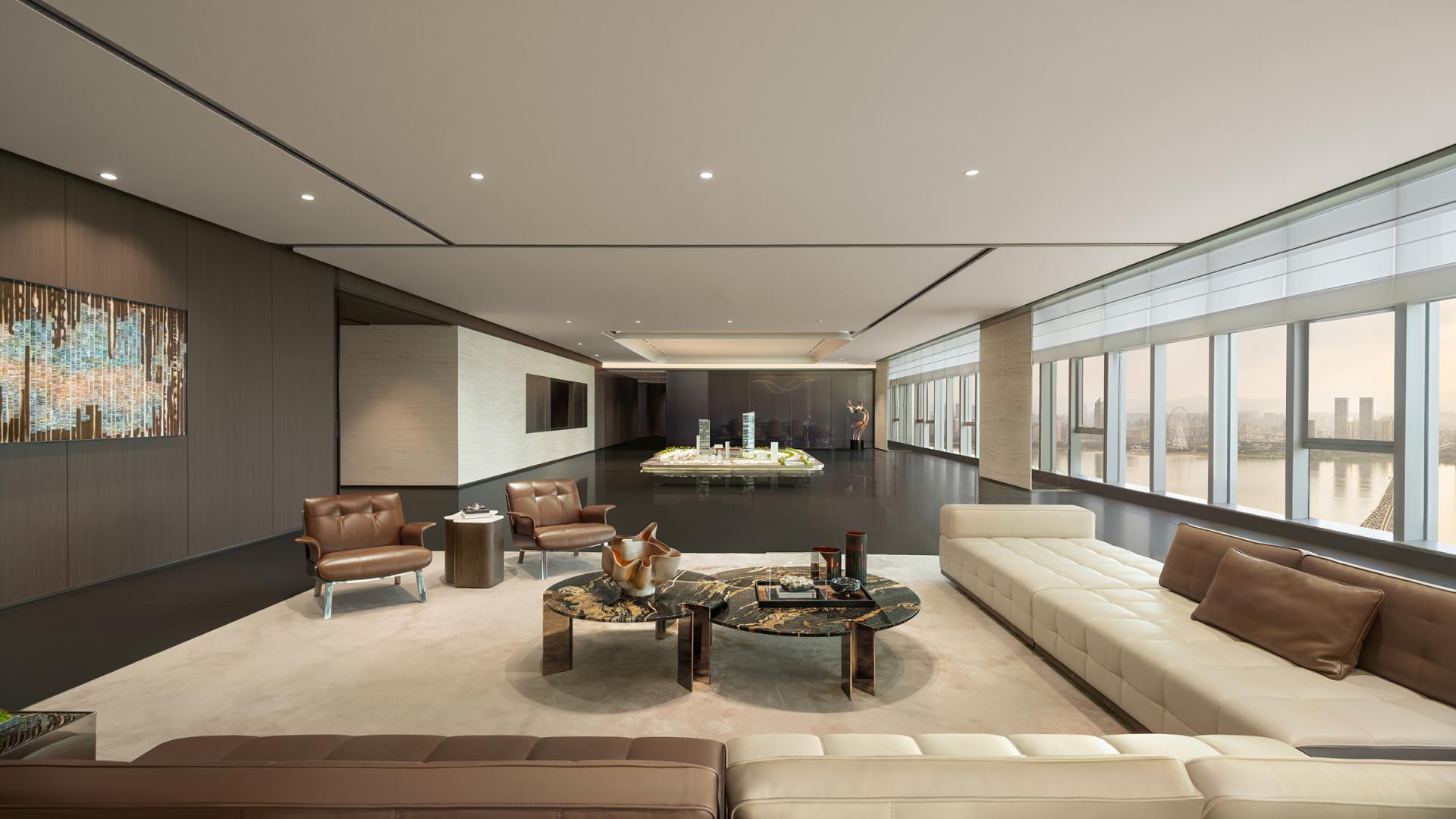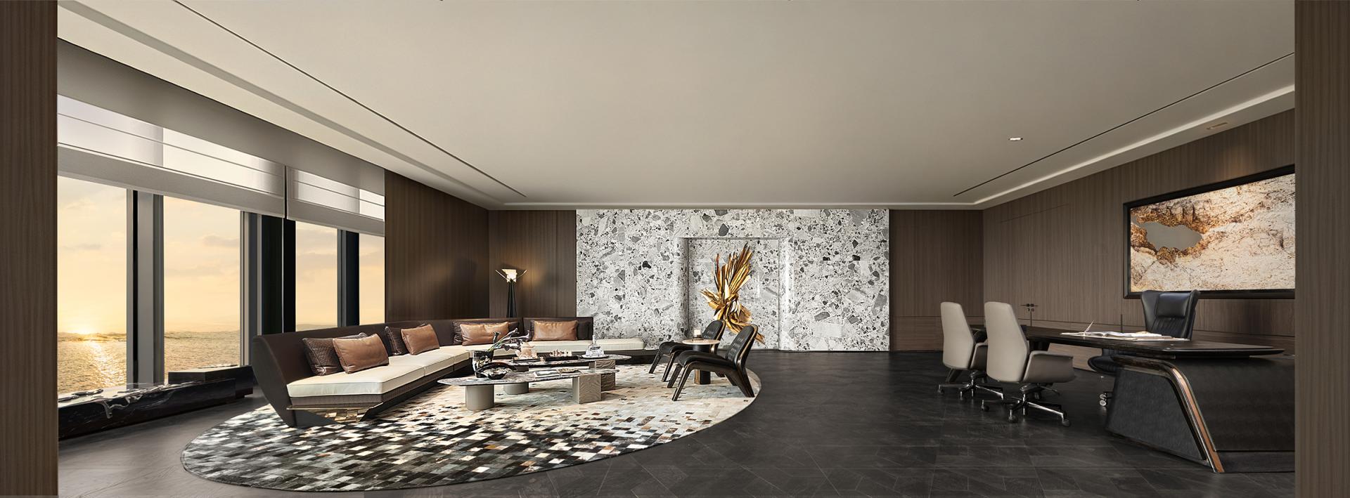 Anchored in the imagery of the Gan River, this office space translates the river’s shifting light, fluid rhythms, and cultural symbolism into a refined, contemporary workplace. It redefines the conventional office as not only a place for work but also a setting for collaboration, cultural exchange, and business hospitality. Through a dual narrative of “flowing time” and “functional space,” the design elevates the surrounding river views into a central experiential element, embodying the vision of an international-grade CBD workplace.