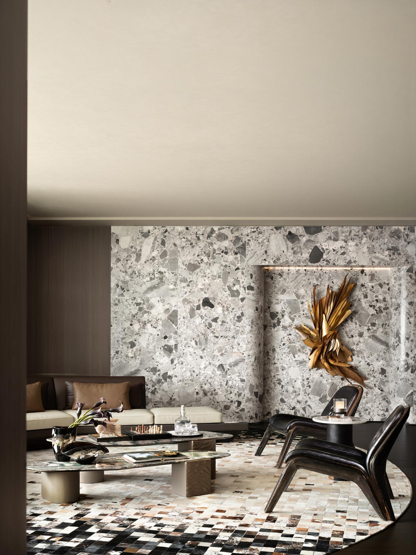 Sustainability principles guide material selection, combining recycled mother-of-pearl for artwork and horsehair carpets with water-based gilding in executive areas. These strategies reduce resource consumption without compromising quality, demonstrating how environmental responsibility can coexist with high-end office aesthetics.