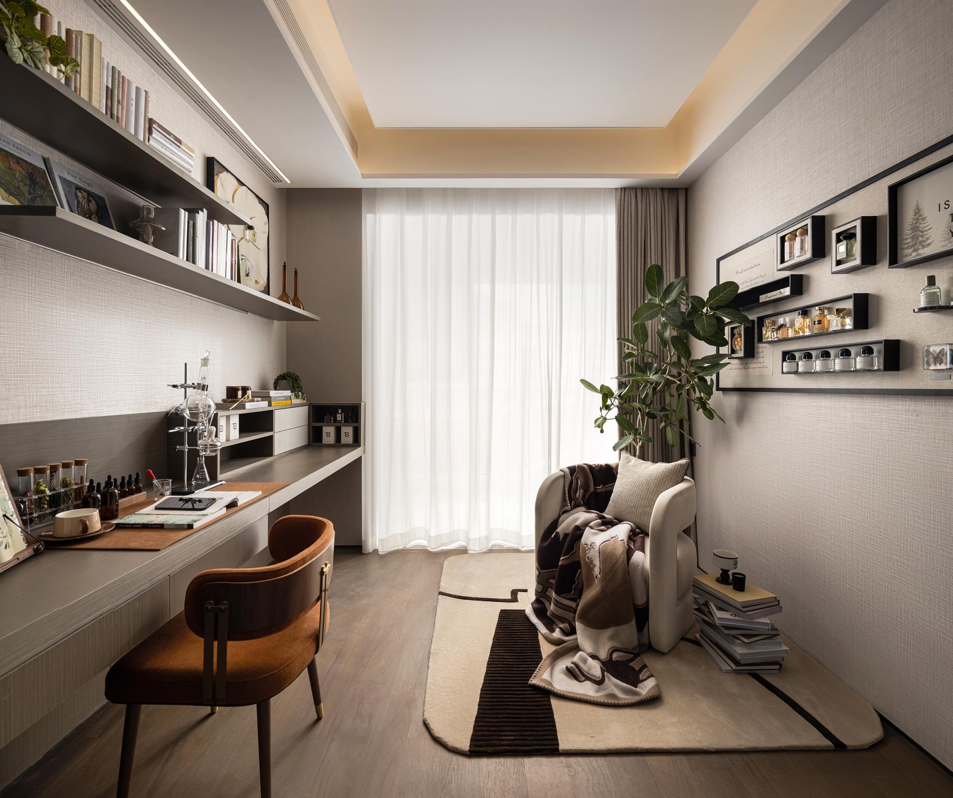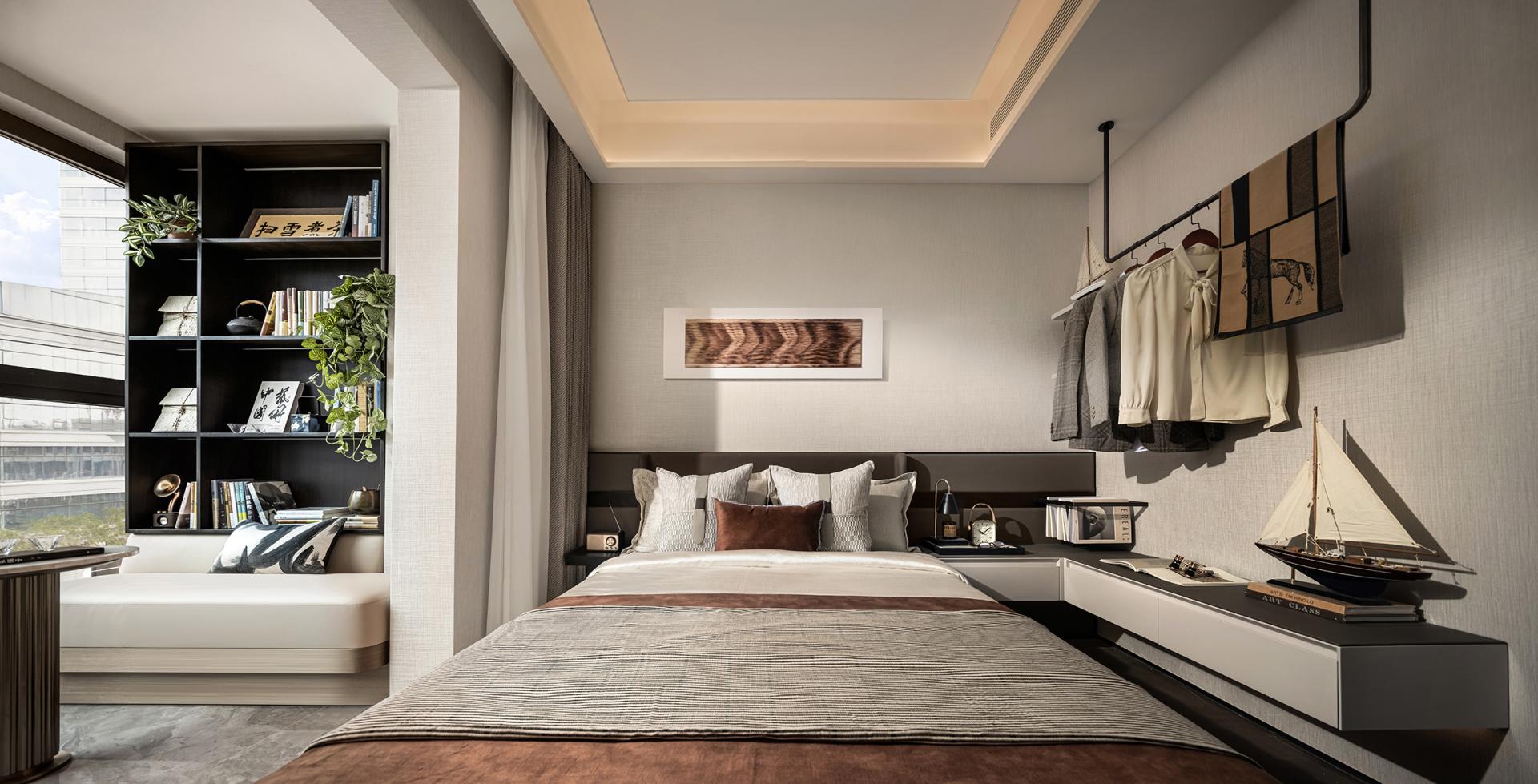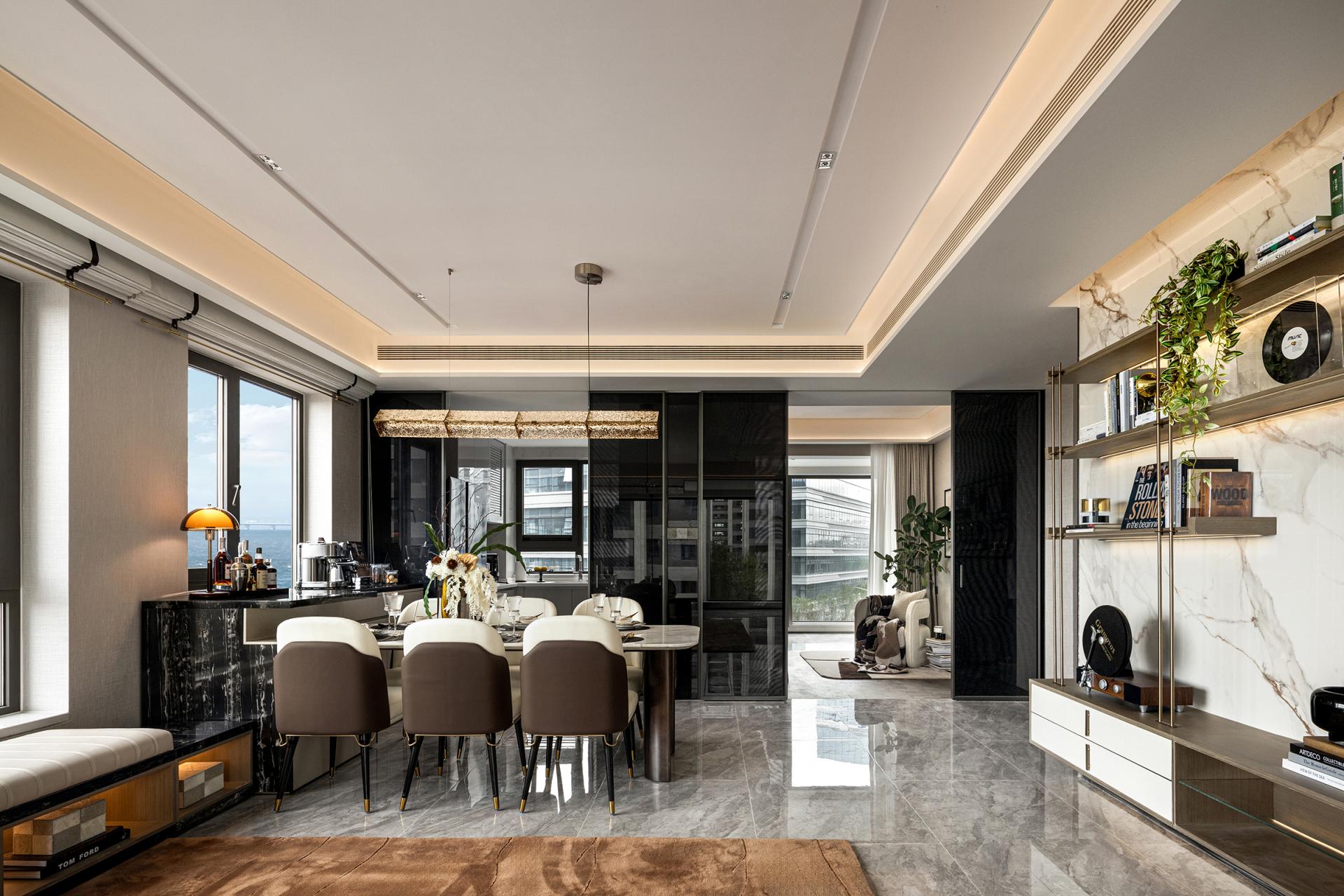 The design style is defined as Maritime Modern. The hard finishes adopt a light beige palette, incorporating sintered stone, textured wall coverings, and brown-toned wood flooring. Building on this foundation, the soft furnishings echo the city’s cultural heritage and coastal setting. Guided by the concept of “Oceanic Imprint, Holiday Sanctuary,” the interiors draw from the layered hues of sedimentary rock, the winding lines of the coastline, and the organic shapes of coral fossils. These elements are translated into lighting, furniture, artworks, and decorative accessories, using a coffee-brown base accented with champagne gold to create an elegant, luxurious, yet relaxing atmosphere.