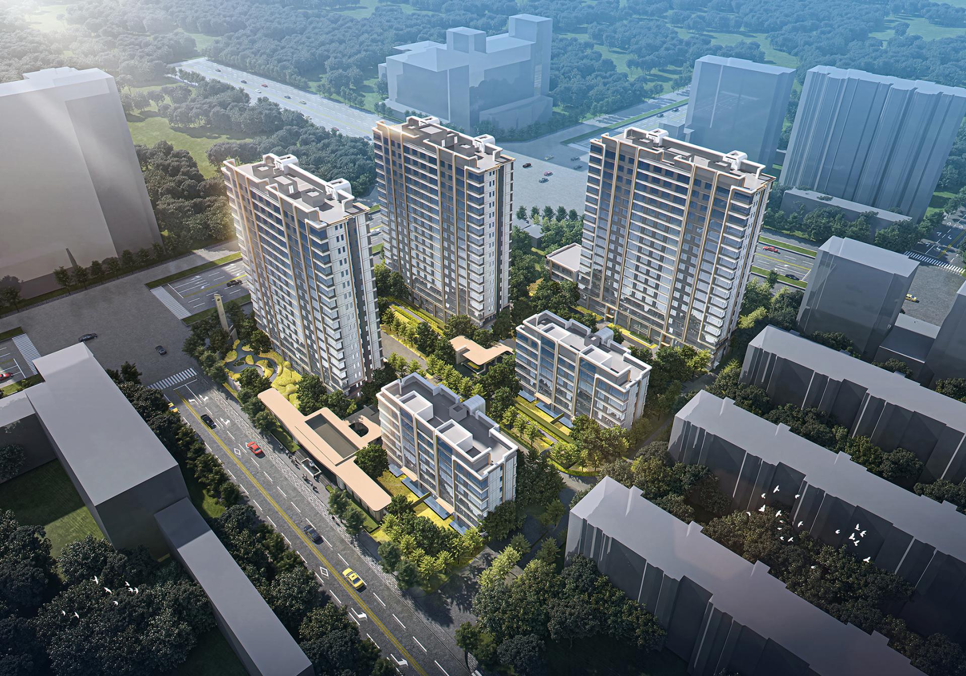 Strategically located in a mature core area of urban development, the project takes full advantage of the region's convenient transportation and concentrated resources. Drawing inspiration from the axial order of traditional Chinese architecture, the planning creates a well-organized and livable community environment through the construction of multi-courtyard spaces. Adopting an enclosed layout, 5 buildings of 6 to 18-story low-rise and mid-rise residences are arranged in a dotted pattern along the plot, forming a central landscape garden. This design ensures that every household enjoys high-quality landscape views, while promoting natural ventilation and lighting within the community, reducing energy consumption from artificial lighting and air conditioning, and embodying the concept of green architecture.