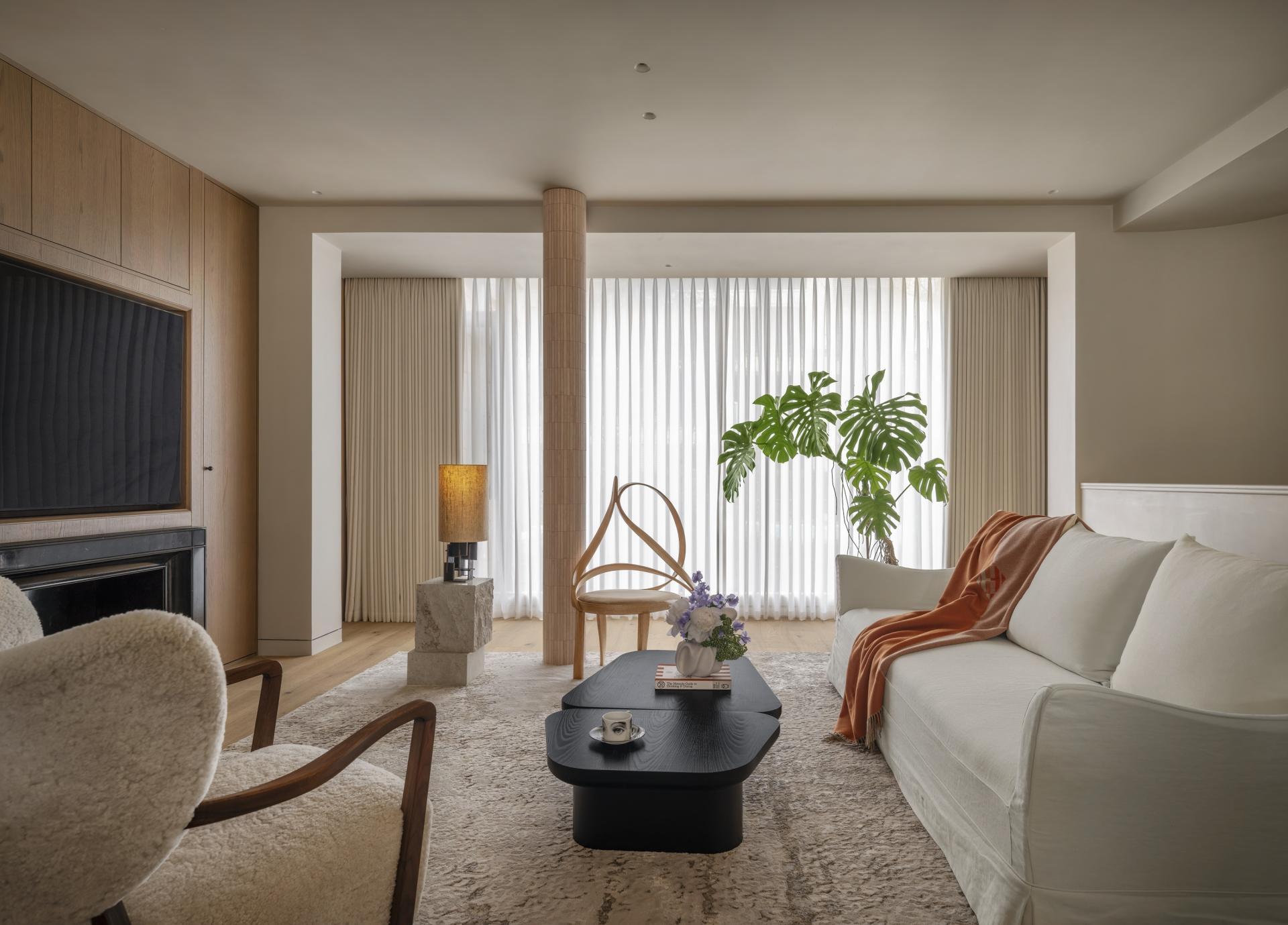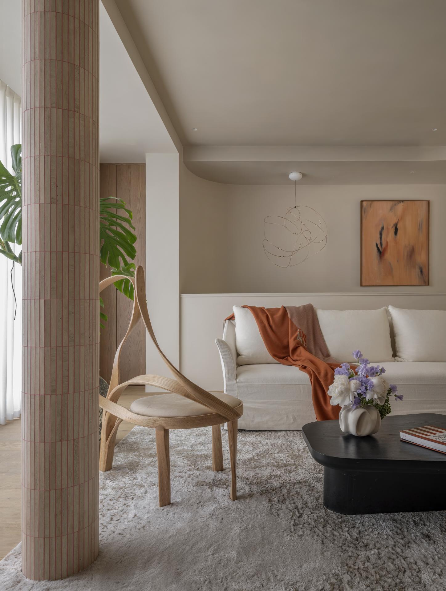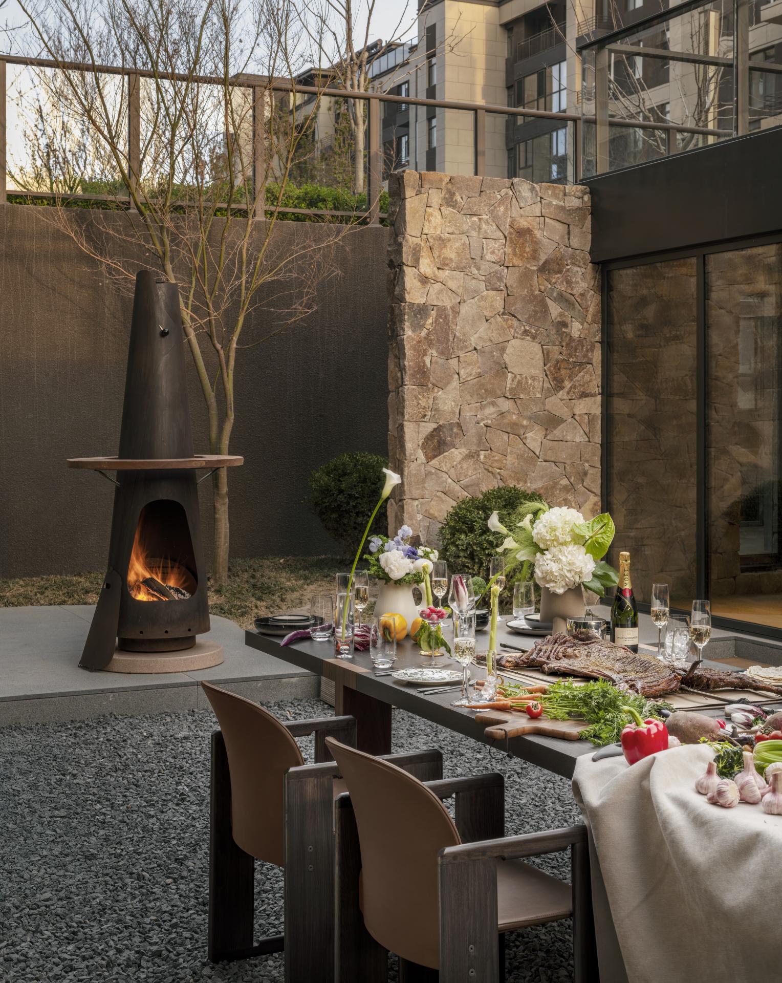 The space takes the core philosophy of “Symbiosis of Order and Vitality,” transcending the homogenized paradigm of traditional high-end residences by integrating the classical elegance of Qi culture with contemporary aesthetics into architectural folds, crafting a “private sanctuary” that harmonizes spirituality with lived experience. Spatial storytelling dissolves boundaries to achieve multidimensional connectivity: black railings maintain visual permeability through dotted-line structures, while a raised atrium design enhances spatial hierarchy and fosters psychological convergence, where every functional element in the open layout serves as both a utilitarian object and an “active witness” to emotional memory. Materiality emphasizes “the warmth of time”: a raw-stone sink retains natural imperfections, weathered wooden furniture echoes the patina of age, and international brands like GUBI tables and Vitra chairs juxtapose with locally crafted pieces to embody “humble abundance”—this interplay of flaw and craftsmanship articulates the profound dialogue between human artifice and nature. The balance of rule and rebellion manifests in rigorous planning punctuated by boundary-breaking details: rose-red grout columns and an African-inspired sculptural furnace inject human-centric elasticity, resonating with young entrepreneurs’ dual demands for discipline and dynamism. The vitality of daily life is elevated into ritual: fireplace flames, courtyard barbecues, and curated plantings intertwine, bond human interaction with natural empathy, imbuing the mundane with cultural depth. The project redefines luxury living through warmth and philosophy, standing as both an innovative benchmark in Chinese contemporary design and a tangible vessel for spiritual dwelling.