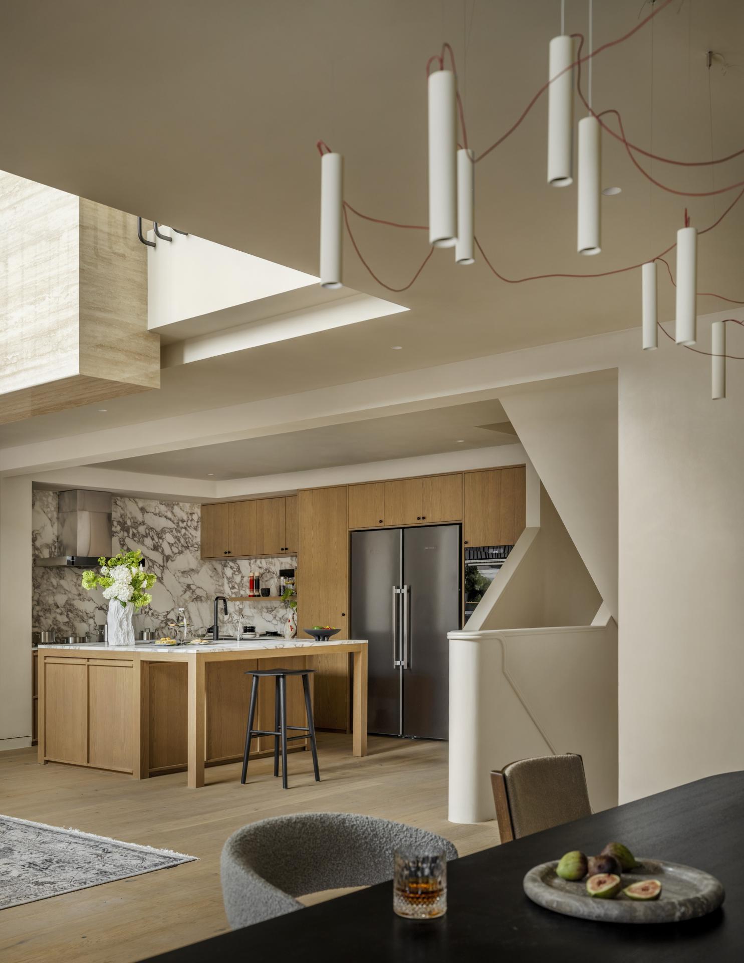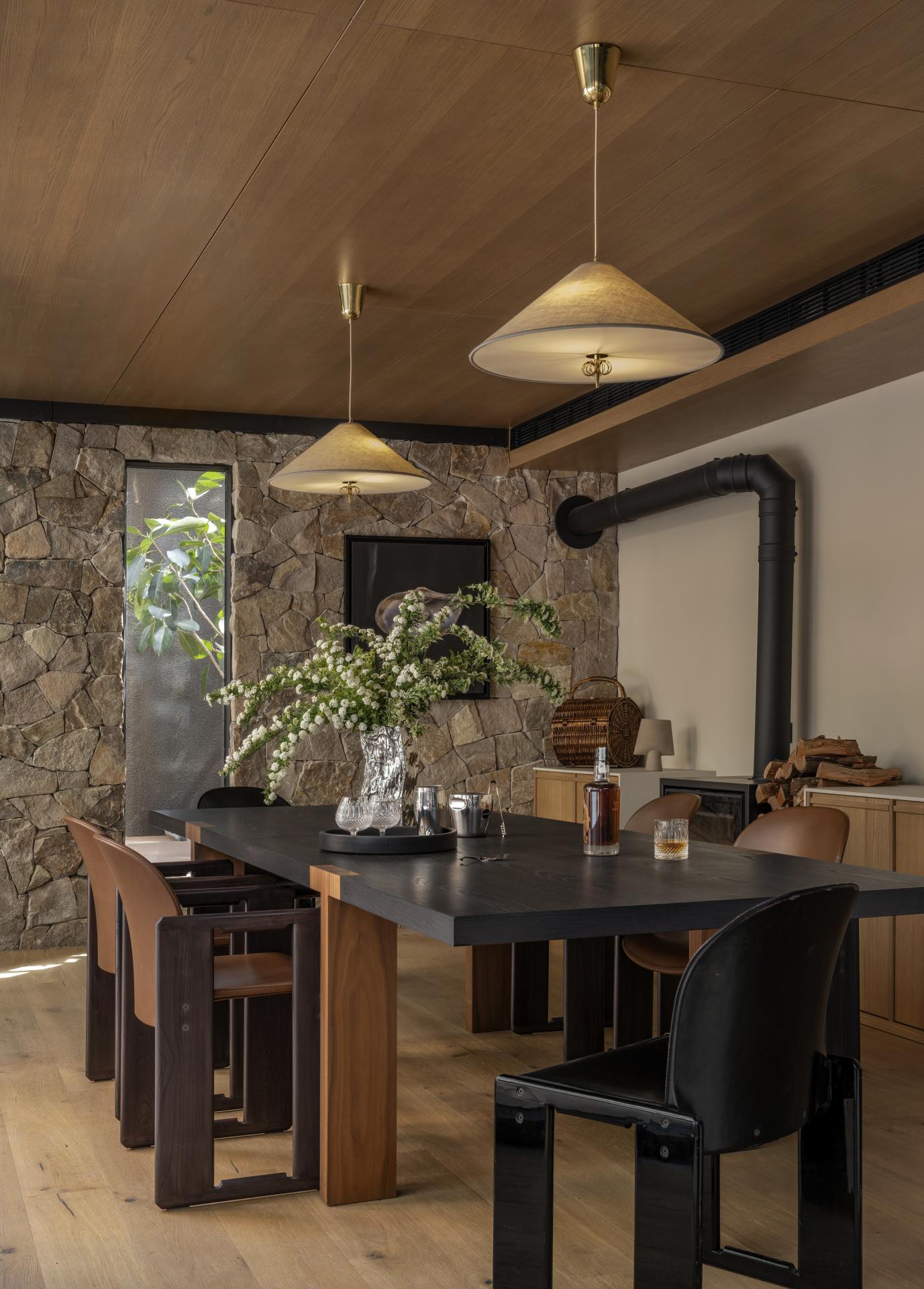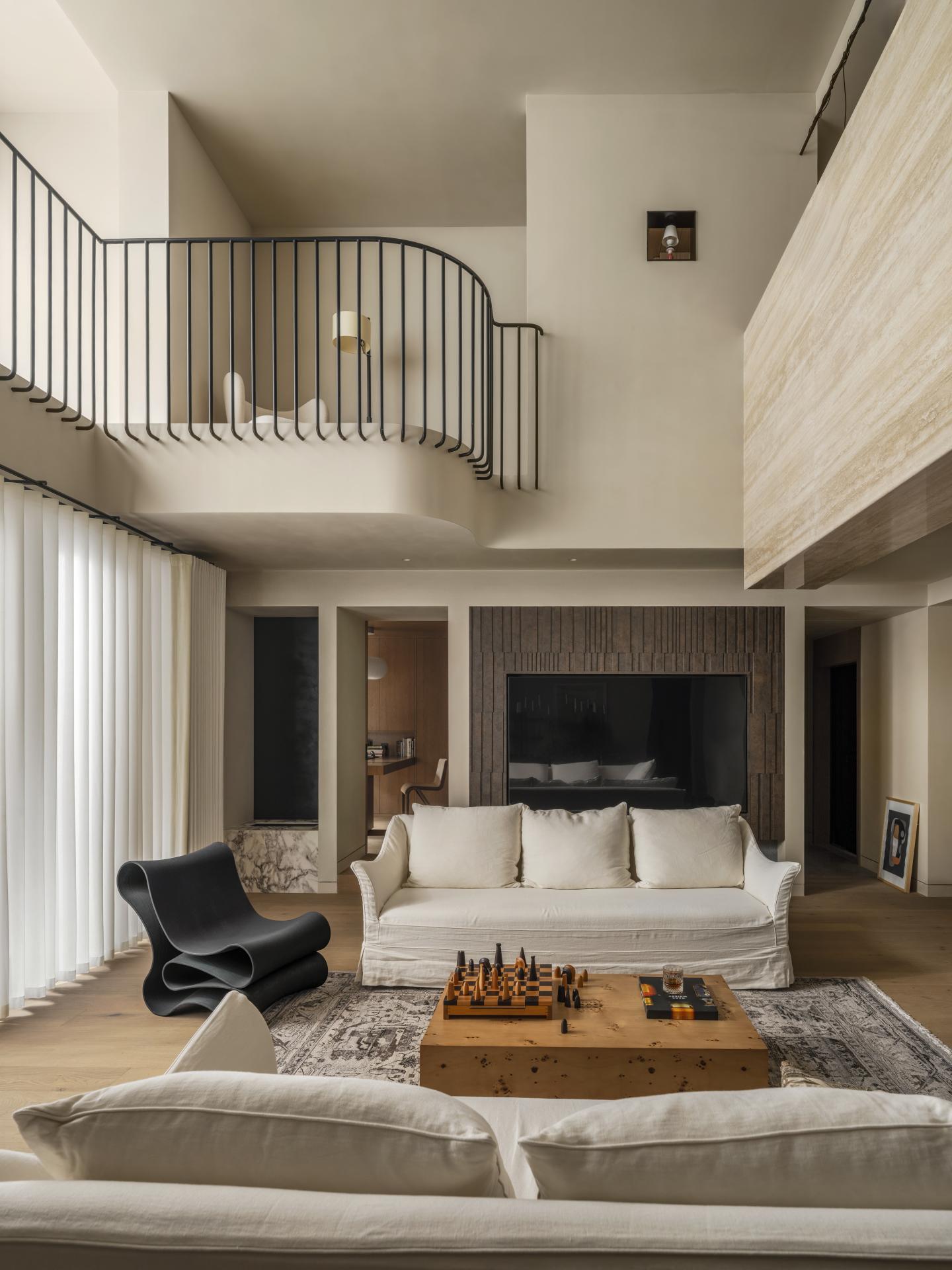 The space takes the core philosophy of “Symbiosis of Order and Vitality,” transcending the homogenized paradigm of traditional high-end residences by integrating the classical elegance of Qi culture with contemporary aesthetics into architectural folds, crafting a “private sanctuary” that harmonizes spirituality with lived experience. Spatial storytelling dissolves boundaries to achieve multidimensional connectivity: black railings maintain visual permeability through dotted-line structures, while a raised atrium design enhances spatial hierarchy and fosters psychological convergence, where every functional element in the open layout serves as both a utilitarian object and an “active witness” to emotional memory. Materiality emphasizes “the warmth of time”: a raw-stone sink retains natural imperfections, weathered wooden furniture echoes the patina of age, and international brands like GUBI tables and Vitra chairs juxtapose with locally crafted pieces to embody “humble abundance”—this interplay of flaw and craftsmanship articulates the profound dialogue between human artifice and nature. The balance of rule and rebellion manifests in rigorous planning punctuated by boundary-breaking details: rose-red grout columns and an African-inspired sculptural furnace inject human-centric elasticity, resonating with young entrepreneurs’ dual demands for discipline and dynamism. The vitality of daily life is elevated into ritual: fireplace flames, courtyard barbecues, and curated plantings intertwine, bond human interaction with natural empathy, imbuing the mundane with cultural depth. The project redefines luxury living through warmth and philosophy, standing as both an innovative benchmark in Chinese contemporary design and a tangible vessel for spiritual dwelling.