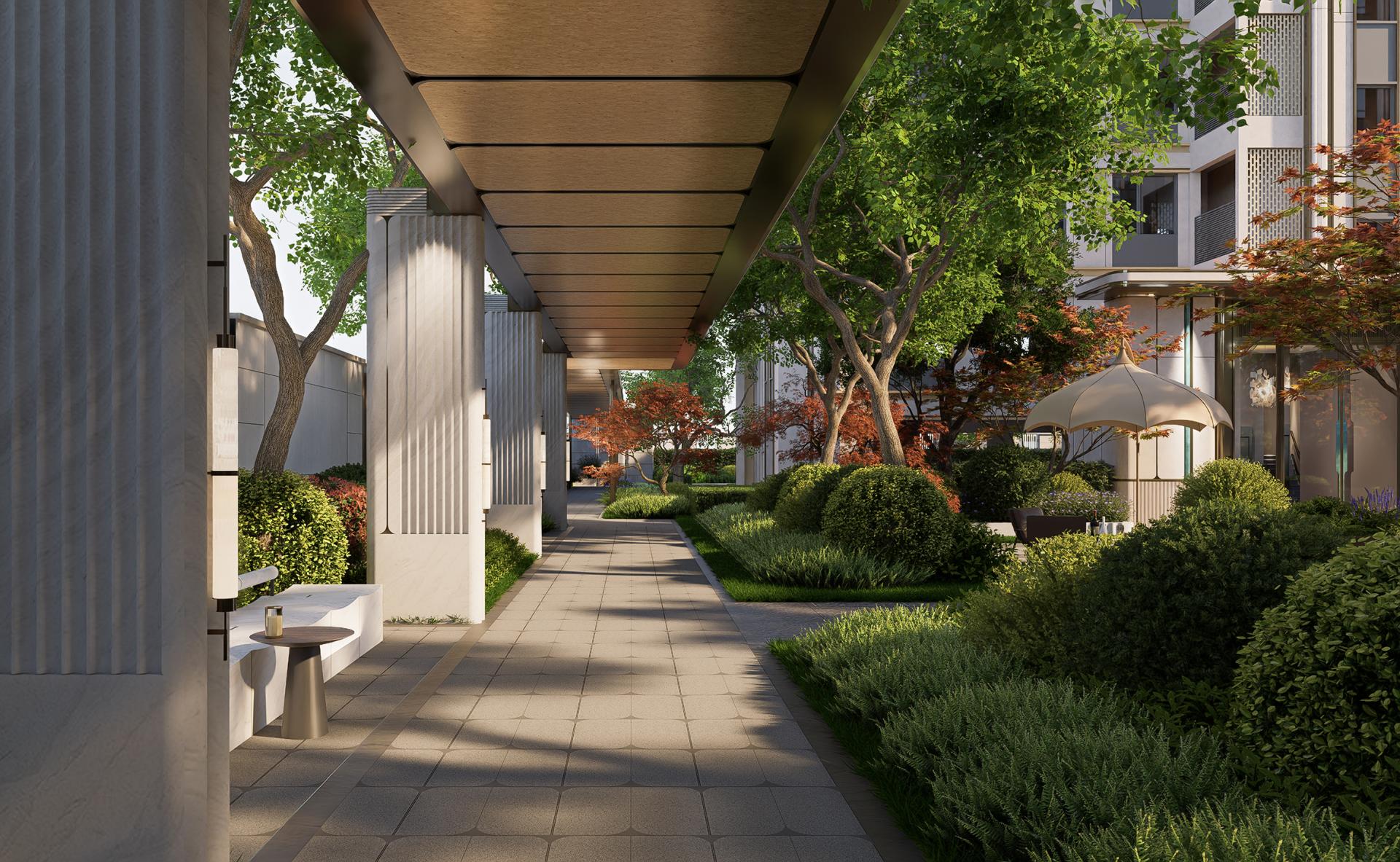 With "spatial purity + efficient resource utilization" as the principle, a low-density planning system is constructed. It adopts low plot ratio control, with only 4 buildings arranged in a grid layout; the "one building, one unit type" design meets the needs of diverse families. At the same time, sufficient landscape space is reserved to achieve "building-landscape" complementarity. Six-tier homecoming ritual sequence is planned, with core nodes deeply connected to building entrances, forming an uninterrupted homecoming experience. Clear principles for landscape plant configuration are defined to avoid impacts on building structures; moreover, landscape scenes and building window openings form opposite scenery, maximizing the use of landscape resources.