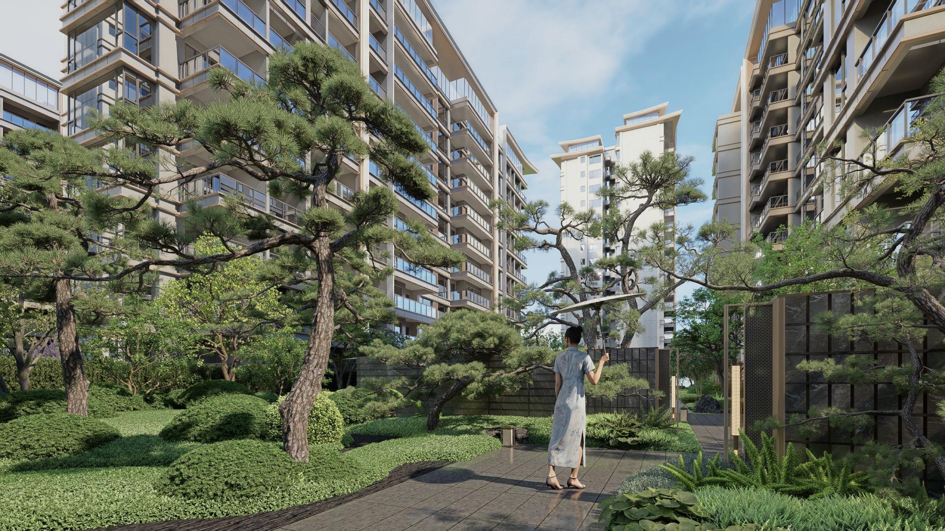 Situated in Meishan, the hometown of the legendary Su Dongpo, the landscape design draws inspiration from its rich historical and cultural heritage. The concept, "A Mansion with Song Dynasty Elegance, A Courtyard of Cultural Refinement," is realized through references to the layout of the San Su Shrine, inheriting the ritualistic spirit of Eastern art. Externally, a welcoming gatehouse and a cascading water feature wall create a highly recognizable space. Internally, elements like a central axis, symmetrical layouts, and sunken gardens reinforce the ceremonial journey home. The design navigates the site's elevation changes with multi-dimensional mountain-water courtyards, crafting diverse landscape experiences. The design draws inspiration from the "Four elegances of the Song dynasty," blending the dynasty's spiritual ethos with scholarly activities, reinterpreting Song-style elements through a modern lens. From "setting the tone" and "infusing the soul" to "revitalizing the form", scenic motifs from Su Dongpo's poetry are extracted, employing an elegant color palette to evoke Eastern aesthetics and recreate the Song Dynasty's classic elegance. The layout follows a clear "one core, one ring, two axes, triple-courtyard compound, eight gardens" structure:
