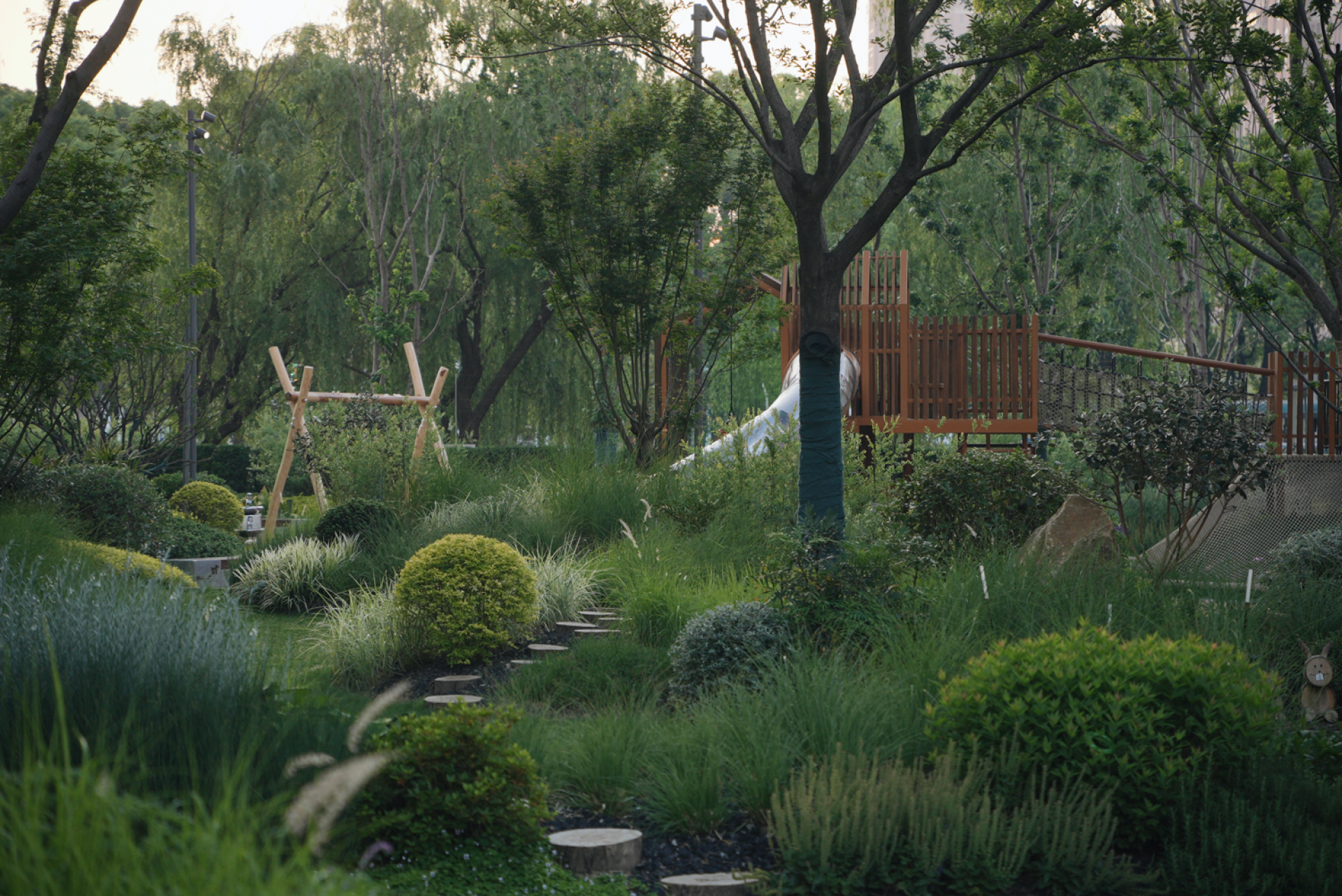 In addition, the design deeply embeds local cultural symbols, integrating the simple artistic conception and implicit aesthetics of Jiangnan water towns into the details. It outlines a narrative space through a formalized landscape language, allowing traditional charm to flow naturally in modern scenes and creating a high-quality human settlement landscape that combines cultural depth and contemporary vitality.