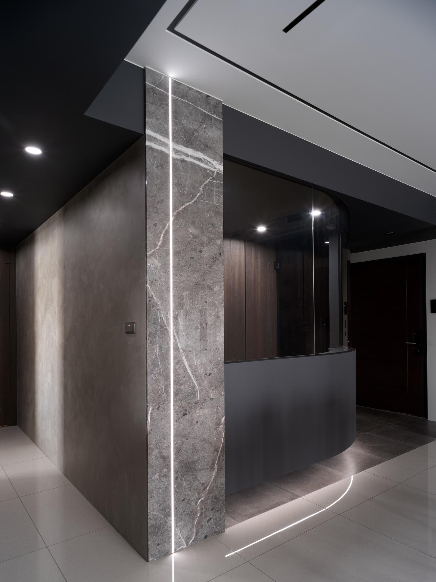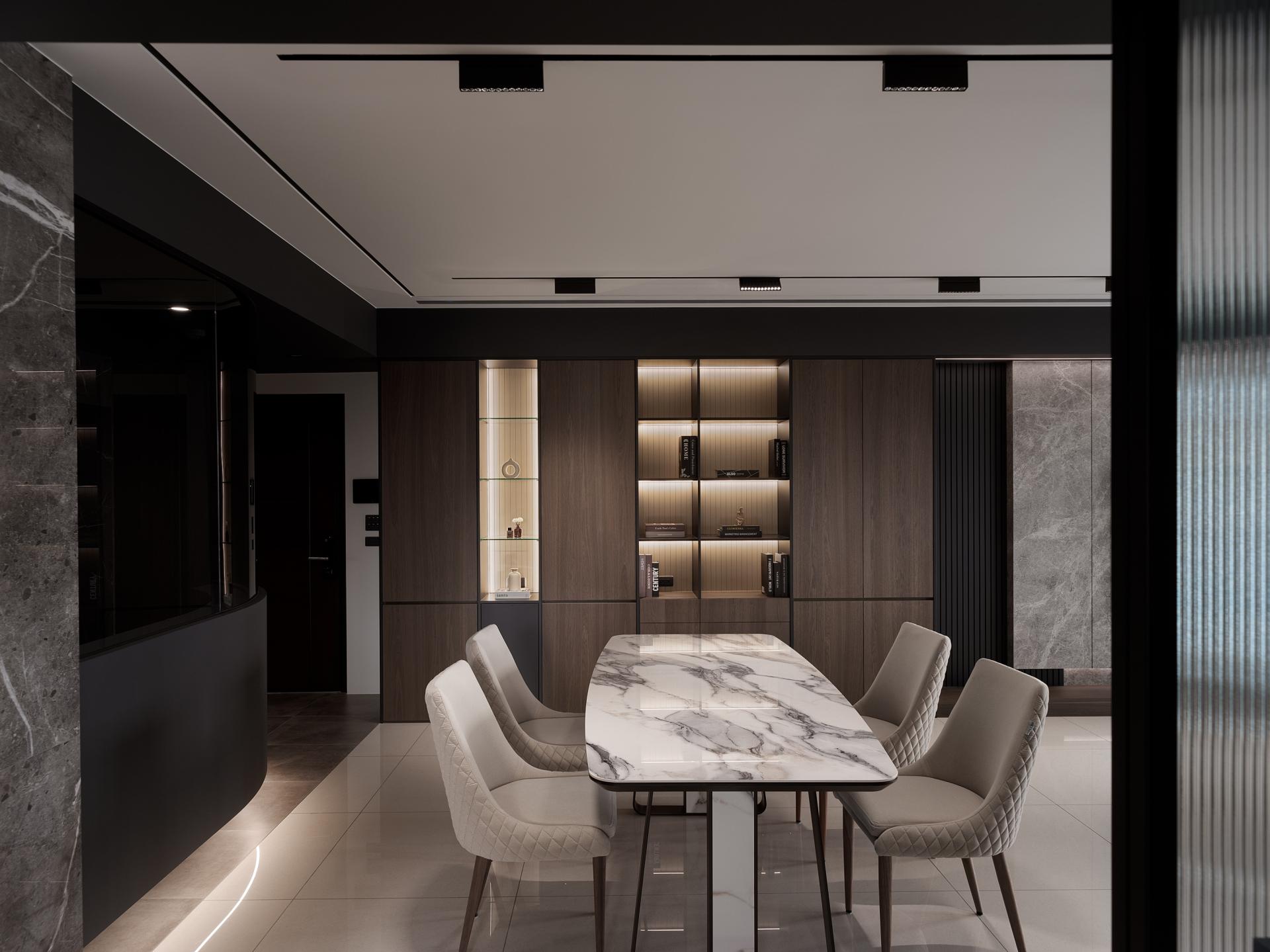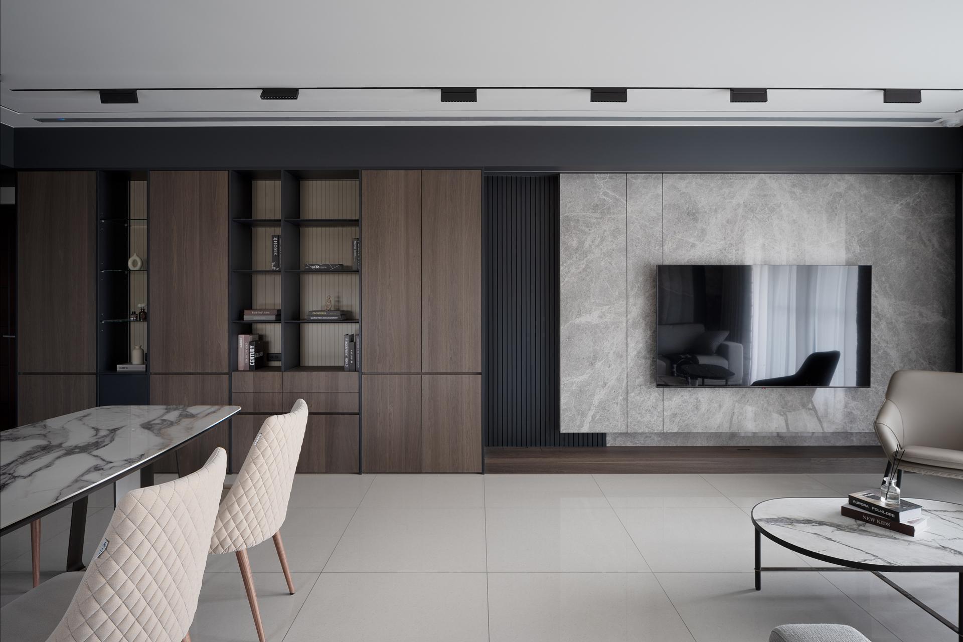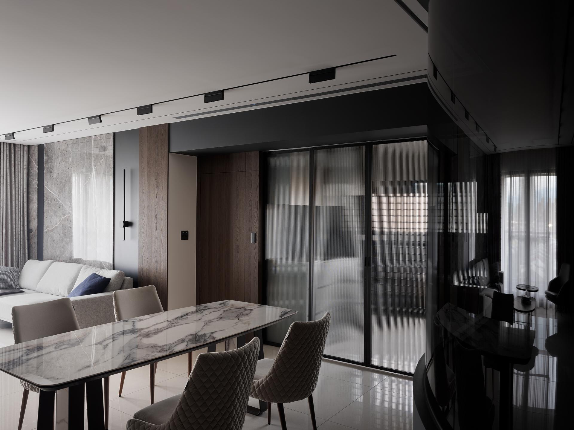 The homeowners are a young couple with two daughters. The social area serves as the core for gathering and learning. The husband prefers a calm, minimalist style expressed through linear forms, with restrained use of color and avoidance of large curved shapes. In response, the designer centered the concept on “integrating functions and releasing scale,” complemented by a controlled sense of luxury suitable for daily life. The entrance and storage needs were considered together; the composition was ordered through proportional use of materials, and transparency of light and shadow was carefully managed, allowing the social area to remain steady yet fluid, while the private area was subtly divided through color tone.