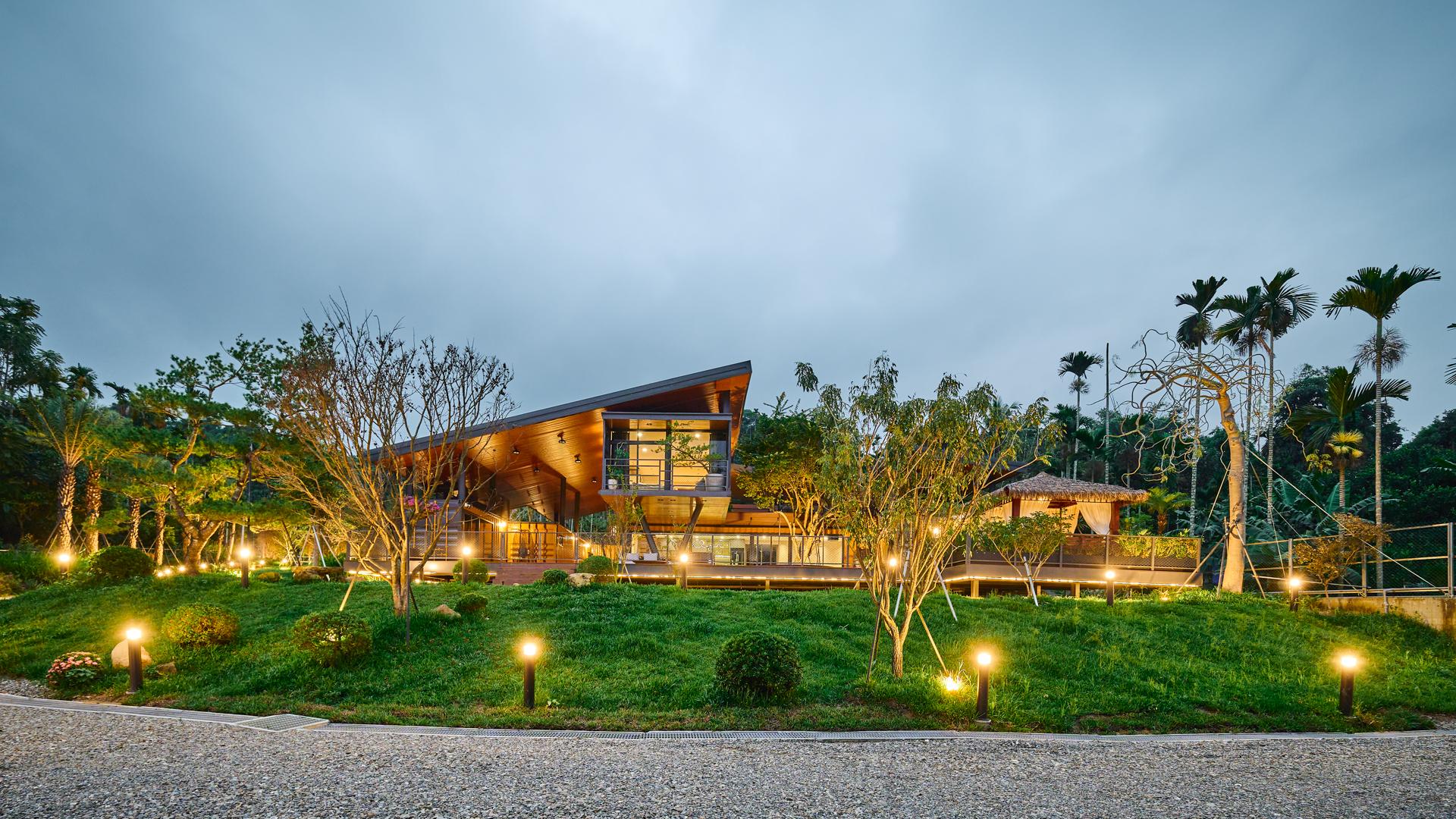 Set within the rural foothills of Yunlin, the project occupies a sloping site where the subtropical terrain invites moderation and the surrounding farmland frames a slower rhythm of life. The architecture responds to this stillness not with monumentality but with quiet integration into natural context, remaining light, layered, and in constant dialogue with its climate.