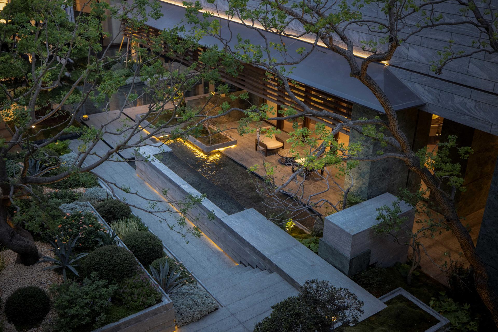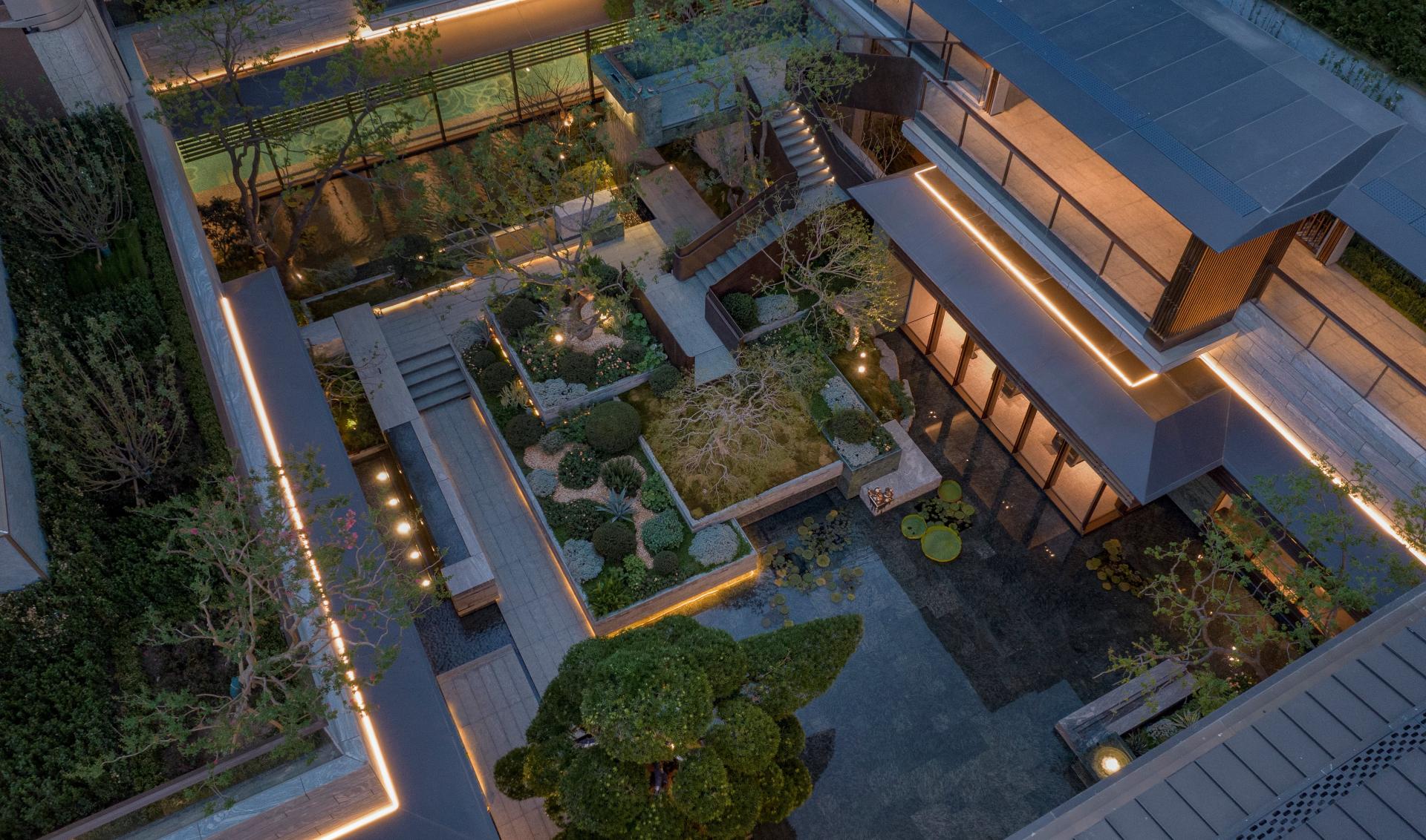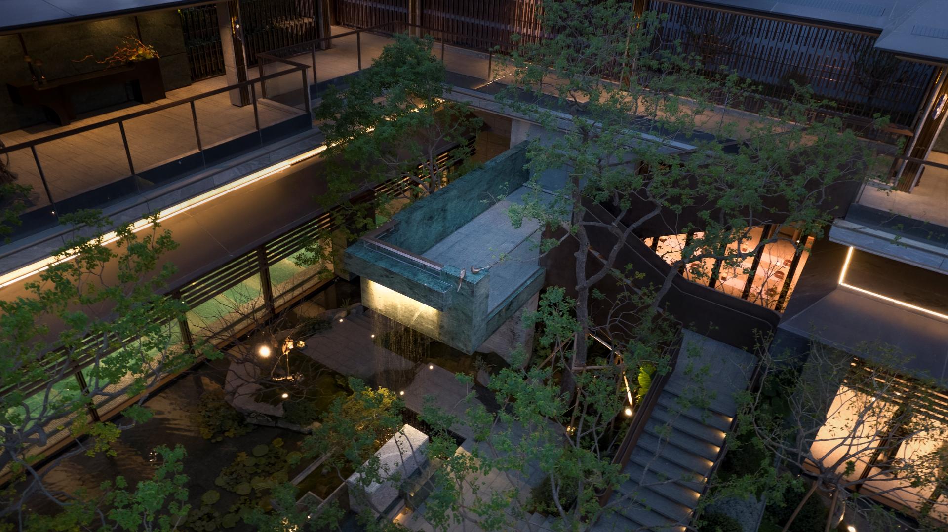 Externally, it embraces the shimmering waters of Jinji Lake as a canvas, seeking the natural "rhythm of the tides." Internally, it cultivates a tangible space that outlines a flowing sense of tranquil contemplation. The touch of masterful craftsmanship is evident in the poetic texture of materials, with legendary elements subtly embedded in every detail. Centered around a sunken courtyard, an innovative central energy loop is created, offering a multifunctional venue that seamlessly integrates indoor and outdoor spaces, balances dynamic and static activities, and caters to all age groups. The homecoming axis is designed with the concept of "Four Seasons of Tidal Realms, the Resonance Within the Heart," crafting a serene ambiance centered around the lake that evokes a sense of stability and peace.