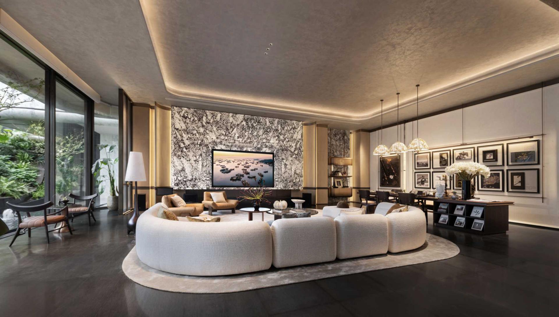 The 240 Show room draws inspiration from the tides, using their rhythmic movement to outline feminine grace. Bathed in natural light, it creates an elegant and luxurious sanctuary, constructing a cohesive, Italian-inspired minimalist residence amidst the shimmering lake waters.