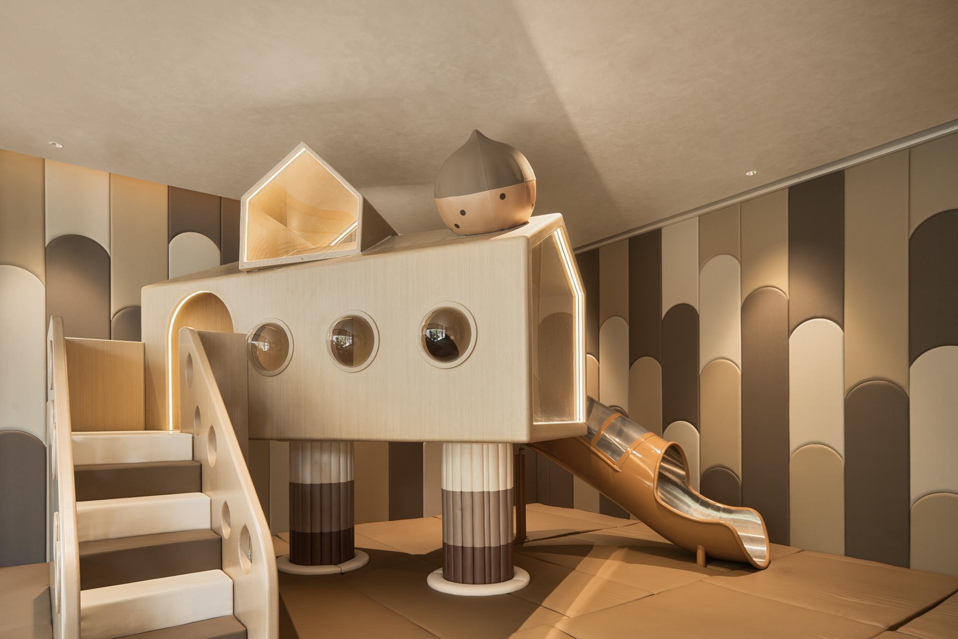 Functionally, the layout orbits around "CR LAND-style living" (a concept emphasizing gentle, nurturing living), balancing premium experience with practicality. Facilities like a self-indulgent gym, waterfront reading lounge, fireplace tea area, and children's corner extend scenarios for upscale socializing and diverse lifestyles. Functional zones achieve seamless connectivity via glass partitions, terracing, and half-walls, enabling smooth transitions with depth. The children's space eschews overwhelming bright hues, instead using color accents to align with the overall unity, blending playfulness with warmth. Guided by axial lines, the design connects public, transitional, and private spaces harmoniously—each area stands independently yet interacts organically. Ultimately, it forms a "spiritual vessel": an ideal sanctuary for both body and mind, where nature and daily life converge effortlessly.