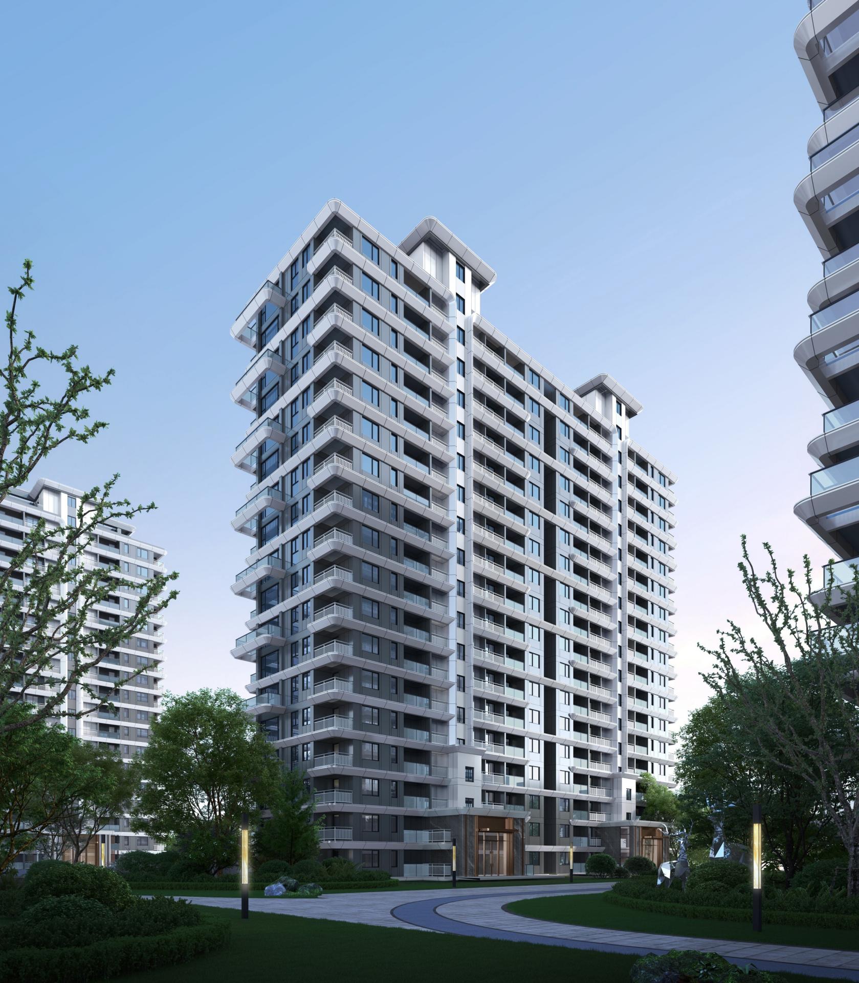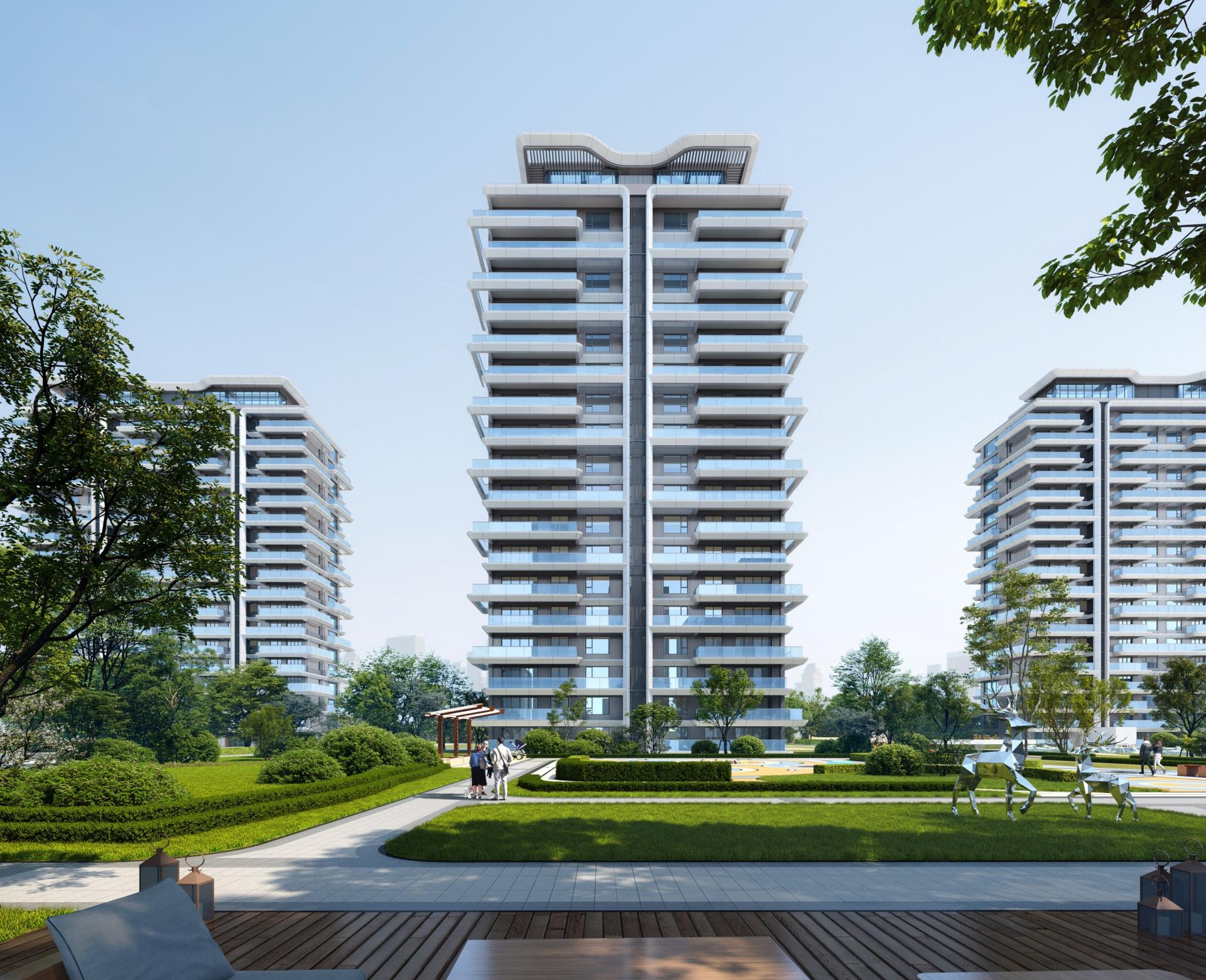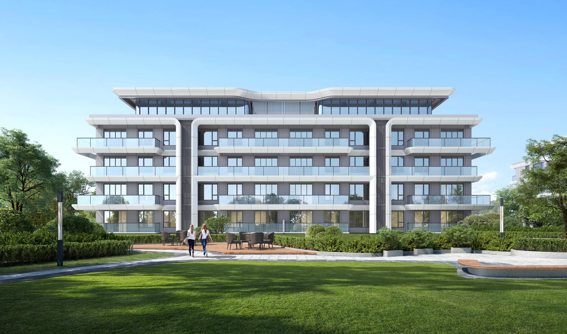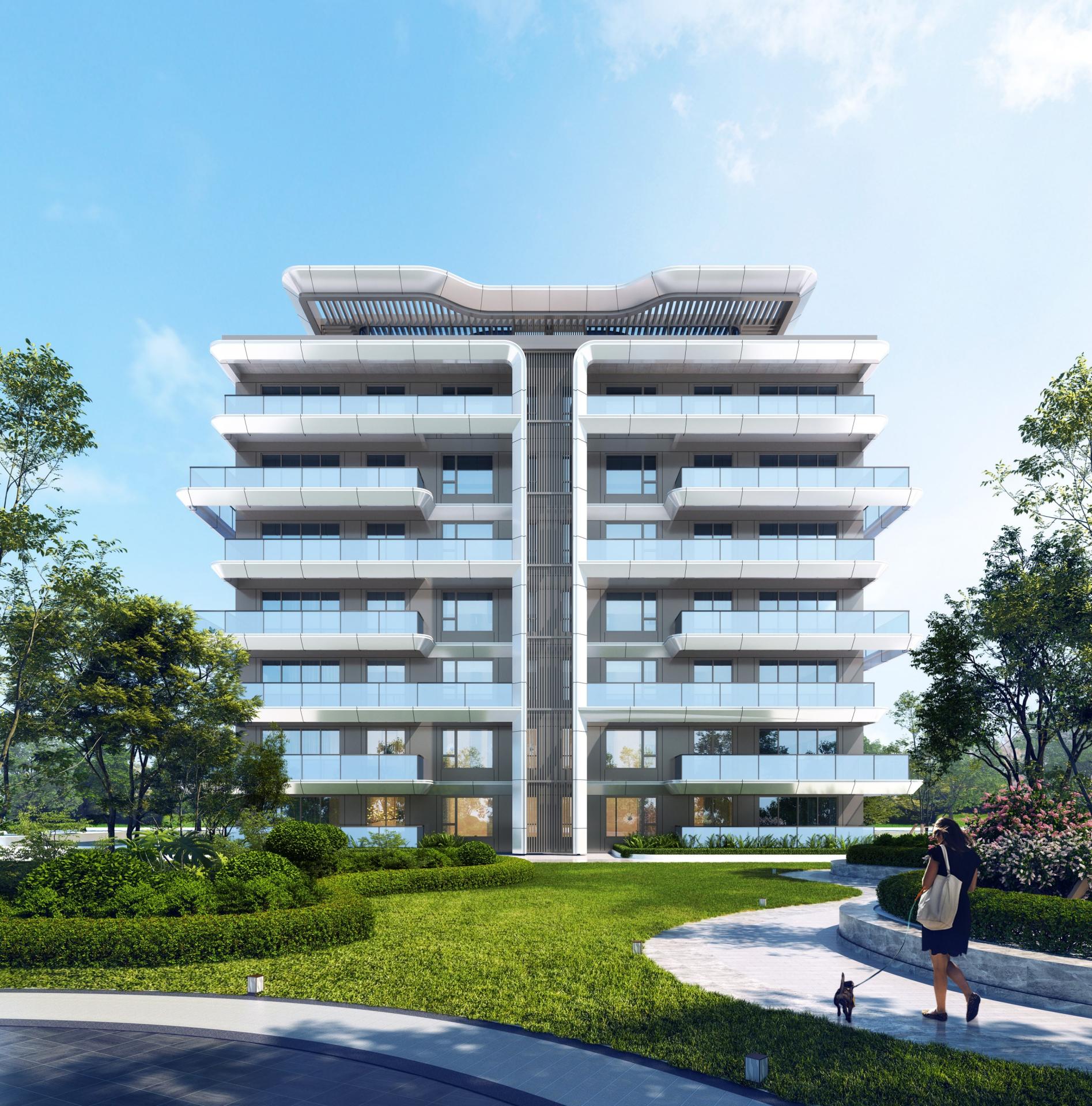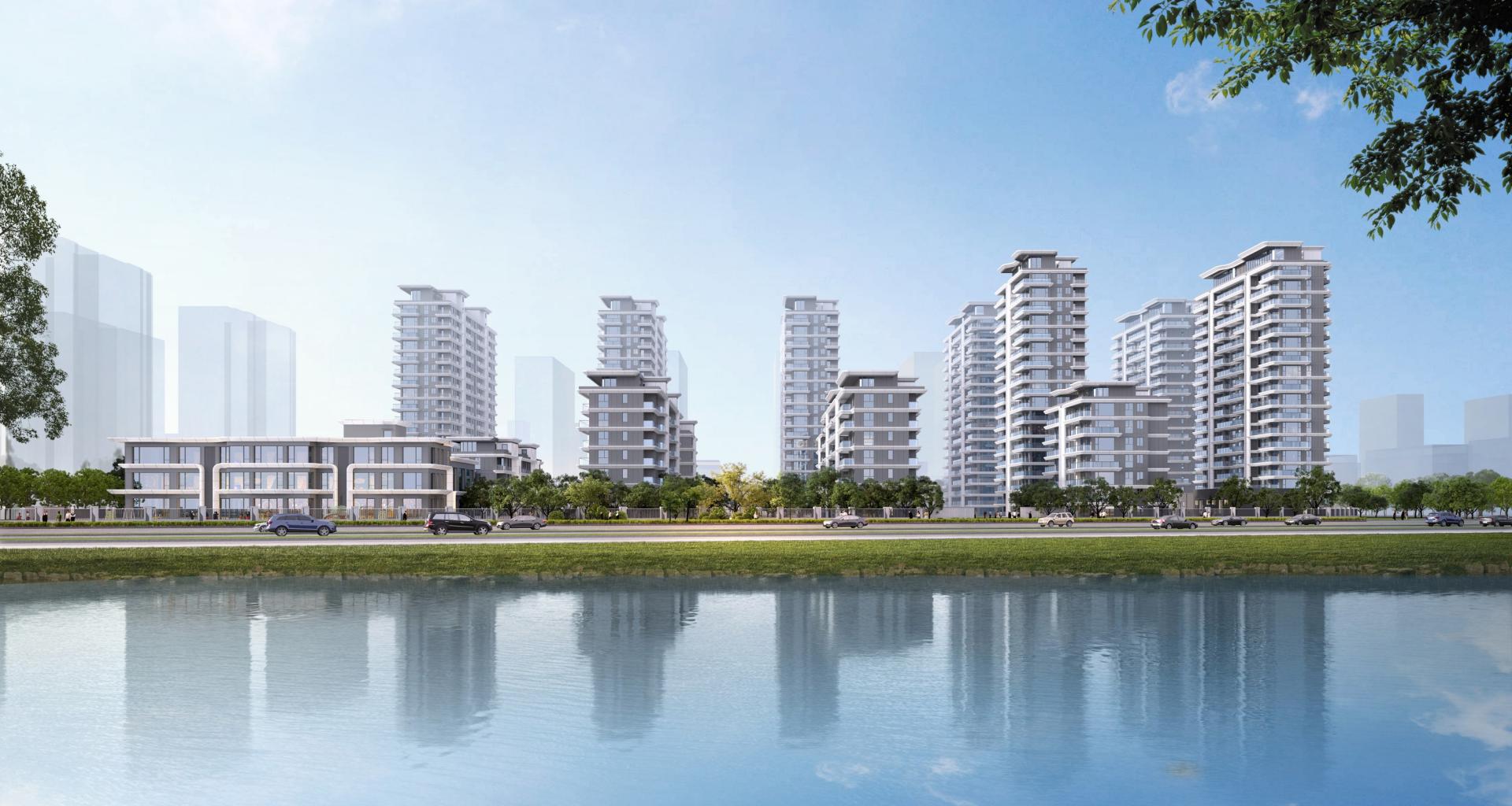 Considering the uniformity of waterscape view and microclimate, the planning makes full use of every land. Along the lake on the east side, multi-storey residential buildings of 6 to 7 floors with a height of no more than 24 meters are arranged; and along the west side, high-rise residential buildings of 18 floors are arranged. Its facade design draws inspiration from the natural form of "water", transforming the softness and agility of water elements into curving lines, which are reflected in the architectural form, presenting a modern waterfront style residence with dynamic and free curves and ever-changing rhythms. In addition, the project adopts a high window-to-wall ratio design and selects high-quality facade materials such as aluminum plates. While establishing a contemporary architectural aesthetic paradigm, it can also resist the erosion of time and remain sustainability.