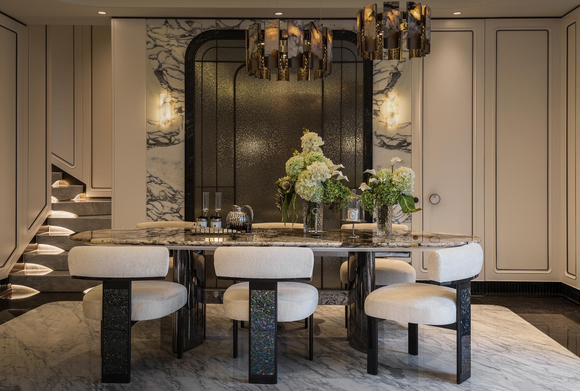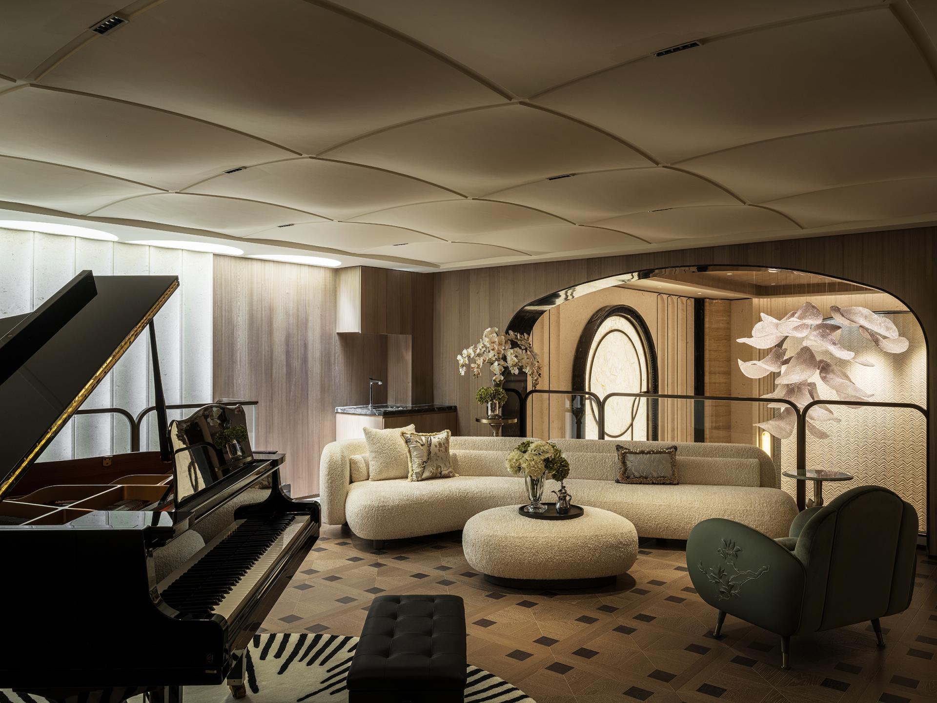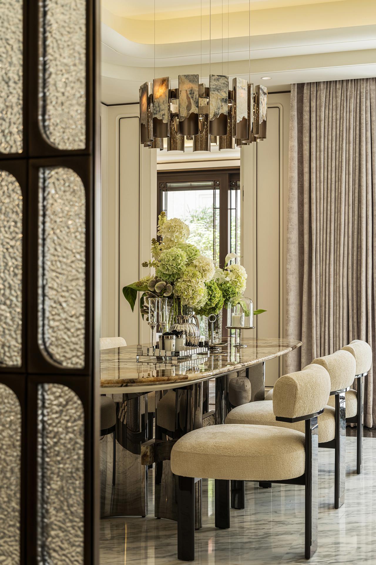 This project interprets the spirit of Shanghai through soft furnishings, with "Magnolias Blooming: A Garden of Poetry" as its central theme. It blends Oriental aesthetics and international lifestyle, using art, natural materials, and craftsmanship to create a cohesive yet distinctive home. The design draws inspiration from local culture, such as Wang Zhixin’s entrance painting of magnolias and reflective water, paired with natural stone and sculptural vases to evoke Oriental romance. Key features include a magnolia-inspired coffee table, leather-carved sofa, and thematic installations that flow seamlessly across all floors, uniting private and public areas. Public zones, including the entrance hall, living room, and dining room, emphasize social interaction and family rituals, while private areas—bedrooms, mezzanine art salon, and underground wine cellar—balance personal comfort, leisure, and functionality. Materials span Brazilian Pandora luxury stone, European gold-veined stone, burl wood, mother-of-pearl, smoky quartz, artisanal glass, and metal etching, enhancing texture, light reflection, and visual richness. Technologies, such as constant-temperature wine storage, 360-degree omnidirectional sound in the mezzanine, and high-end appliances, integrate daily functionality with refined living standards. Every space harmonizes aesthetics and practicality: the combined Chinese-Western kitchen, mini bar, open cloakroom, and water bar support both daily life and entertaining. Atmospheric details—from custom chandeliers, luxury stone surfaces, and handcrafted chairs to crystal inlays and brass accents—convey elegance and warmth. Outdoor and service areas, including courtyard seating and organized storage, ensure comfort and convenience throughout the home. Overall, the design achieves a poetic narrative where artistic innovation, material sophistication, spatial functionality, and cultural symbolism converge, creating a home that is both visually compelling and practically enriching, fully reflecting the owner’s lifestyle and appreciation for art.