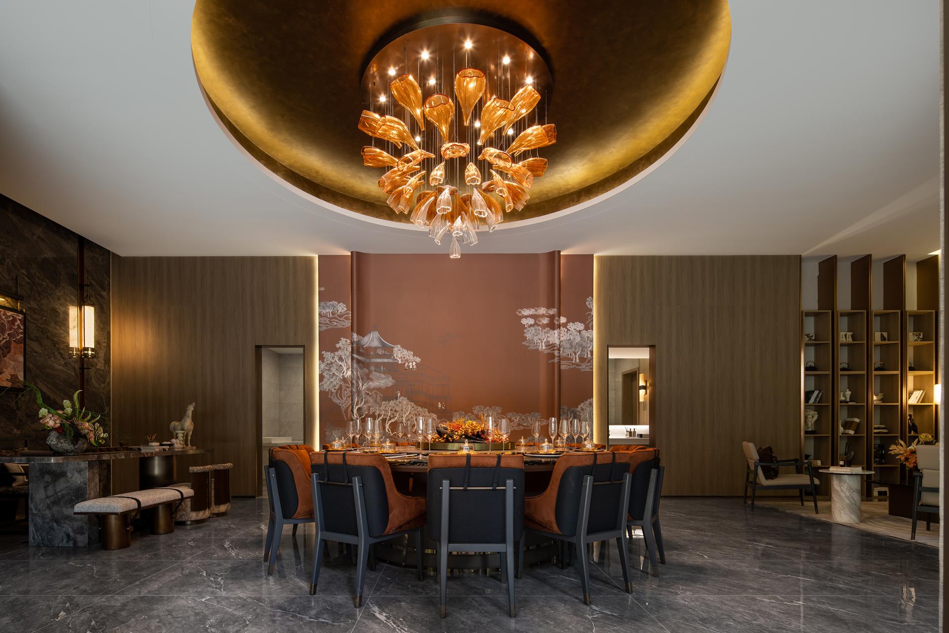 The concept blends Eastern aesthetics with modern light luxury, presenting a spatial temperament of “Oriental brushwork and metropolitan rhythm.” Emphasizing the five-sense experience—vision, sound, scent, touch, and taste—the space embodies the philosophy of harmony between man and nature.