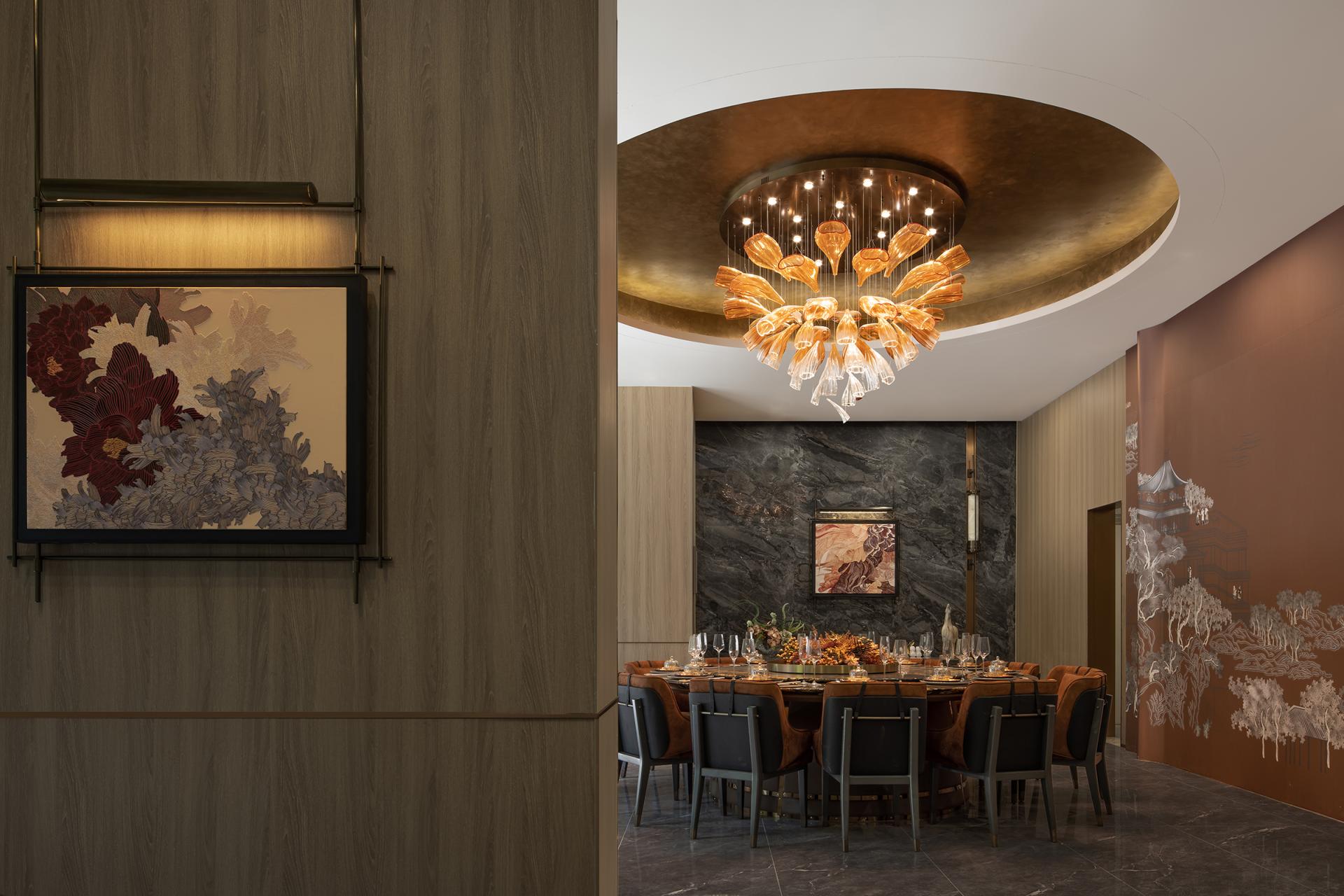 Three main design highlights define the project: Thematic Scene Creation – immersive zones such as “Peony Awakening in Spring” and “Private Banquet in Qingchuan.” Modern Interpretation of Tradition – reinterpreting symbols like peonies and ink-wash imagery through contemporary materials such as stainless steel and acrylic. Artistic Customization – bespoke elements like the “Peony Cloud Lamp” and “Wave Wall Painting.”